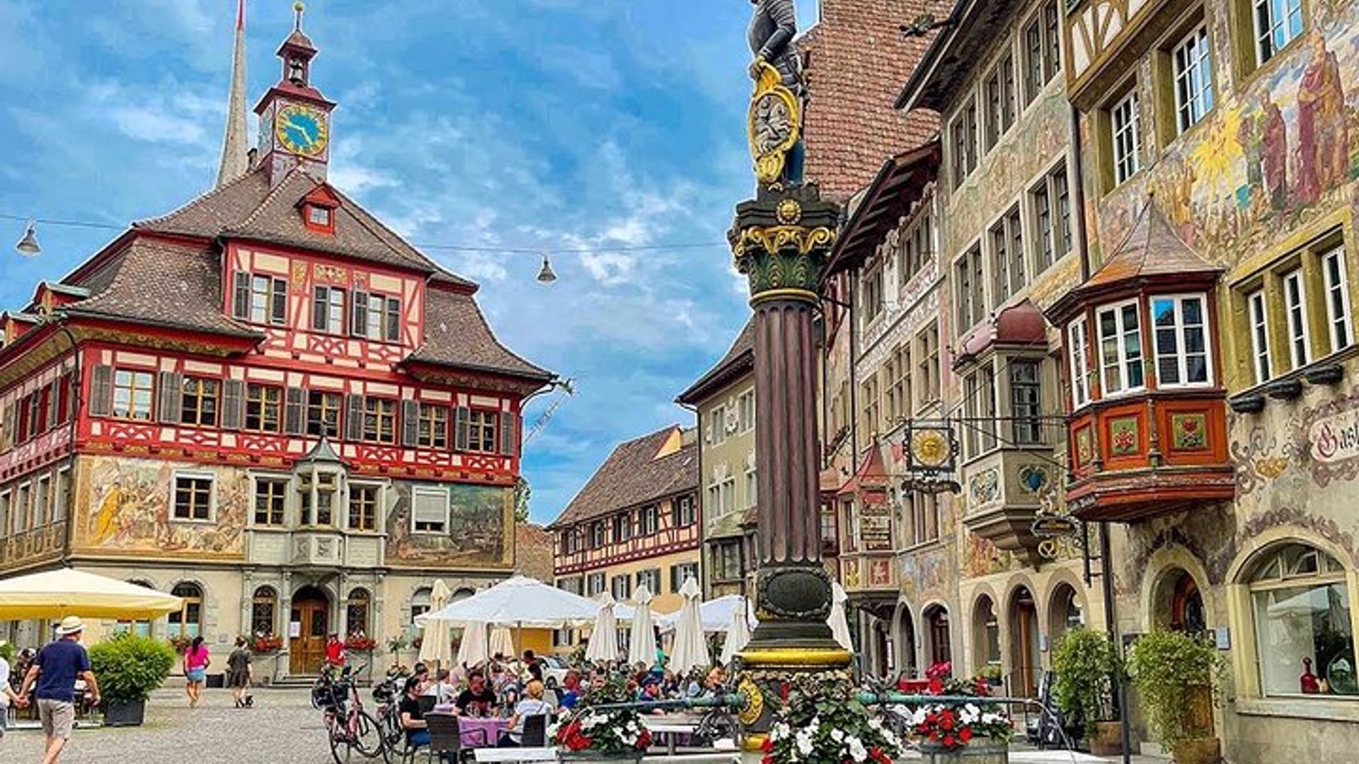 Hell und früh von Basel aus fahren Sie nach Stein am Rhein, einer wunderschön erhaltenen mittelalterlichen Stadt, die für ihre atemberaubenden Freskenbauten und charmanten Fachwerkhäuser berühmt ist.