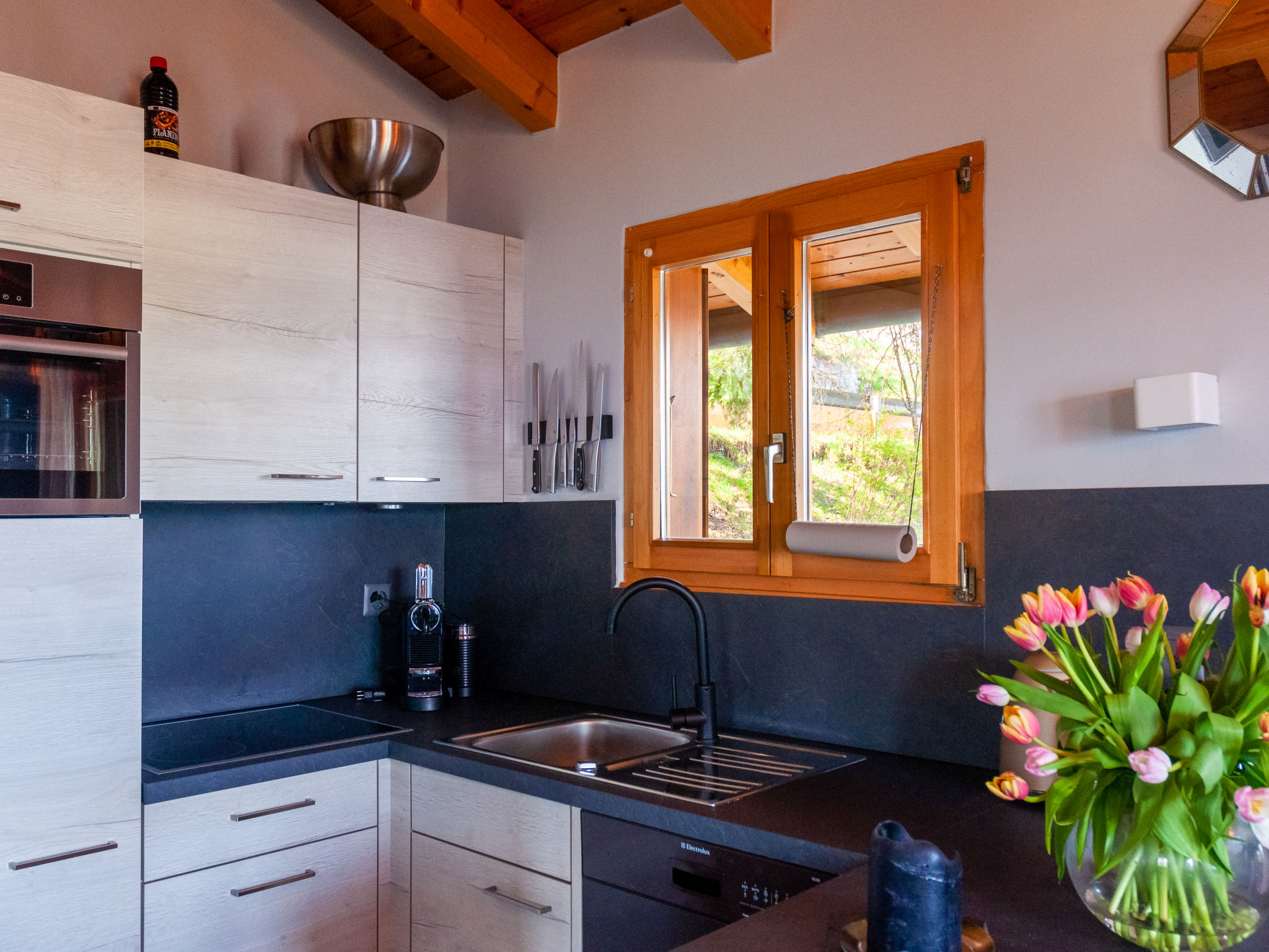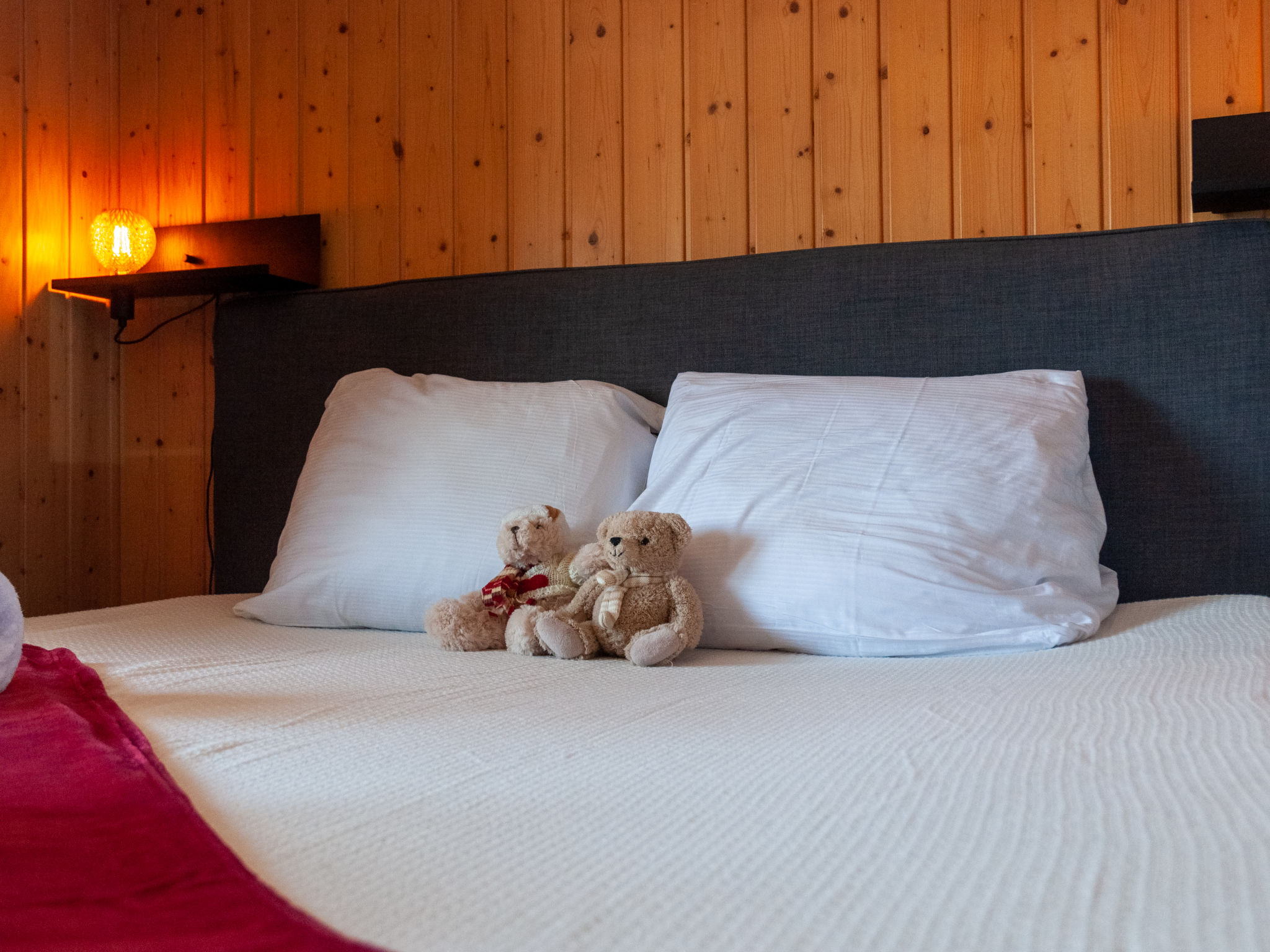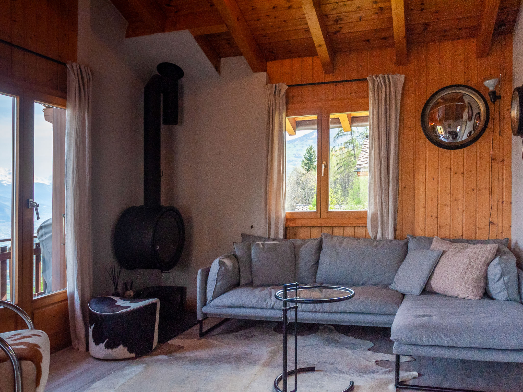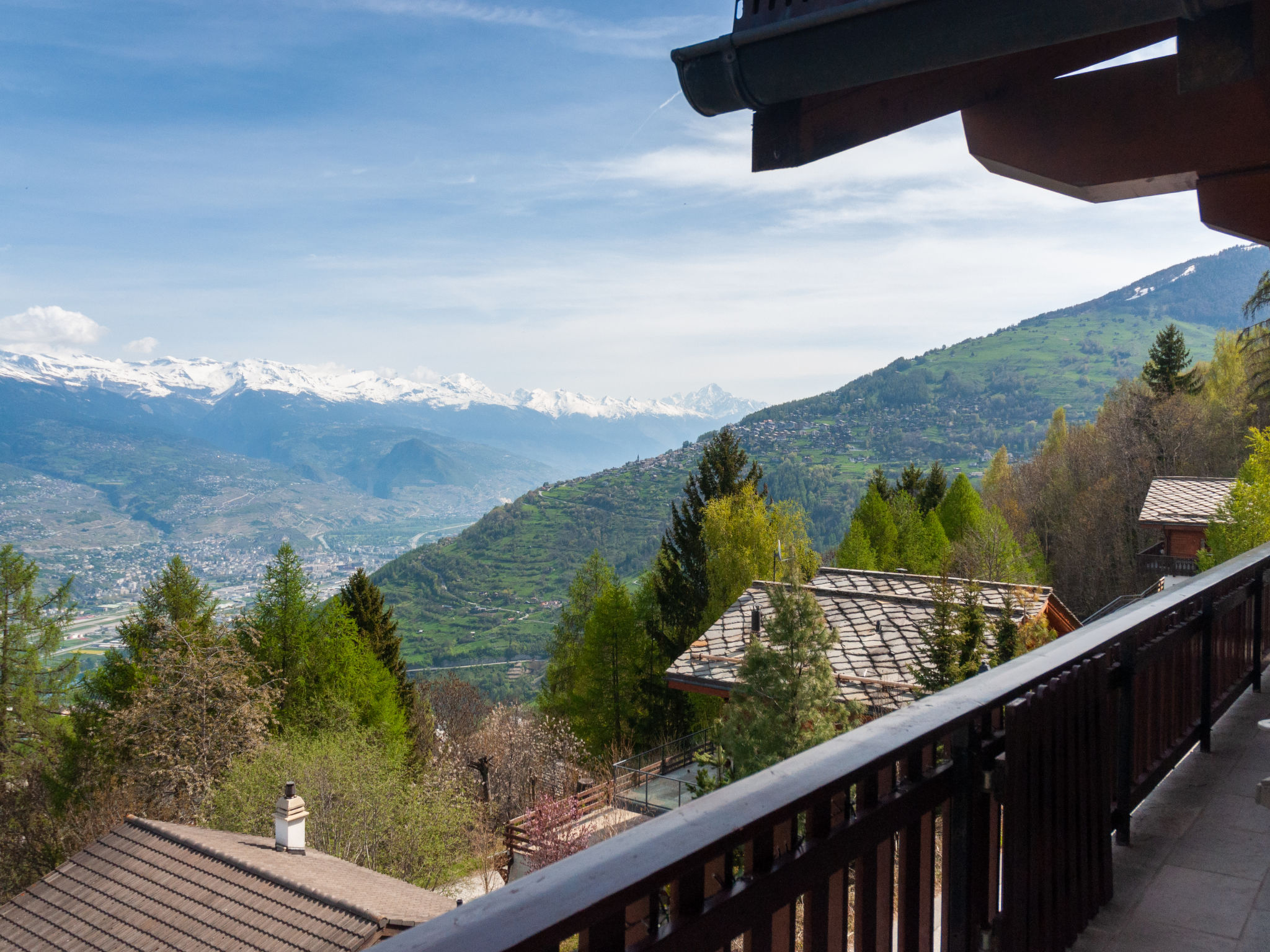 "Dolce Cabane", 4-Zimmer-Chalet 80 m2, Nordwestlage. Sehr komfortabel und romantisch eingerichtet: kleiner Eingang. Wohn-/Esszimmer mit Schwedenofen und Kabel-TV. Ausgang zur Terrasse, Richtung Osten. Offene Küche (Backofen, Geschirrspüler, 4 Glaskeramikplatten, Toaster, Wasserkocher, elektrische Kaffeemaschine, Kapseln für die Kaffeemaschine (nespresso) extra, Fondue Set (Käse)). Dusche/WC. E-Heizung. Unteres Geschoss: 1 Zimmer mit 1 franz. Bett (160 cm, Länge 200 cm). 1 Zimmer mit 1 franz. Bett (140 cm, Länge 200 cm). 1 Zimmer mit 1 franz. Bett (160 cm, Länge 200 cm). Dusche/WC, Sauna. Balkon, Westlage, Terrasse, Nordlage. Terrassenmöbel, Gartengrill, Liegestühle (2). Sehr schöne Sicht auf die Berge und das Tal. Zur Verfügung: Waschmaschine, Wäschetrockner, Haartrockner. Internet (Wireless LAN, gratis). Parkplatz (3 Autos). E-Ladestation. Bitte beachten: Nichtraucher-Unterkunft. 1 kleines Haustier/Hund erlaubt.