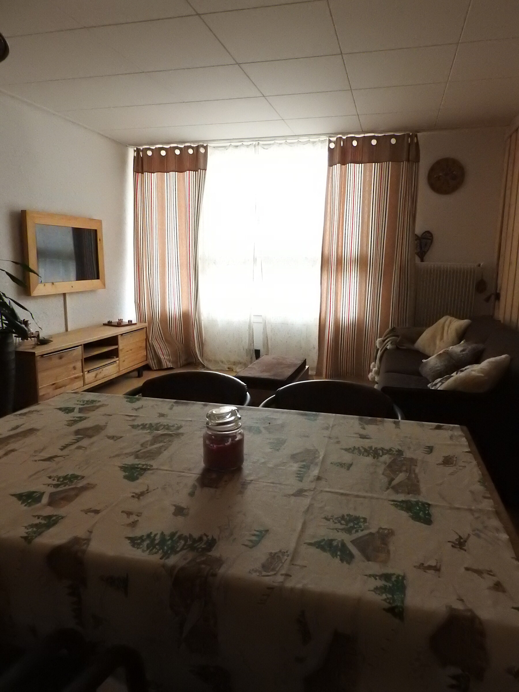 - Séjour avec TV - Wifi - Coin cuisine - Pas de balcon, pas de terrasse - Disposition des lits (1 chambre - bain wc) : - 1 chambre à 1 lit armoire pour 2 personnes = 2 - Séjour avec 1 canapé-lit pour 2 personnes = 2