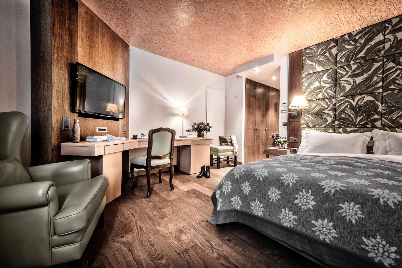 Das Tschuggen Grand Hotel in Arosa entführt seine Gäste auf 1800 Metern Höhe in eine neue Dimension von Entspannung, Genuss und Ästhetik. Die 128 Zimmer und Suiten des Hauses begeistern durch eine luxuriöse und farbenfroh-lebendige Einrichtung sowie den einmaligen Blick auf die entweder weiss verschneiten oder satt grünen Aroser Berge. Die 5000 m2 grosse Tschuggen Bergoase bietet Spa-Vergnügen auf höchstem Niveau aus der Feder von Stararchitekt Mario Botta. Daneben verfügt das Fünfsternehaus als einziges Hotel der Schweiz über eine eigene Bergbahn, den Tschuggen Express, der die Gäste des Fünfsternehauses ganzjährig binnen weniger Minuten direkt ins weitläufige Wintersport- und Wandergebiet bringt. Eine neue Art des Wohnens auf 1'800 Metern über Meer bieten die neu errichteten Mountain Lofts – inklusive absolute Privatsphäre, einen eigenen Sauna- und Wellnessbereich, sowie Zugang zu den Annehmlichkeiten und Dienstleistungen des Hotels.