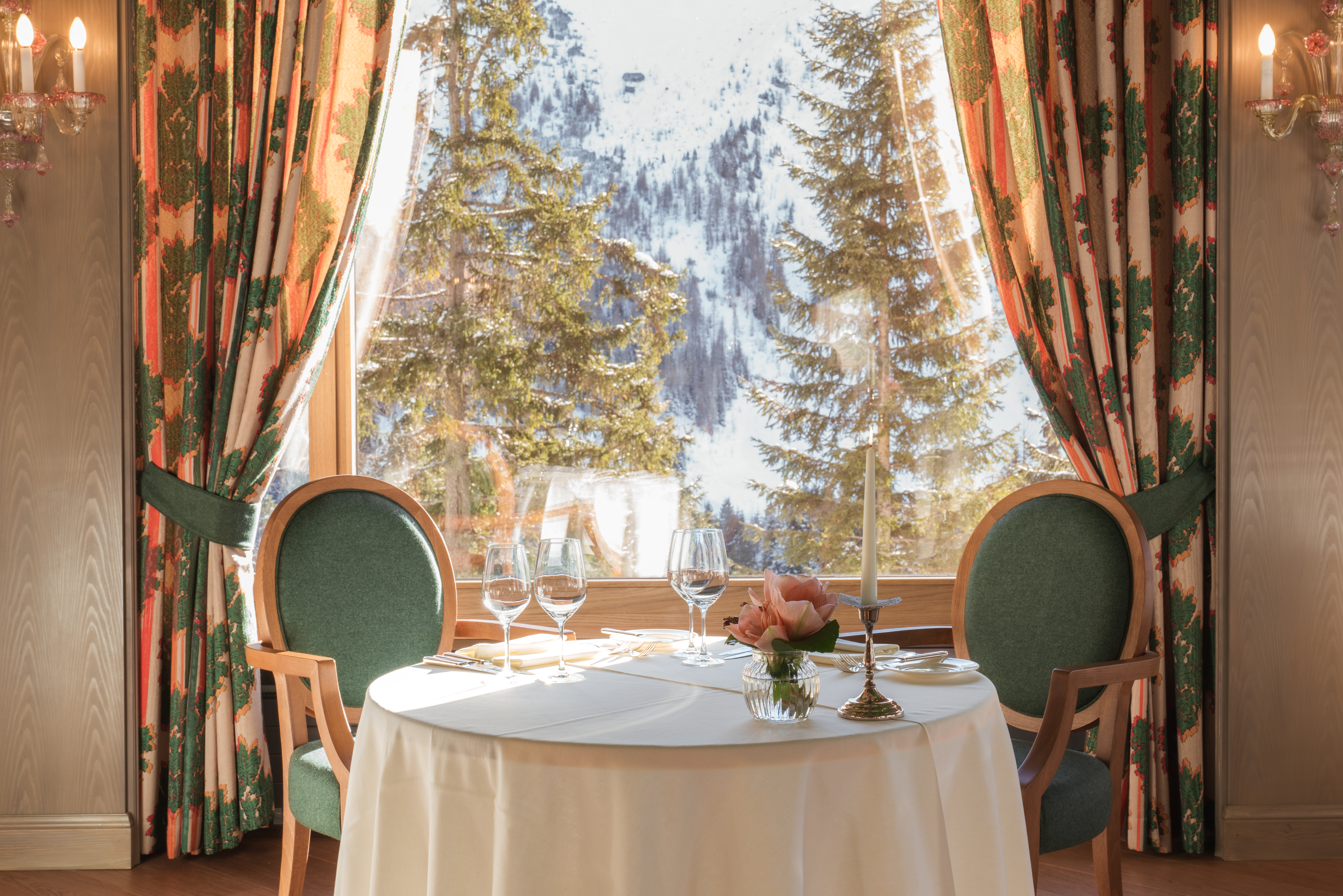 Lage und Klima: Das Tschuggen Grand Hotel liegt auf 1800 m.ü.M. in den Bündner Bergen in Arosa. Der bekannte Sommer- und Winterferienort gilt mit durchschnittlich acht bis zwölf Sonnenstunden am Tag und aufgrund der Höhe als besonders schnee- und sonnensicher.