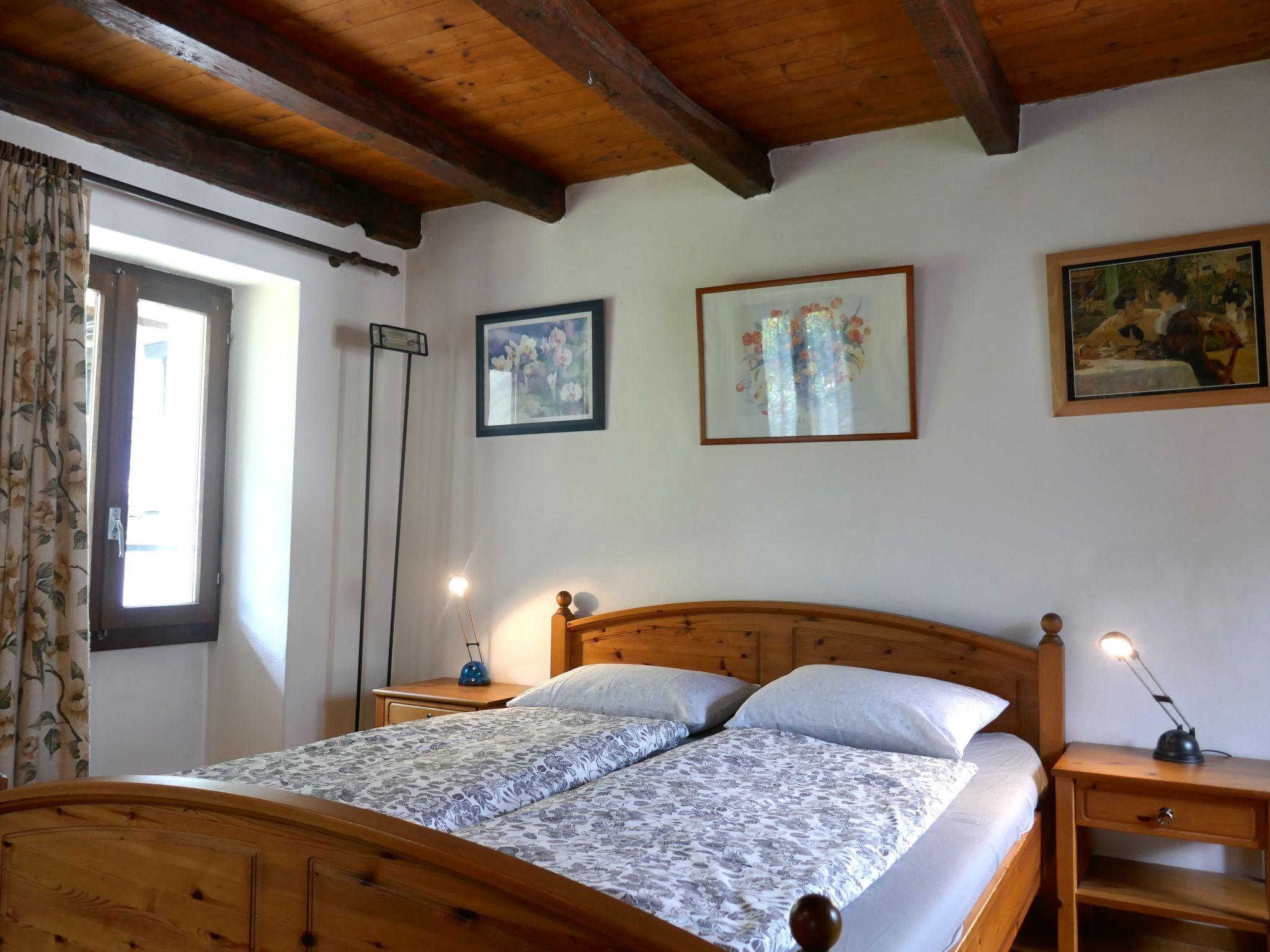 "Margarita", 3-Zimmer-Haus 90 m2 auf 3 Stockwerken. Komfortabel und gemütlich eingerichtet: Wohnzimmer mit Kabel-TV (Flachbildschirm). Küche (Backofen, 4 Glaskeramikplatten, Toaster, Wasserkocher, elektrische Kaffeemaschine, Kapseln für die Kaffeemaschine (Nespresso) extra, Racletteofen, Fondue Set (Käse)) mit offenem Kamin (nur Deko), Esstisch und Radio. Bad/WC. Warmluftheizung. Obergeschoss: 1 Doppelzimmer mit 1 Doppelbett (1 x 160 cm, Länge 200 cm). 1 Doppelzimmer mit 1 franz. Bett (1 x 140 cm, Länge 200 cm). Ausgang zum Balkon. Sep. WC. Elektrogrill (mobil), Sitzplatz. Schöne Sicht auf die Berge und die Landschaft. Zur Verfügung: Waschmaschine, Kinderhochstuhl, Babybett bis 2 Jahre (extra), Haartrockner. Internet (WLAN, gratis). Bitte beachten: geeignet für Familien. Nichtraucher-Haus. Die Eingangstür vom Garten wird mit den Nachbarn geteilt. NL-00003094