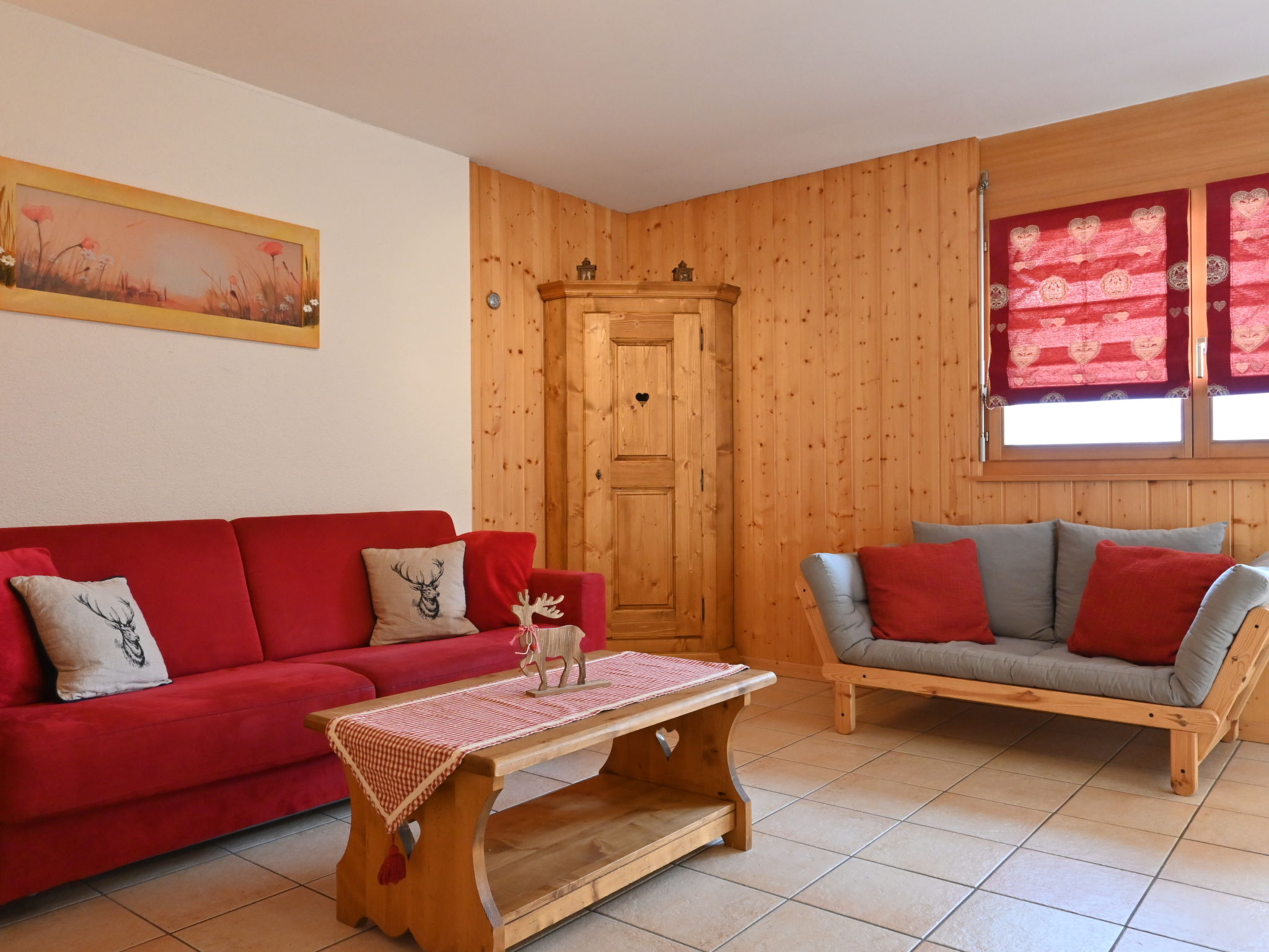 "Plein Sud 3", 2-Zimmer-Wohnung 43 m2, im Erdgeschoss, Südostlage. Komfortabel und geschmackvoll eingerichtet: Wohn-/Esszimmer mit 1 Diwanbett, TV und Flachbildschirm. Ausgang zur Terrasse, Richtung Süden und Richtung Osten. 1 Zimmer mit 1 Doppelbett (2 x 80 cm, Länge 200 cm). Ausgang zur Terrasse, Richtung Süden und Richtung Osten. Offene Küche (4 Kochplatten, Backofen, Geschirrspüler, Toaster, Wasserkocher, elektrische Kaffeemaschine, Kapseln für die Kaffeemaschine (Nespresso) extra, Racletteofen, Fondue Set (Chinoise, Käse)). Dusche/WC. Fussbodenheizung. Grosse Terrasse, Rasen. Terrassenmöbel, Gartengrill. Schöne Sicht auf die Berge. Zur Verfügung: Internet (WLAN). Parkplatz (1 Auto). Bitte beachten: Nichtraucher-Unterkunft.