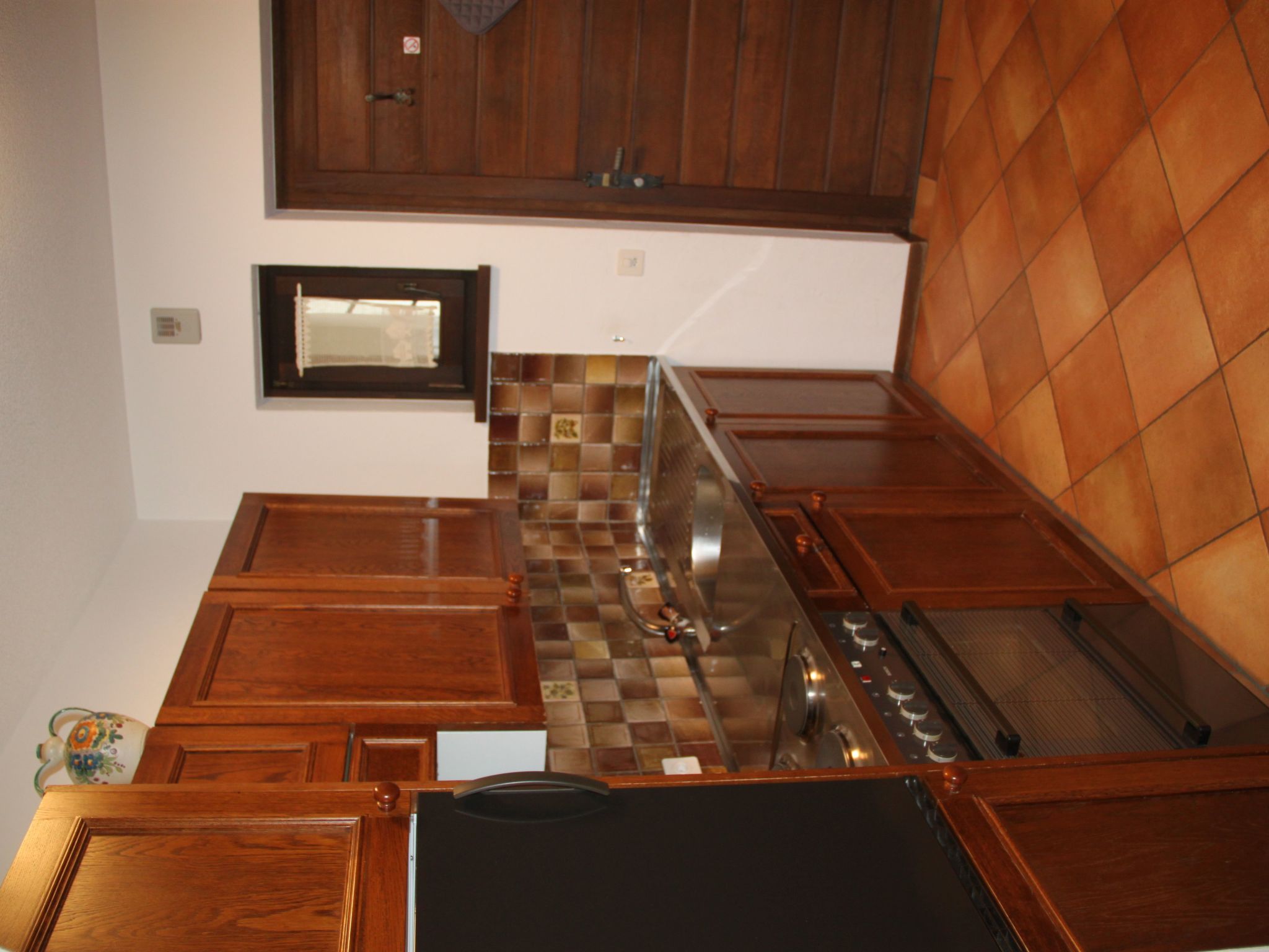 Die im traditionellen Tessiner Stil eingerichtete Wohnung mit Steinplattenboden und Kastanien Massivholz Mobiliar, ist in warmen Beige- und Erdfarbtönen gehalten.