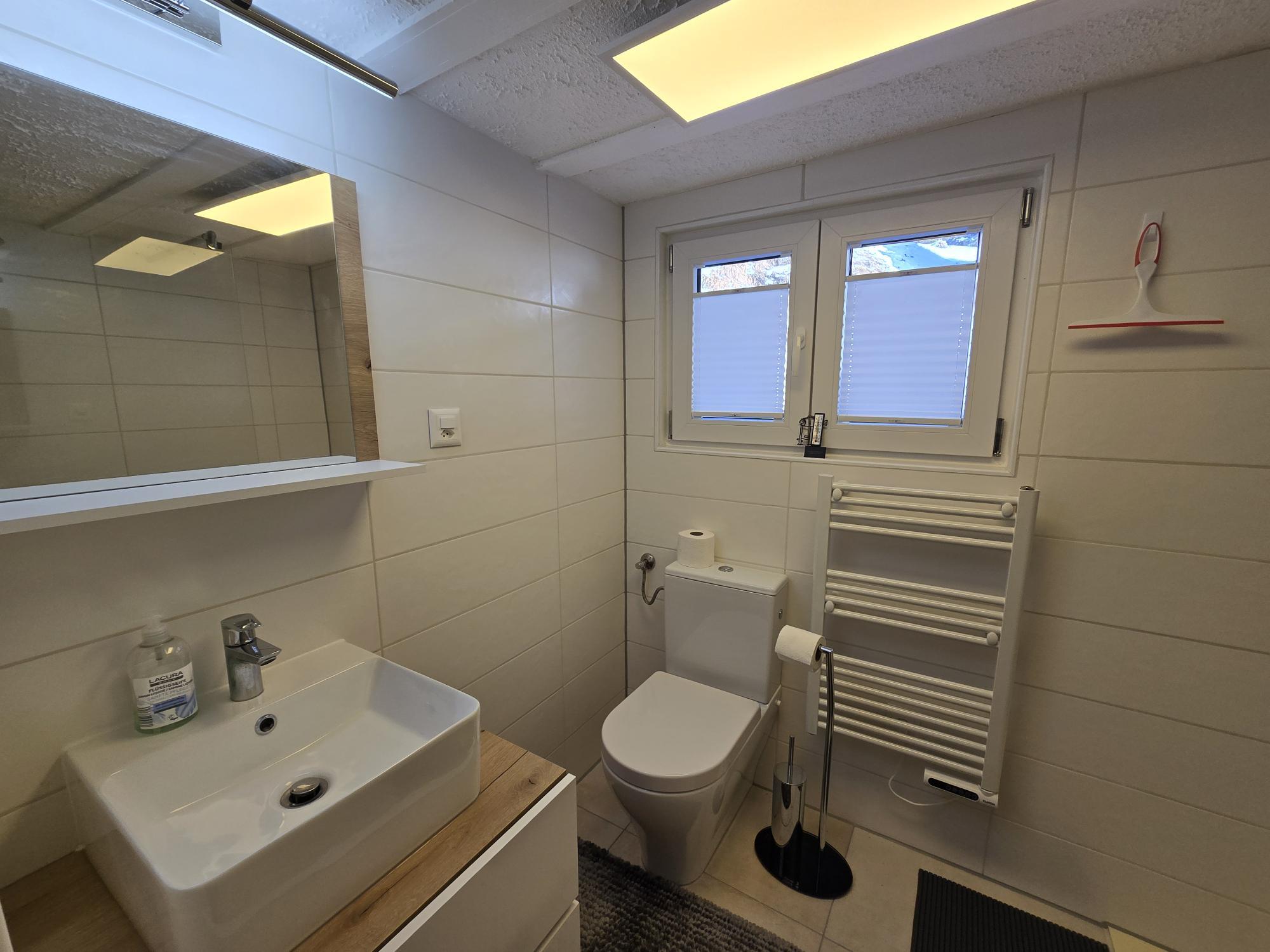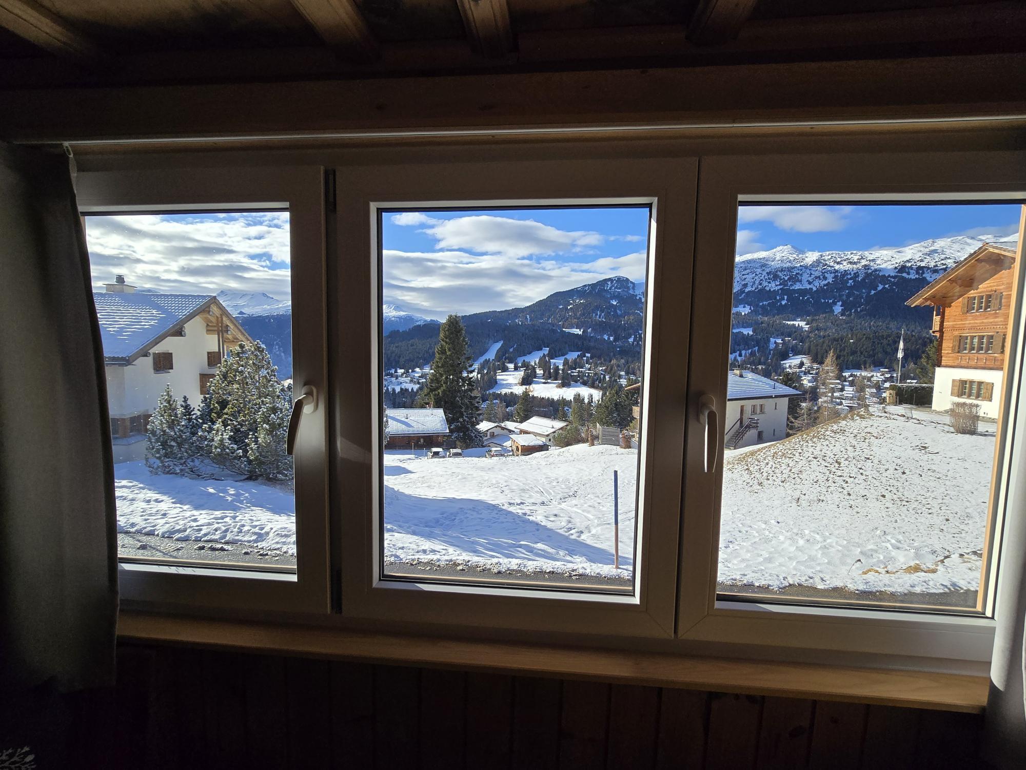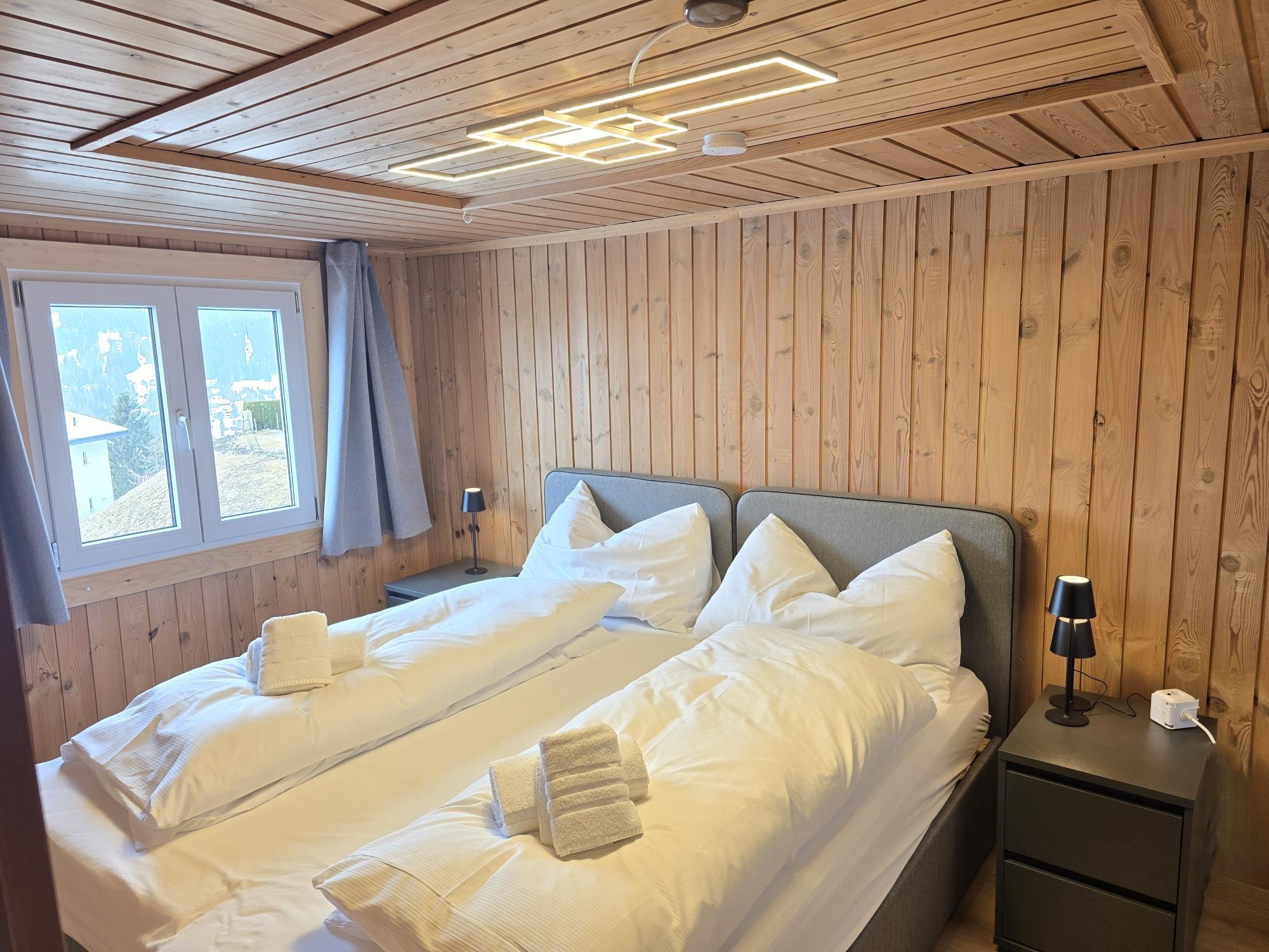 Dank der unverbaubaren Lage geniessen Sie eine beeindruckende Panoramasicht über das gesamte Tal sowie auf die umliegende Berglandschaft. Die sonnige Ausrichtung sorgt den ganzen Tag über für eine helle, freundliche Atmosphäre und ein hohes Mass an Wohnkomfort. Die Umgebung ist geprägt von der Natur, was absolute Ruhe und Privatsphäre garantiert. Gleichzeitig ist die Wohnung ein idealer Ausgangspunkt für zahlreiche Outdoor-Aktivitäten: Im Sommer starten Velo- und Wanderwege direkt vor der Haustüre. Im Winter ist bei guten Schneeverhältnissen Ski-out möglich, was diese Unterkunft besonders attraktiv macht.