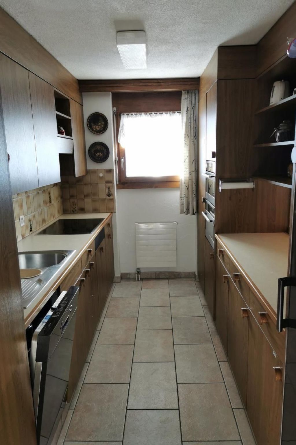 neuer Geschirrspüler und Kühlschrank, Steamer und Backofen mit Mikrowelle, Cerankochfeld, Geschirr, Raclette-Grill und Fondueset sind neuwertig.