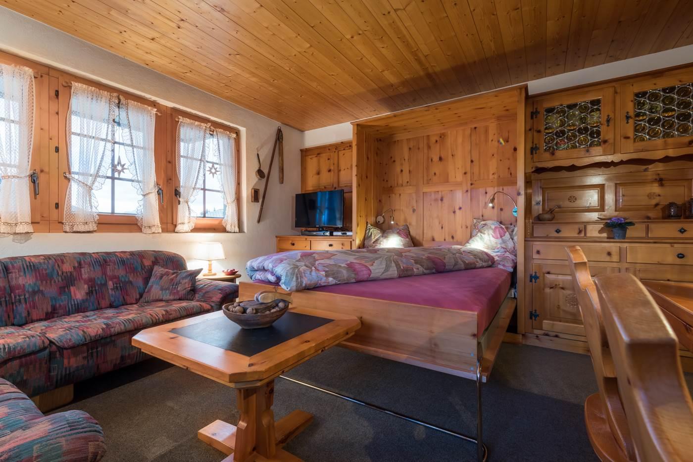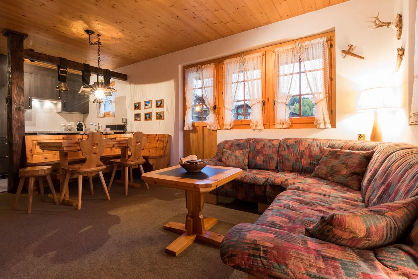 Ski in/Ski out möglich. Mehrfamilienhaus mit Aufzug, Skikeller sowie Waschmaschine und Trockner stehen im Erdgeschoss zur Verfügung. Eine Liegewiese vor dem Haus gehört auch dazu. Gratis W-LAN vorhanden.