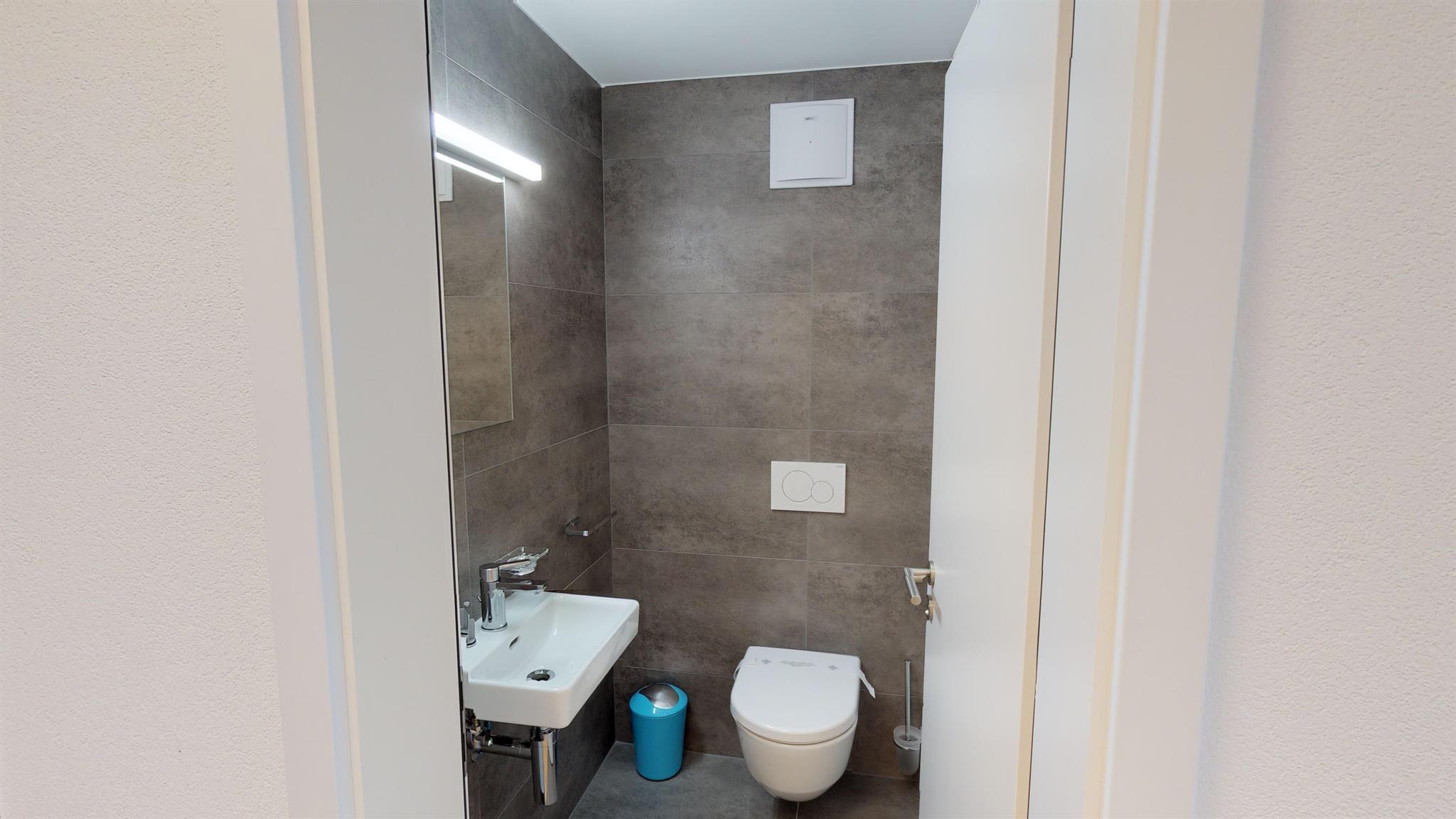Das Haus A ist nicht direkt mit der Einstellhalle verbunden, Zugang über Haus B.
