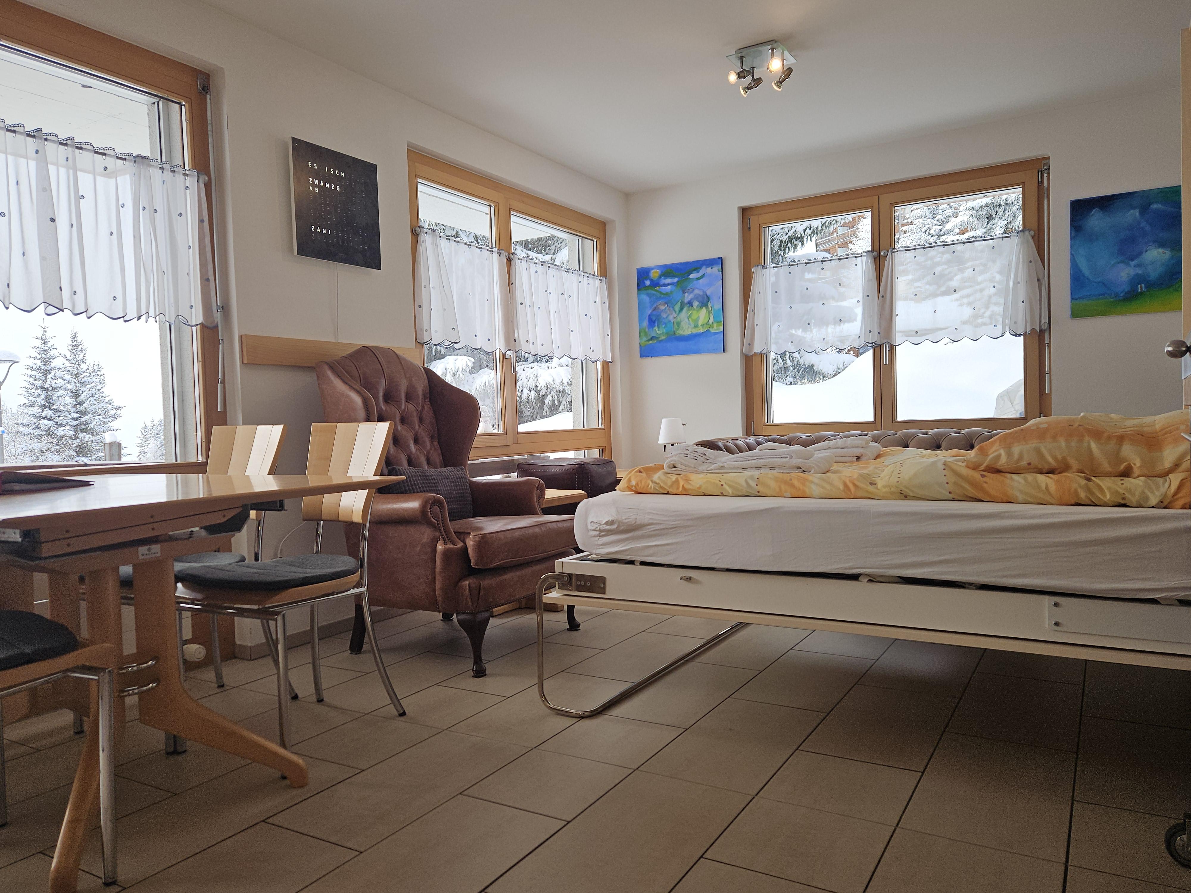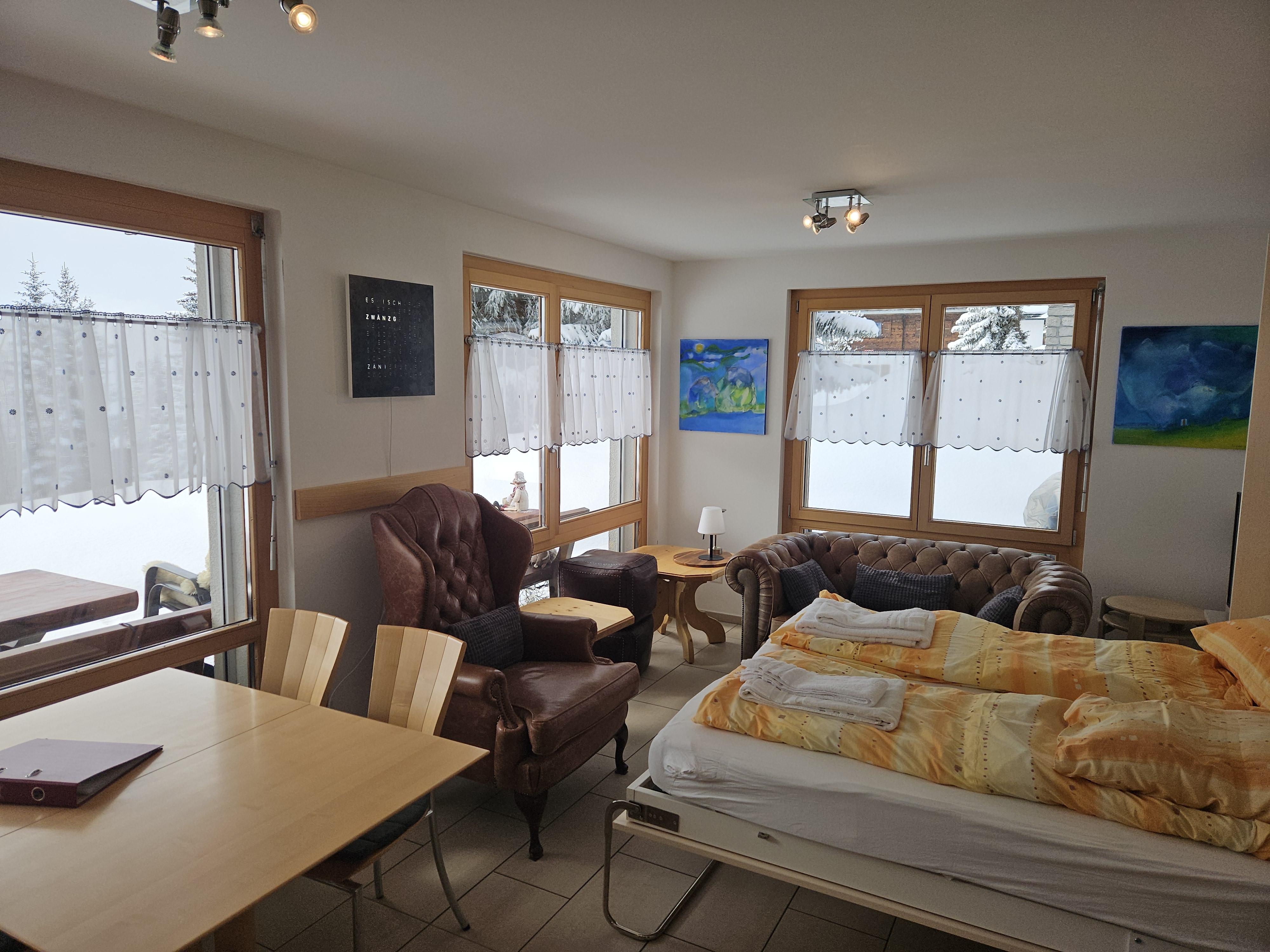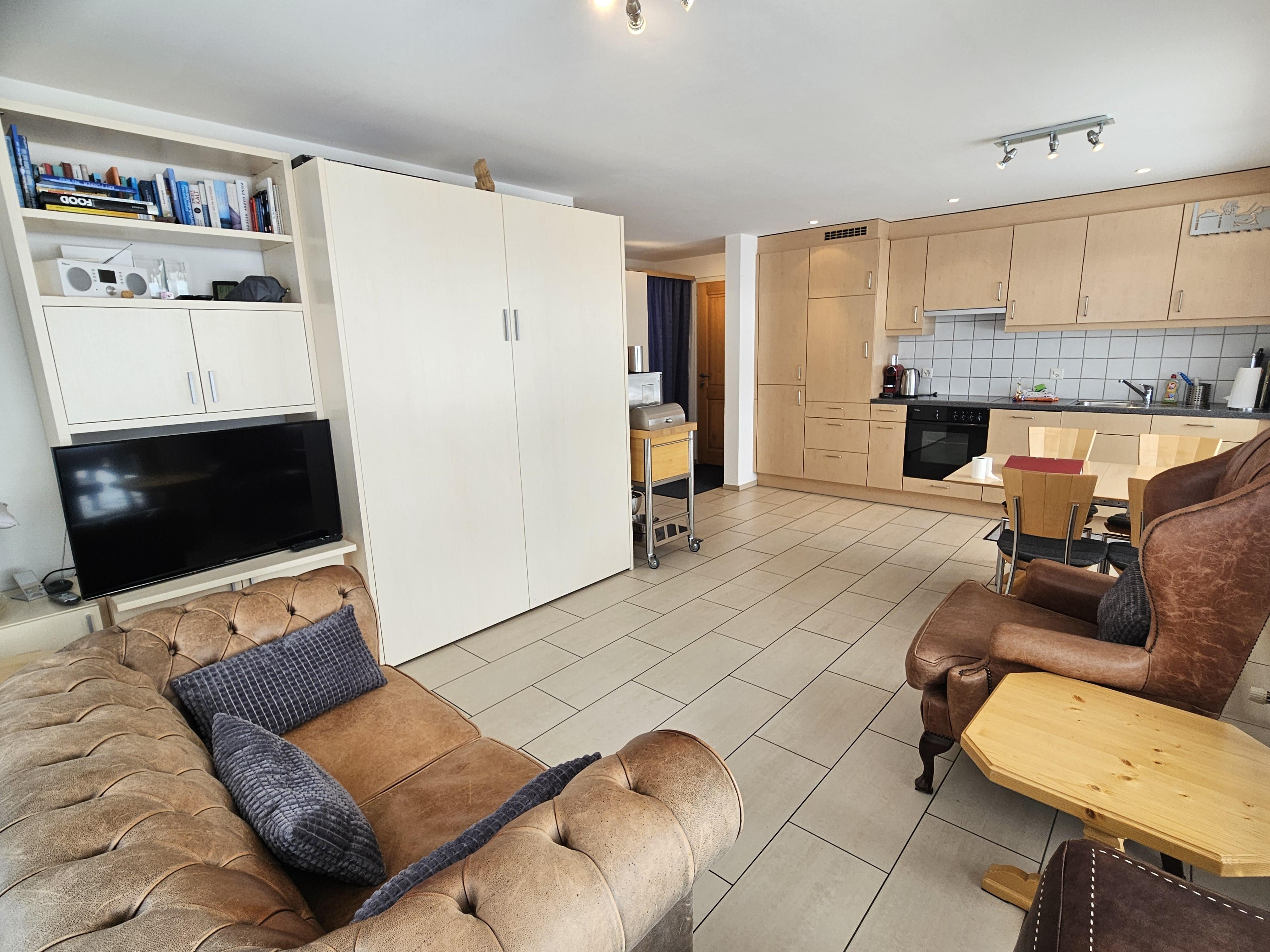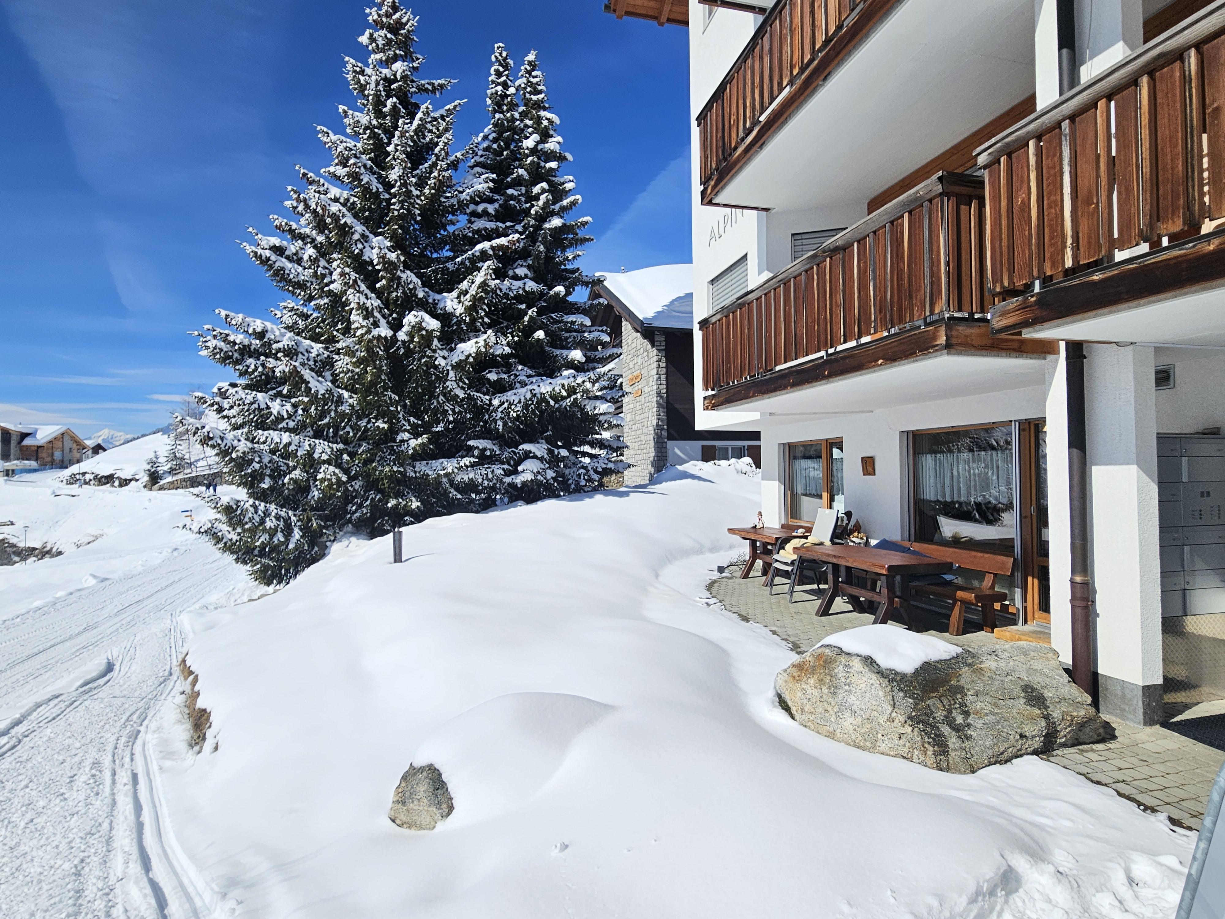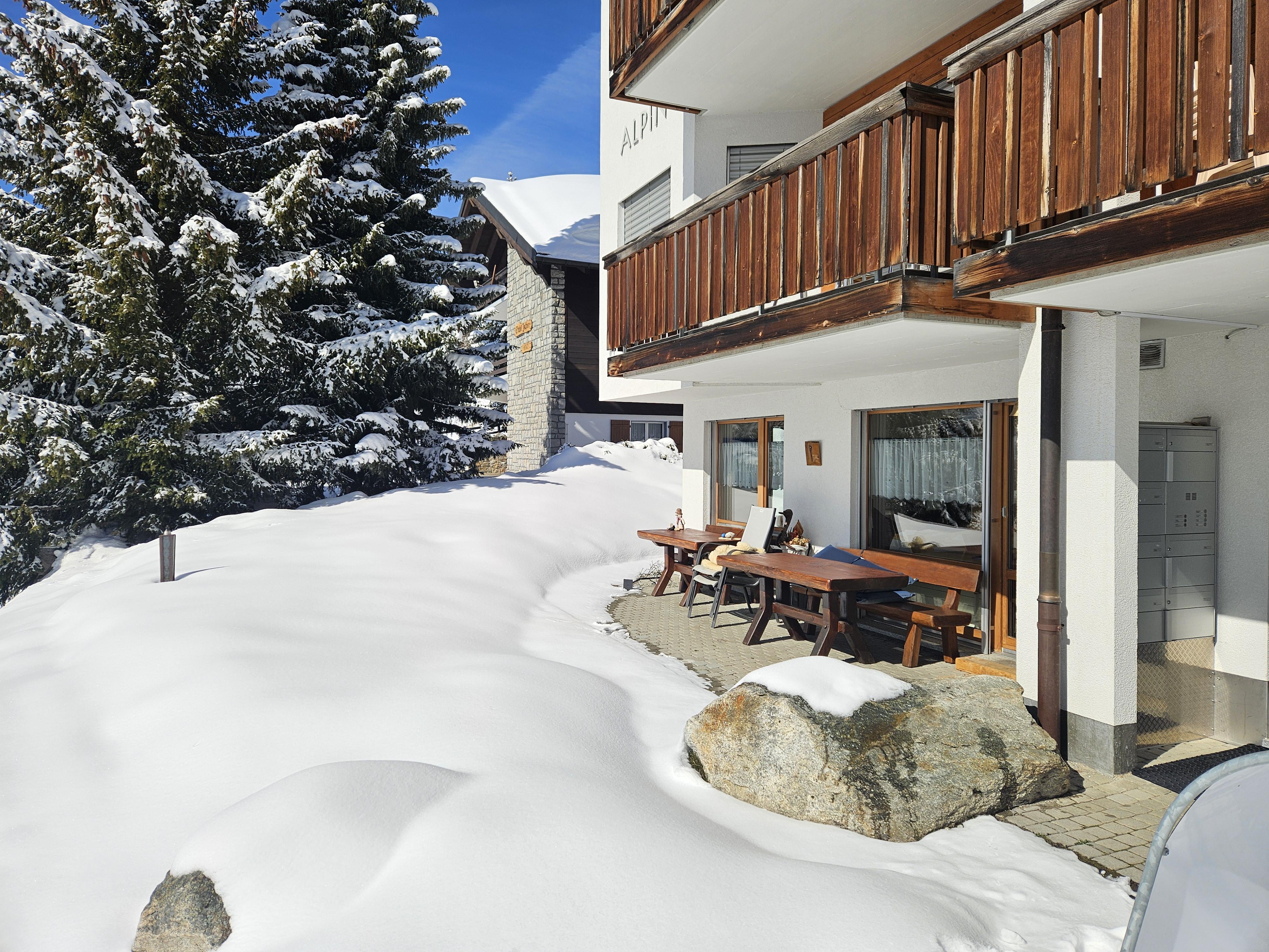 Das Haus Alpin befindet sich im Herzen der Riederalp und überzeugt durch seine moderne Ausstattung sowie die ideale Lage direkt an der Skipiste. Nur wenige Schritte trennen dich vom Skischulsammelplatz, einem Trainerlift und dem Golfplatz. Auch Einkaufsmöglichkeiten, Post und Bank erreichst du in wenigen Minuten zu Fuss. Die Moosfluhbahn liegt nur zwei Gehminuten entfernt. Das Gebäude bietet einen gemeinschaftlich nutzbaren Ski- und Schuhraum sowie eine Waschmaschine und einen Tumbler. Die Wohnung selbst ist nach Südwesten ausgerichtet, was für viel Helligkeit sorgt. Ein gemütlicher Sitzplatz im Aussenbereich lädt zum Entspannen nach sportlichen Aktivitäten ein.