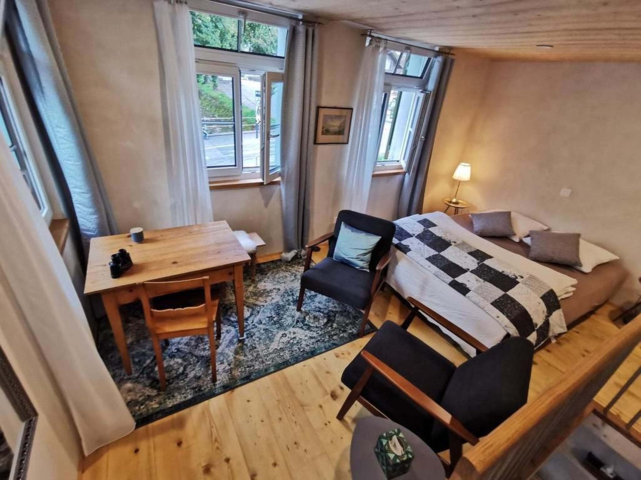 Das 2-stöckige Studio bietet speziellen Charme und Ausblick auf den Dorfkern.