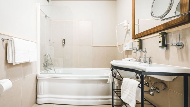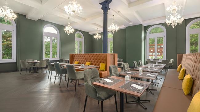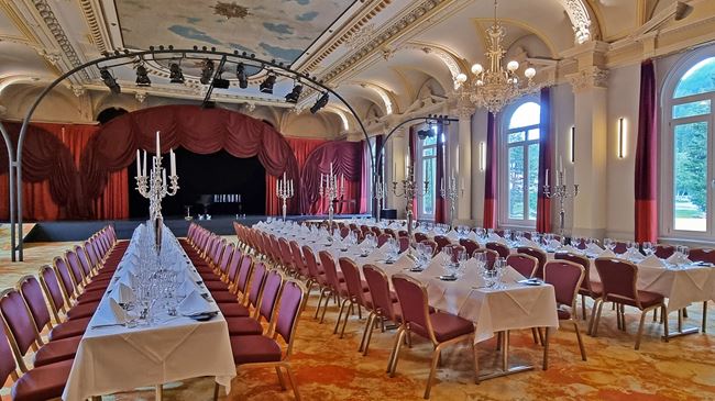 Eine Lobbybar für Snacks und Drinks, öffentliche Bereiche und ein grosser Theatersaal mit Kronleuchtern, Stuckdecken, antiken Spiegeln und Wandmalereien versetzen Sie zurück in die Zeit des Jugendstils.