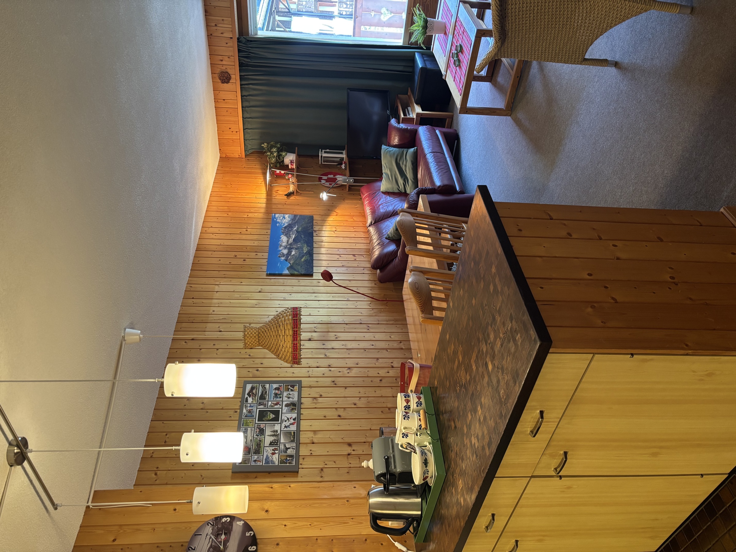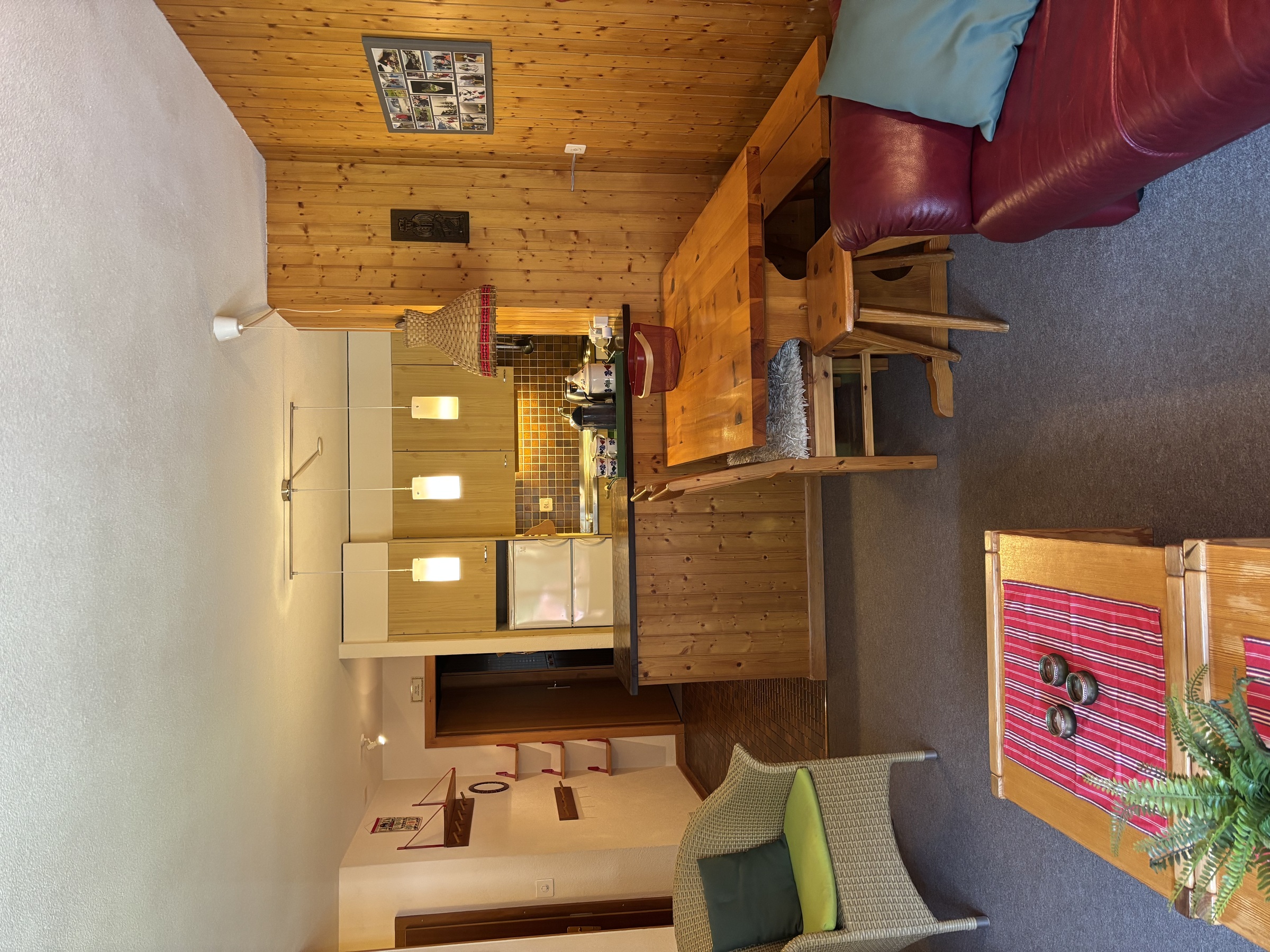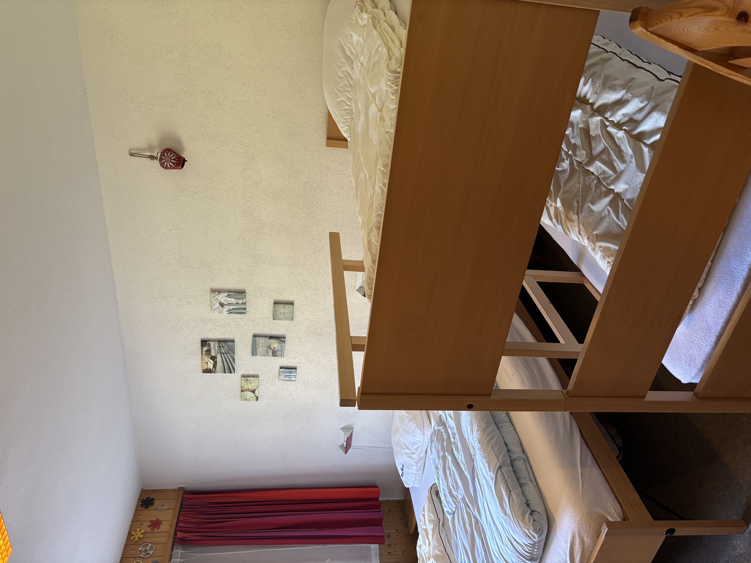 - Séjour avec TV - Wifi - Coin cuisine - Balcon - Non Fumeur - Disposition des lits (1 chambre - bain wc - wc séparé) : - 1 chambre à 1 lit à étage pour 2 personnes et 2 lits pour 1 personne = 4 - Séjour avec 2 lits-armoires pour 1 personne = 2