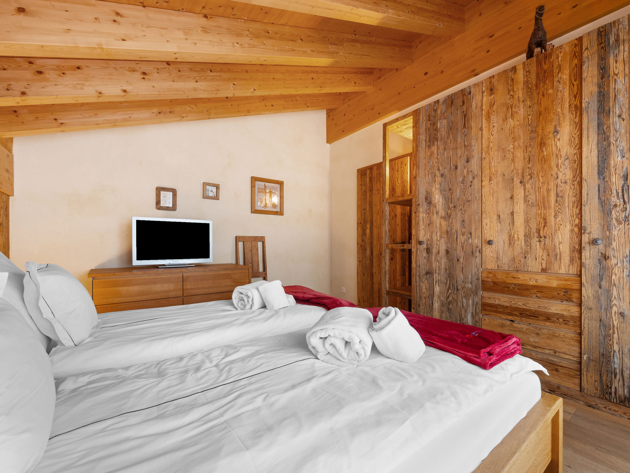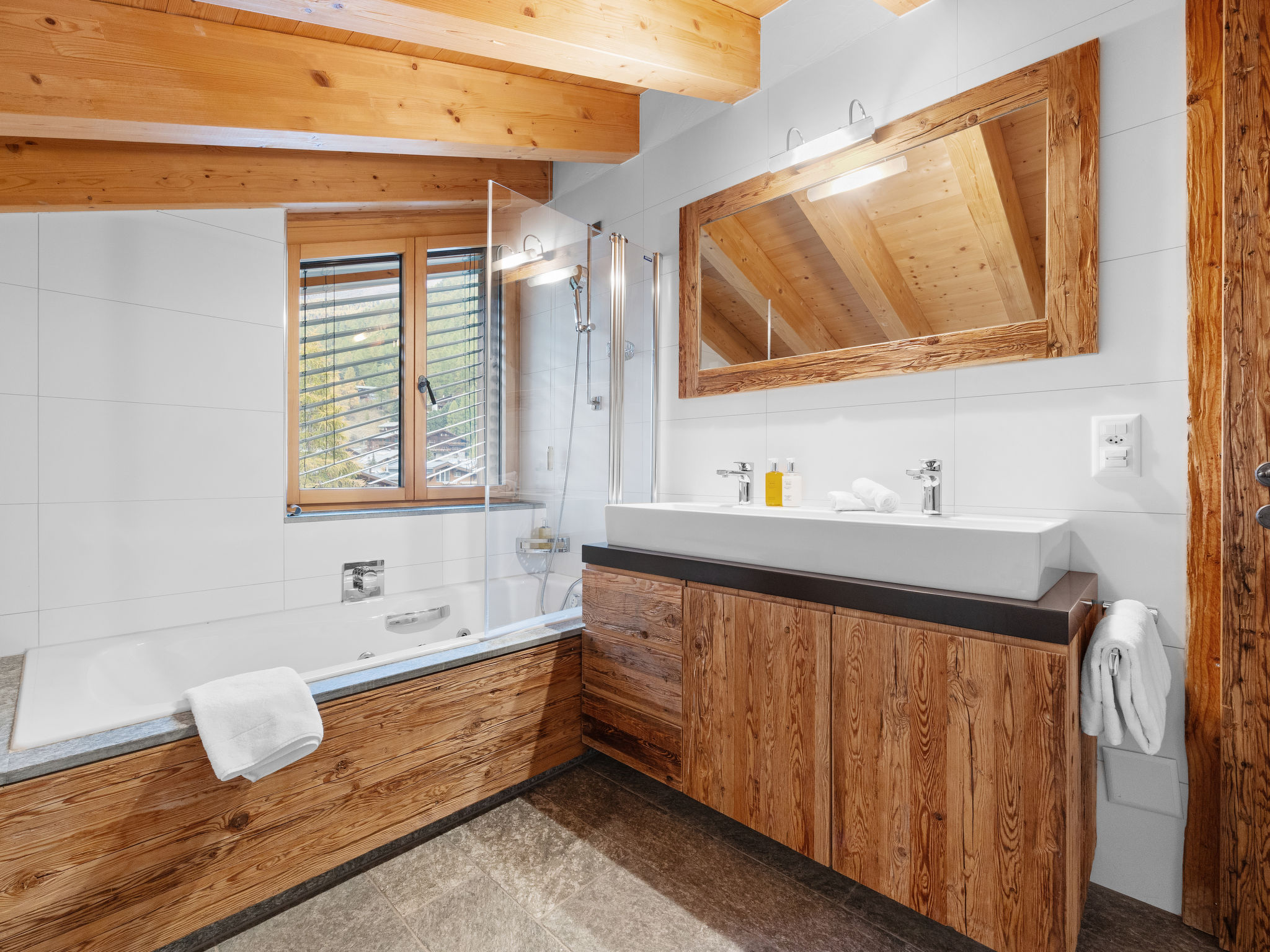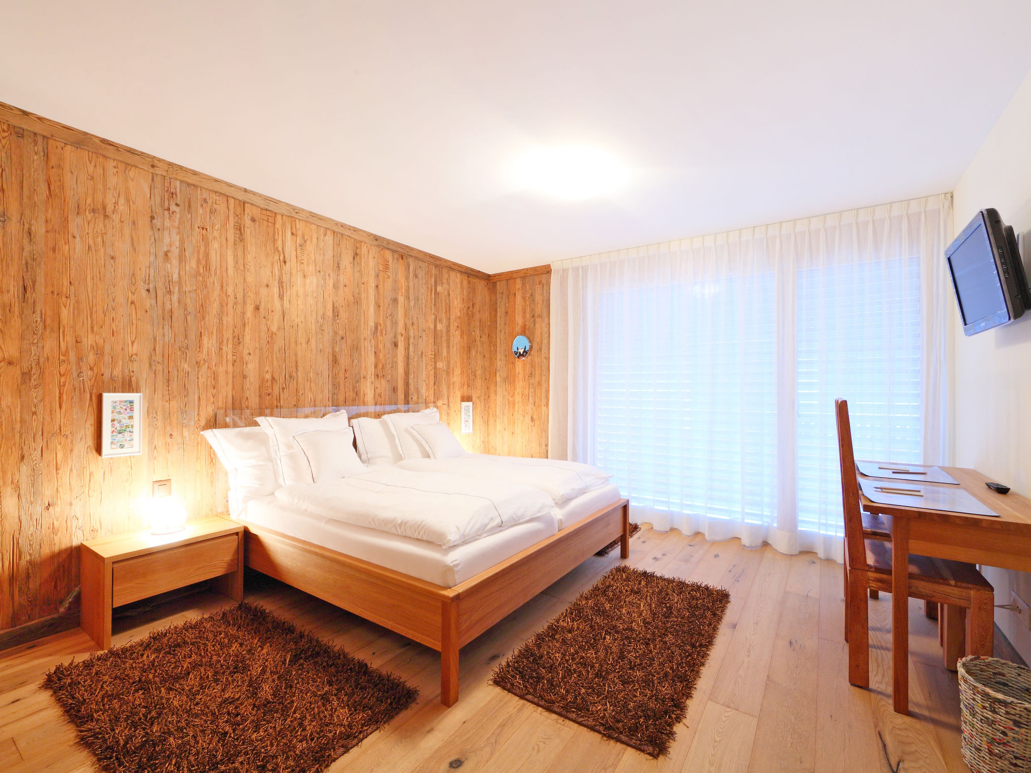 8-Zimmer-Wohnung 255 m2 auf 2 Stockwerken im 3. Stock. Luxuriös und gemütlich eingerichtet: 2 Doppelzimmer, jedes Zimmer mit 1 Doppelbett und TV. Wohn-/Esszimmer mit offenem Kamin, Esstisch, TV, Radio, CD und DVD. Ausgang zum Balkon. Offene Küche (Backofen, Geschirrspüler, 4 Induktionskochplatten, Toaster, Wasserkocher, Tiefkühler, elektrische Kaffeemaschine, Kapseln für die Kaffeemaschine (Nespresso) extra, Racletteofen, Fondue Set (Käse)). 2 Bäder/WC, Whirlbadewanne. Unteres Geschoss: 3 Doppelzimmer, jedes Zimmer mit 1 Doppelbett. 1 Zimmer mit 2 Betten (90 cm, Länge 200 cm). 2 Bäder/WC, Whirlbadewanne. Balkon 14 m2, Südlage Balkon 12 m2, Südlage. Balkonmöbel. Sicht auf das Matterhorn. Zur Verfügung: Safe, Haartrockner. Internet (WLAN, gratis). Bitte beachten: Nichtraucher-Unterkunft. Kombination (Verbindungstür) aus 2 Duplex Wohnungen.