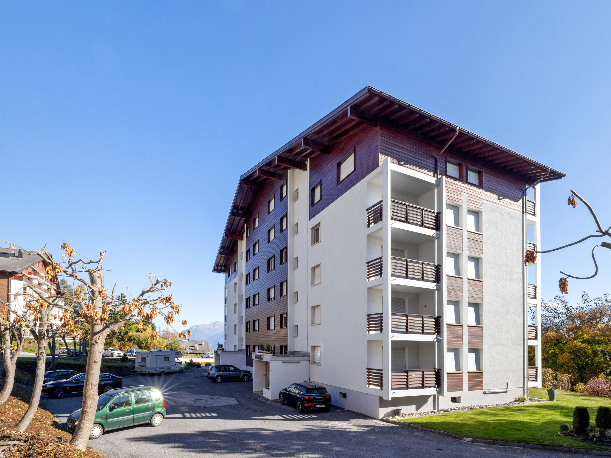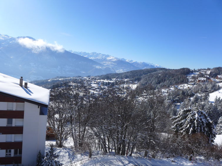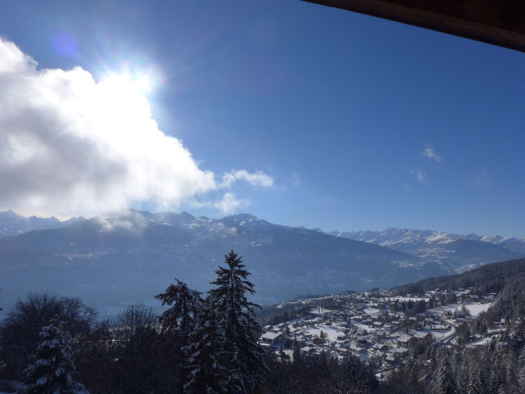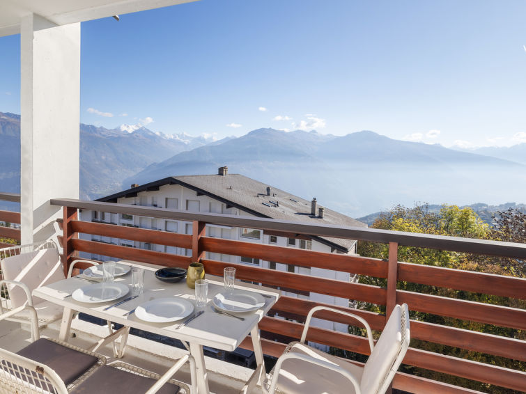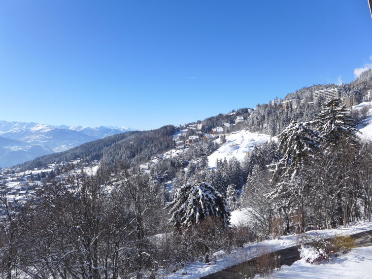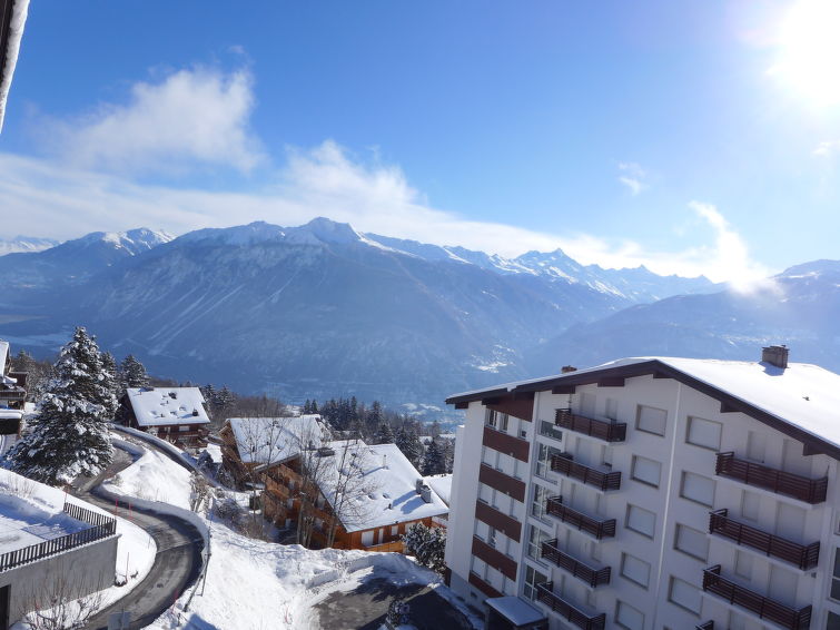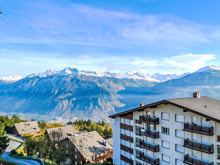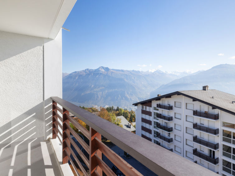 Residenz "Armorial Est / Ouest", auf 5 Stockwerken. Im Ortsteil Combaz, 1.5 km vom Zentrum von Montana, ruhige, sonnige Lage, verkehrsberuhigte Zone, 2.1 km vom See, 1.2 km vom Skigebiet, Richtung Süden. In der Anlage: Tischtennis, Fahrstuhl, Skiraum, Zentralheizung, Waschmaschine, Wäschetrockner (zur Mitbenutzung, extra). Parkplatz (beschränkte Anzahl) beim Haus. Einkaufsgeschäft 1.5 km, Supermarkt 1.5 km, Restaurant 1.5 km, Bäckerei 750 m, Bushaltestelle "Comba" 300 m, Bahnstation "Funiculaire Montana Gare" 1.1 km, Badesee "Moubra" 2.5 km. Golfplatz (18 Loch) 3.5 km, Tennis 2.5 km, Sportzentrum 2.5 km, Skisportanlagen 1.2 km, Langlaufloipe 2.5 km, Eisfeld 1.9 km. Bekannte Seen in der Umgebung sind gut erreichbar: Grenon 2.1 km, Etang Long 3.6 km. Bitte beachten: Gratis Skibus. Weitere Unterkünfte sind buchbar.
