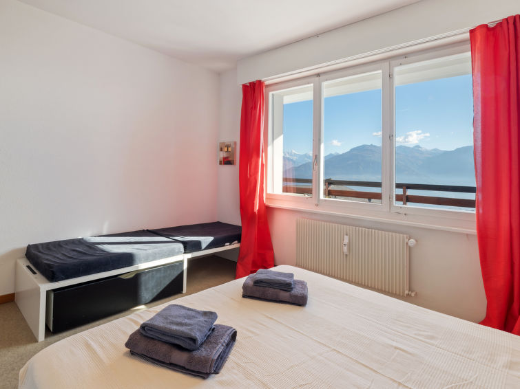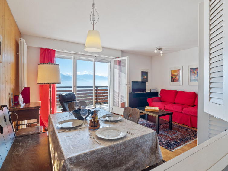 "Armorial Est 72", 2-Zimmer-Wohnung 60 m2 im 4. Stock, Südlage. Hell, komfortabel und schön eingerichtet: grosses Wohn-/Esszimmer mit 1 Doppeldiwanbett (160 cm, Länge 200 cm), sep. WC, Kabel-TV, Flachbildschirm, Radio, CD und DVD. Ausgang zum Balkon, Richtung Süden. 1 Zimmer mit 1 franz. Bett (160 cm, Länge 200 cm). Offene Küche (3 Kochplatten, Backofen, Geschirrspüler, Toaster, Wasserkocher, elektrische Kaffeemaschine, Racletteofen). Bad/Bidet/WC. Balkon, Südlage. Balkonmöbel. Sehr schöne Sicht auf die Berge und das Tal. Zur Verfügung: Haartrockner. Internet (WLAN, gratis). Bitte beachten: Nichtraucher-Unterkunft. Maximal 1 Haustier/Hund erlaubt.