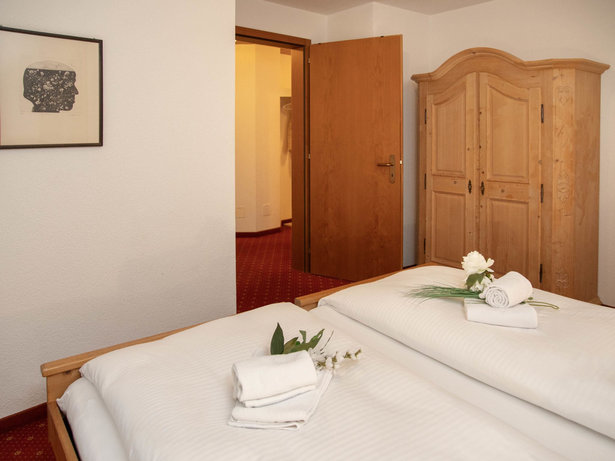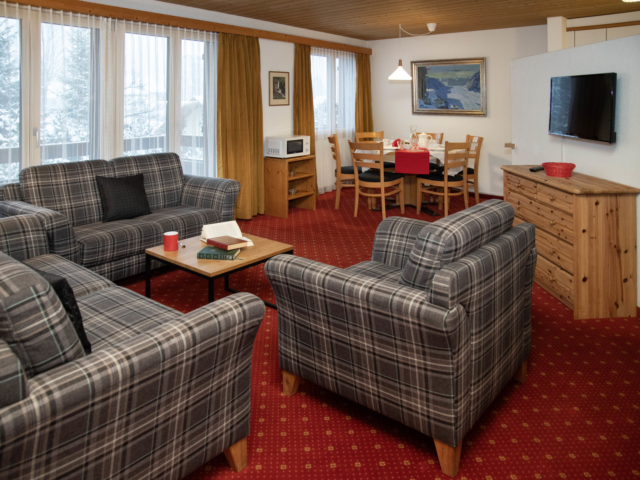 4-Zimmer-Wohnung 89 m2 auf 2 Stockwerken im 3. Stock, Ostlage. Wohn-/Esszimmer mit Kabel-TV (Flachbildschirm). 2 Doppelzimmer. Offene Küche (Backofen, Geschirrspüler, 4 Glaskeramikplatten, Toaster, Wasserkocher, elektrische Kaffeemaschine, Kapseln für die Kaffeemaschine (Nespresso) extra). Bad/WC. Unteres Geschoss: 1 Doppelzimmer mit Dusche/WC. Balkon, Ostlage, Terrasse, Ostlage. Terrassenmöbel. Sicht auf die Berge. Zur Verfügung: Haartrockner. Internet (WLAN). Bitte beachten: Nichtraucher-Unterkunft. Maximal 1 Haustier/Hund erlaubt. Ein Fondue Set (Fleisch oder Käse) sowie ein Raclette Ofen kann an der Rezeption ausgeliehen werden.