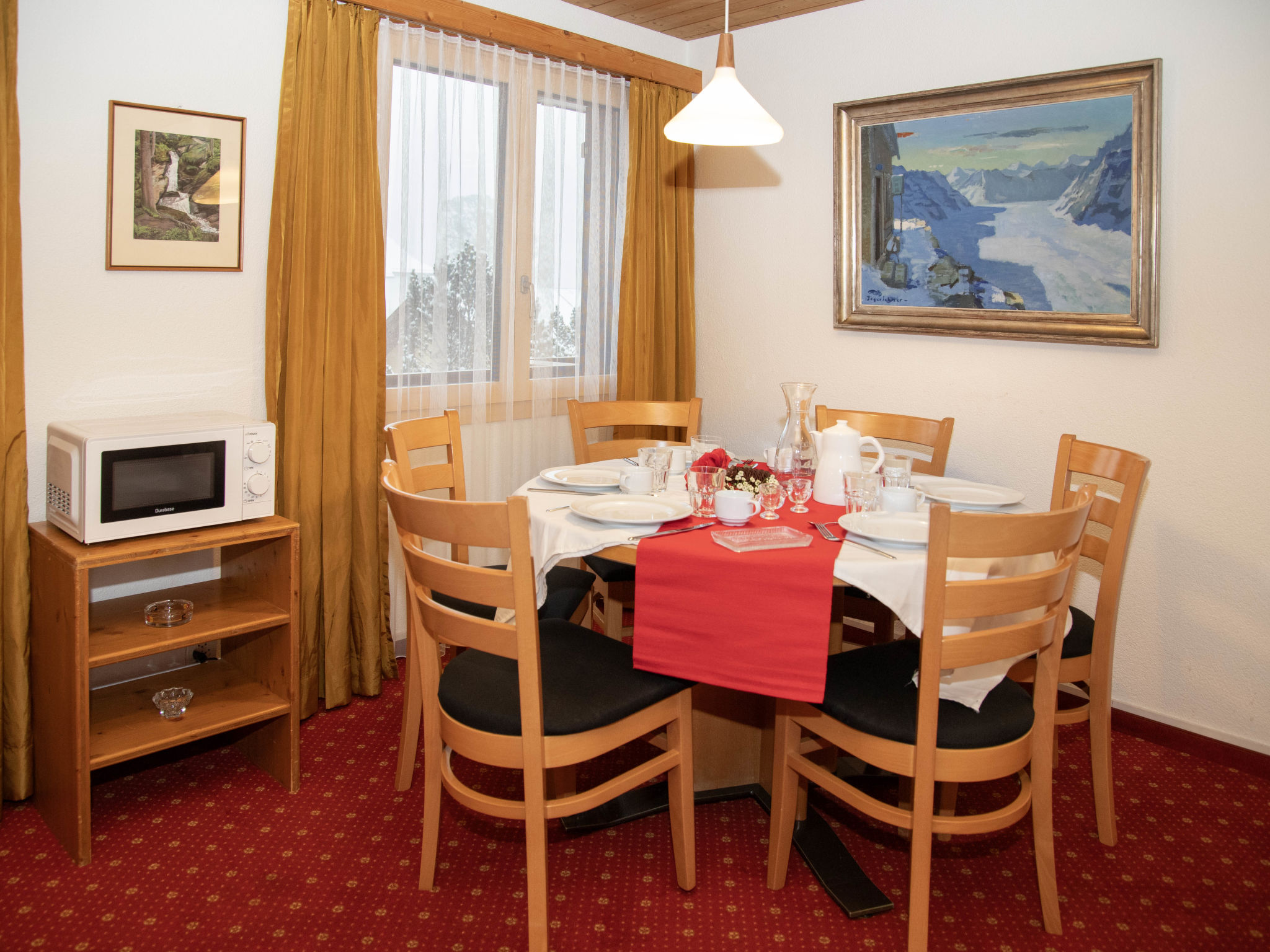 Residenz "Chalet Abendrot apARTments". Im Ortszentrum. Im Hause: Empfang, Aufenthaltsraum, Wireless LAN, Tischtennis, Billard, Spielzimmer, Fahrstuhl, Skiraum, Zentralheizung. Einkaufsservice vor Anreise möglich. Im Winter bitte Schneeketten mitbringen. Gemeinschaftsgarage (extra), öffentliche Parkplätze 200 m extra. Einkaufsgeschäft 400 m, Restaurant 10 m, Bushaltestelle "Firstbahn" 80 m, Bahnstation "Grindelwald Dorf" 800 m, Freibad 2.5 km, Hallenbad 600 m. Golfplatz (9 Loch) 2 km, Tennis 1 km, Minigolf 400 m, Sportzentrum 600 m, Bergeisenbahn 800 m, Gondelbahn 80 m, Skiverleih 50 m, Skibushaltestelle 80 m, Langlaufloipe 1 km, Kinderspielplatz 600 m. Bekannte Seen in der Umgebung sind gut erreichbar: Thuner-/Brienzersee 18 km. Bitte beachten: Der Besitzer akzeptiert keine Gruppen. Gratis Skibus. Die Nachbarschaft ist sehr lärmempfindlich. Ruhe und gutes Benehmen wird erwartet. Indisches Restaurant "Golden India" im Hause. Das im Chaletstil erbaute Appartementhaus bietet einen Jugendraum, ein Kinderspielzimmer, eine Autoeinstellhalle (Parkplatz CHF 98.00/Woche, Reservierung bei Ankunft). Modern-rustikale und gemütliche Wohnungen, die meisten mit grosszügigem Balkon oder Terrasse und wunderbarem Blick auf die Bergwelt. Bitte beachten: Beschränkte Anzahl Garagenplätze. Nicht vorreservierbar. Garagenhöhe und -breite: 12 Parklpätze 2.09x2.06 m, 15 Parkplätze 1.65x2.06 m. Max. 2000 kg.