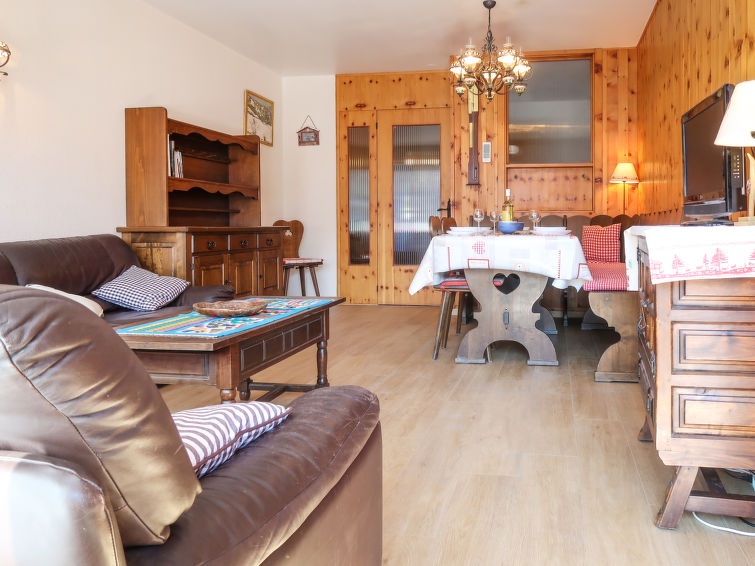 "Bouleaux E 1", 3-Zimmer-Wohnung 57 m2 im 1. Stock. Objekt geeignet für 2 Erwachsene + 3 Kinder. Zweckmässig eingerichtet: Wohn-/Esszimmer mit Kabel-TV. Ausgang zum Balkon, Richtung Süden. 1 Zimmer mit 1 franz. Bett (140 cm, Länge 200 cm). Ausgang zum Balkon, Richtung Norden. 1 Kinderzimmer mit 1 Bett (90 cm, Länge 200 cm), 1 x 2 Etagenbetten (90 cm, Länge 190 cm). Ausgang zum Balkon, Richtung Norden. Küche (3 Kochplatten, Backofen, Toaster, Wasserkocher, Mikrowelle, Racletteofen, Fondue Set (Käse)). Bad, sep. WC. Balkon, Südlage Balkon, Nordlage. Balkonmöbel. Sicht auf die Berge und die Ortschaft. Zur Verfügung: Internet (WLAN, gratis). Parkplatz Nr. 7 Les Sorbiers. Bitte beachten: Nichtraucher-Unterkunft.
