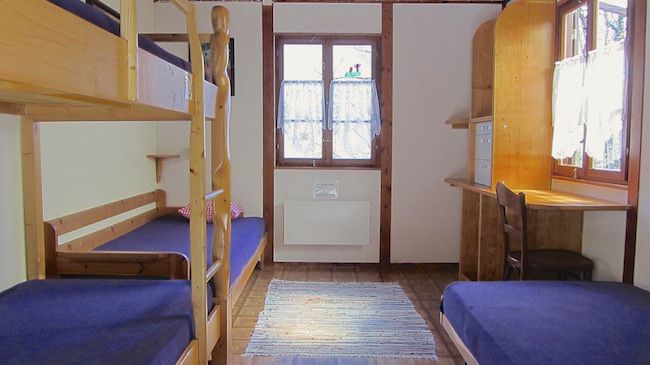Alle Zimmer sind mit Etagenbetten und einer Heizung in den kalten Monaten ausgestattet. Die Gemeinschaftsbäder mit Dusche liegen auf der gleichen Etage. Schliessfächer vorhanden.