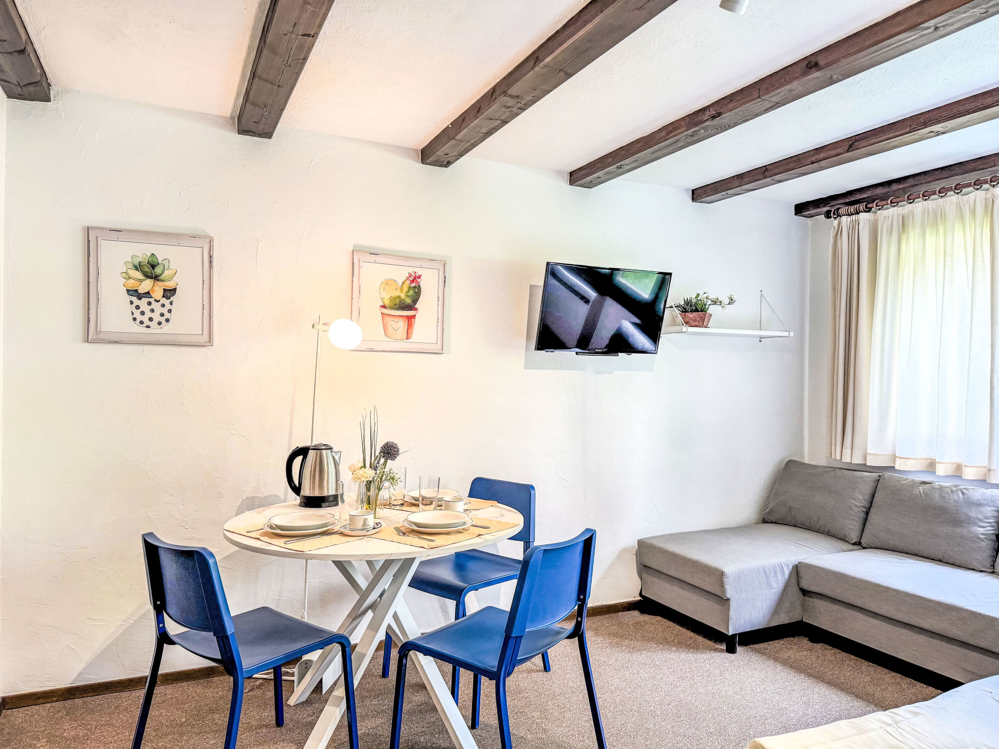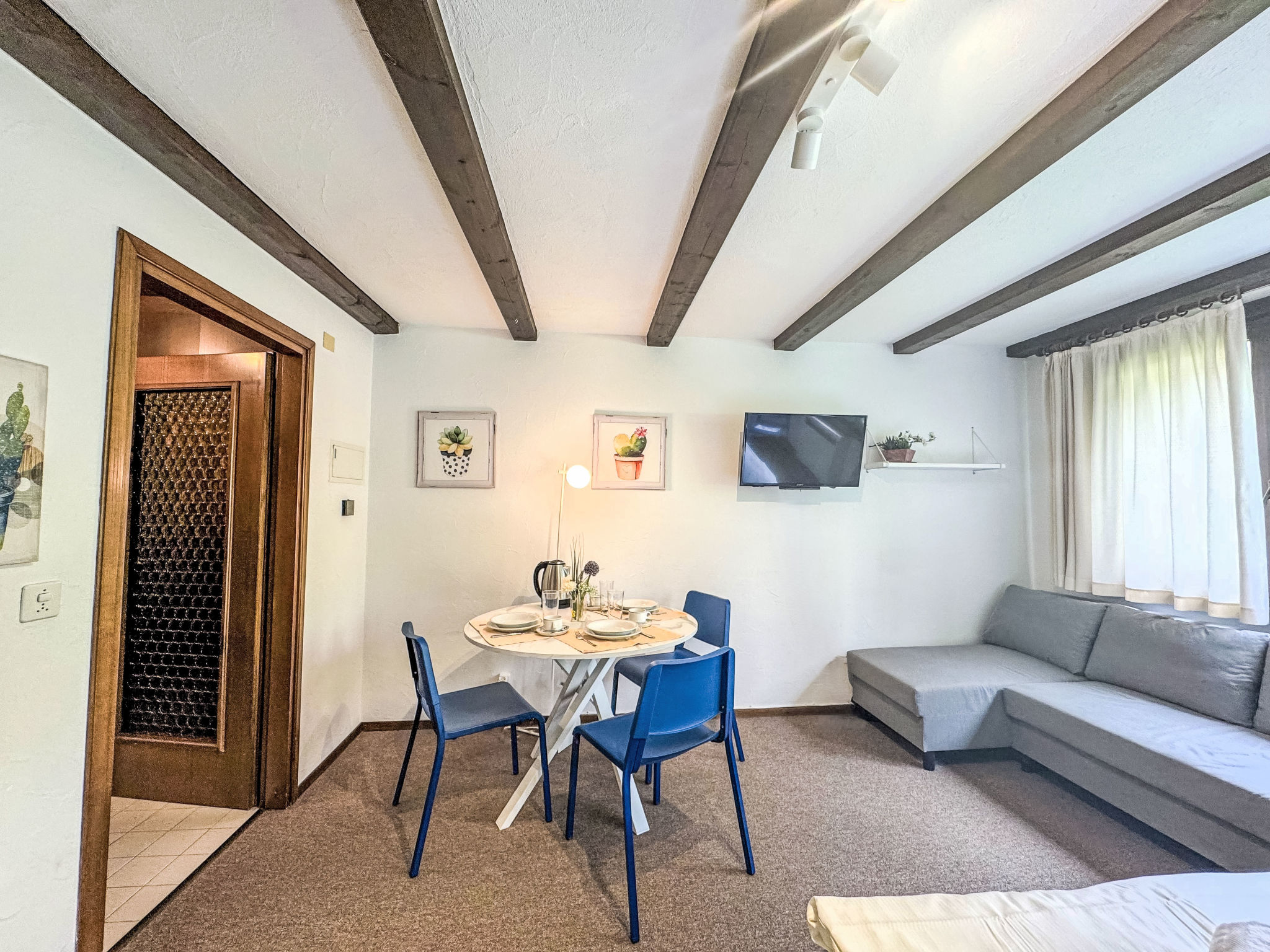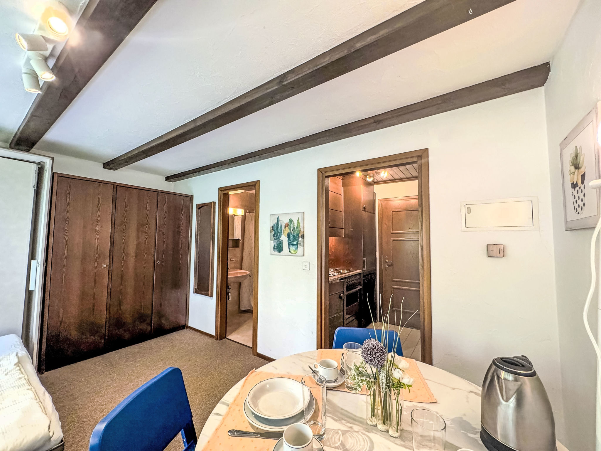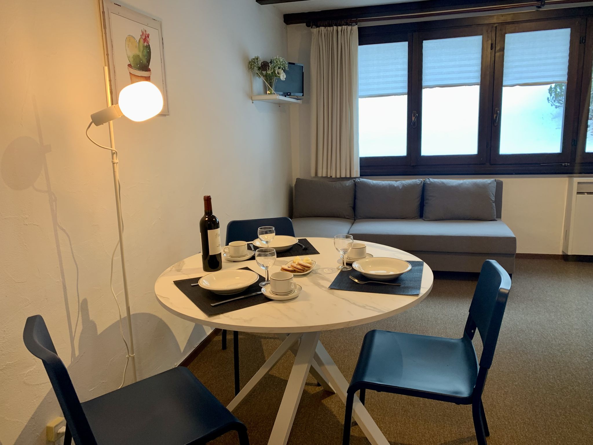 "Residenza Chesa Margun 33-1", 1-Zimmer-Wohnung 32 m2, im Erdgeschoss, Nordlage. Objekt geeignet für 2 Erwachsene + 1 Kind. Komfortabel und gemütlich eingerichtet: Wohn-/Esszimmer mit 1 Diwanbett (140 cm, Länge 190 cm), 1 Doppelwandschrankbett (160 cm, Länge 190 cm), Digital-TV und Flachbildschirm. (4 Kochplatten, Backofen, Geschirrspüler, Tiefkühler, elektrische Kaffeemaschine) mit 1 Diwanbett (130 cm, Länge 190 cm). Dusche/WC. Heizung. Teppichboden. Zur Verfügung: Internet (WLAN, gratis). Garage (1 Auto), Höhe 203 cm, Breite 350 cm. Bitte beachten: Wohnung auf Hofseite. Maximal 1 Haustier/Hund erlaubt.