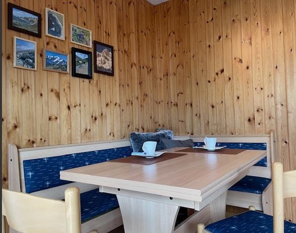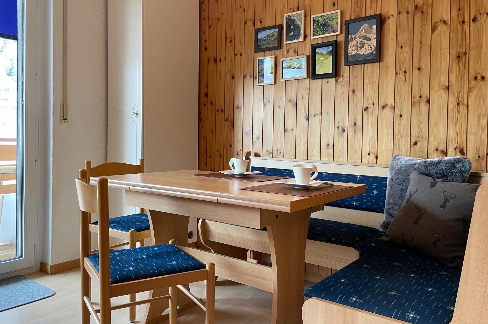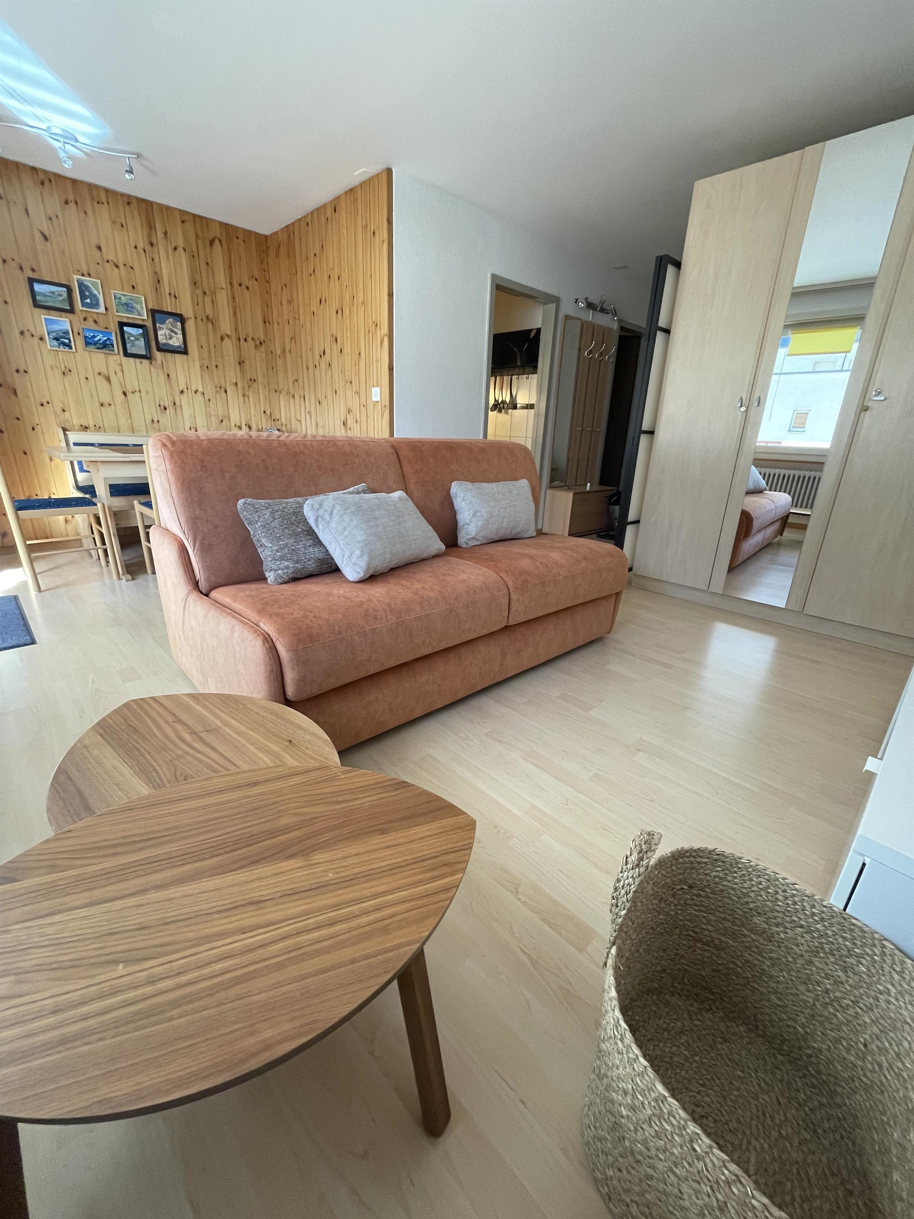 1-Zimmerwohnung (35m2): Wohn-/Ess-/Schlafzimmer mit Doppelbett im abtrennbaren Schlafbereich, gratis WLAN, TV, moderne separate Küche mit Geschirrspüler und Mikrowelle, Bad/WC, Balkon. Garage zu mieten. In unmittelbarer Nähe: Ski- und Wandergebiet, Dorfzentrum. Ruhige Lage mit herrlichem Blick auf die Berge. Nichtraucherwohnung. Haustiere nicht erlaubt.