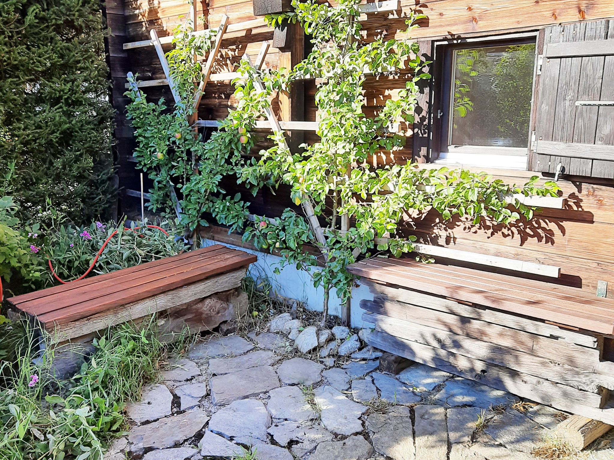 Im Garten, der Ihnen zur alleinigen Nutzung zur Verfügung steht, können Sie die frische Bergluft genießen, während die Terrasse der perfekte Ort für gemeinsame Mahlzeiten im Freien ist. Eine Waschmaschine und ein Wäschetrockner im Objekt erleichtern den Aufenthalt bei längeren Buchungen. Die Küche ist mit einem 3-Platten-Herd, einem Cerankochfeld, einer Espressokanne, einem Steamer/Dampfgarer, einem Wasserkocher und einem Minibackofen ausgestattet. Für gemütliche Abende sorgt der vorhandene Schwedenofen.