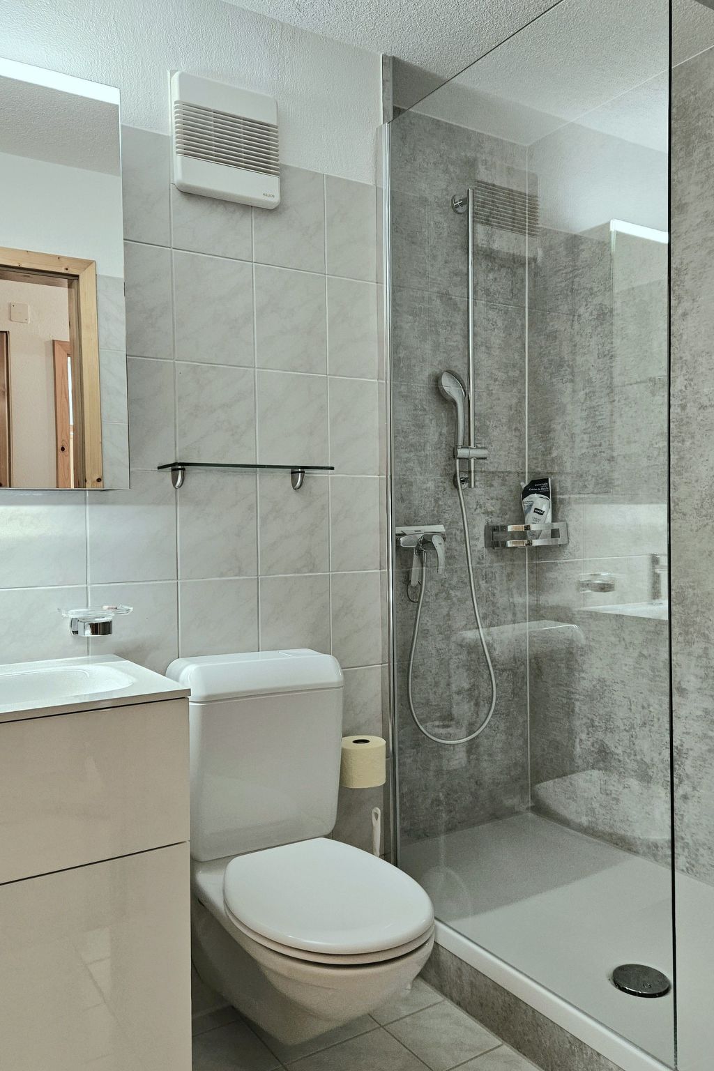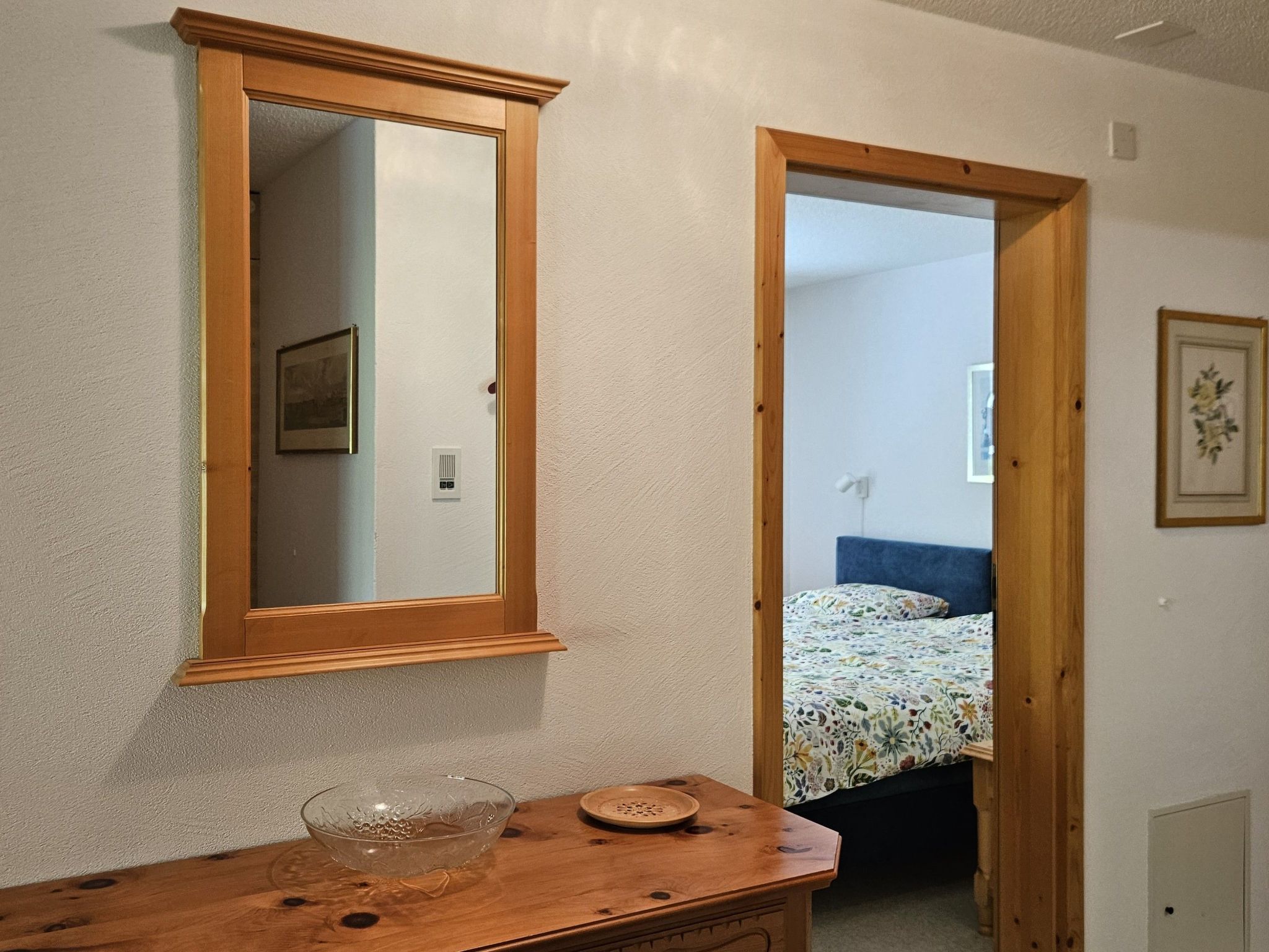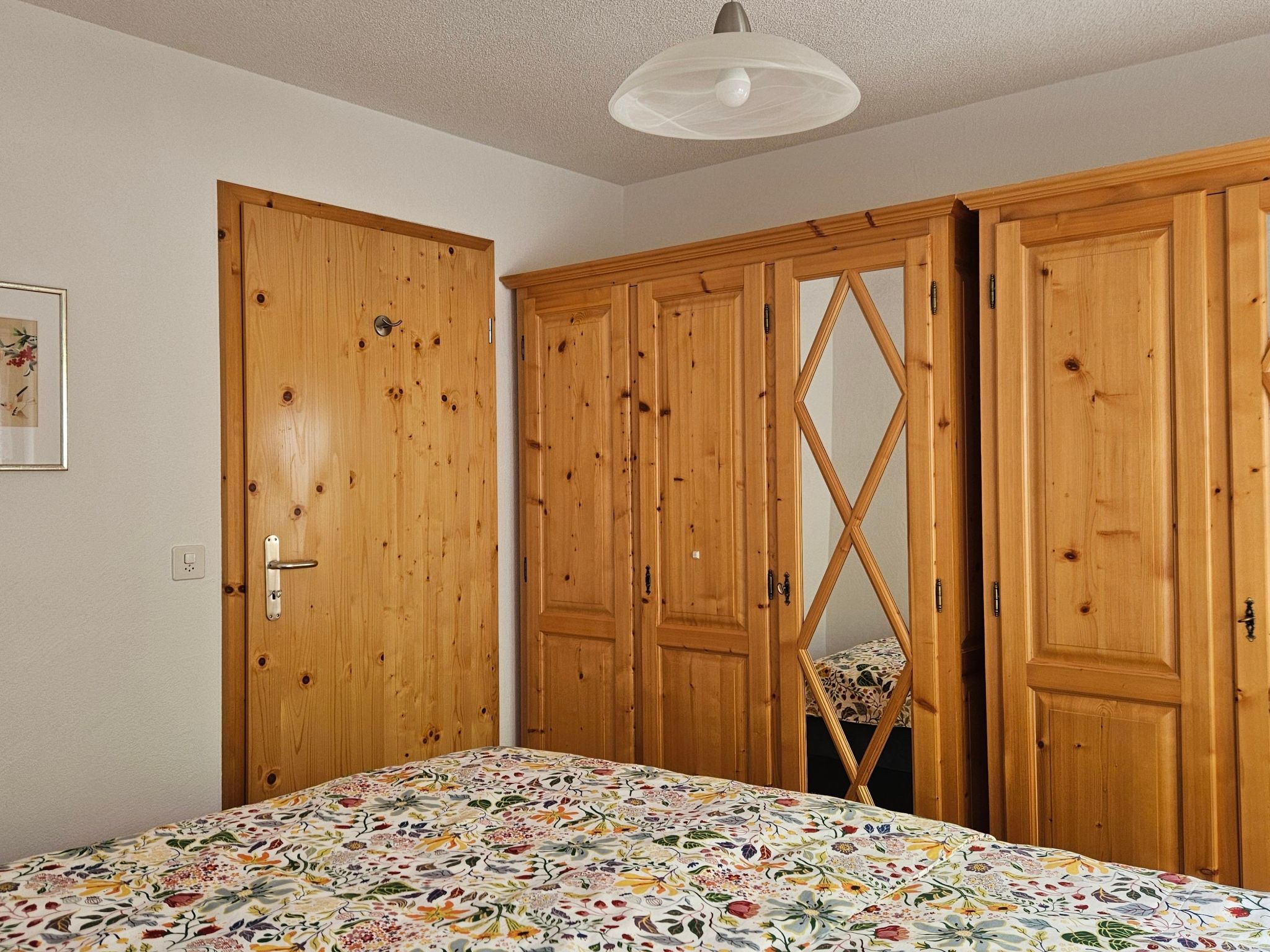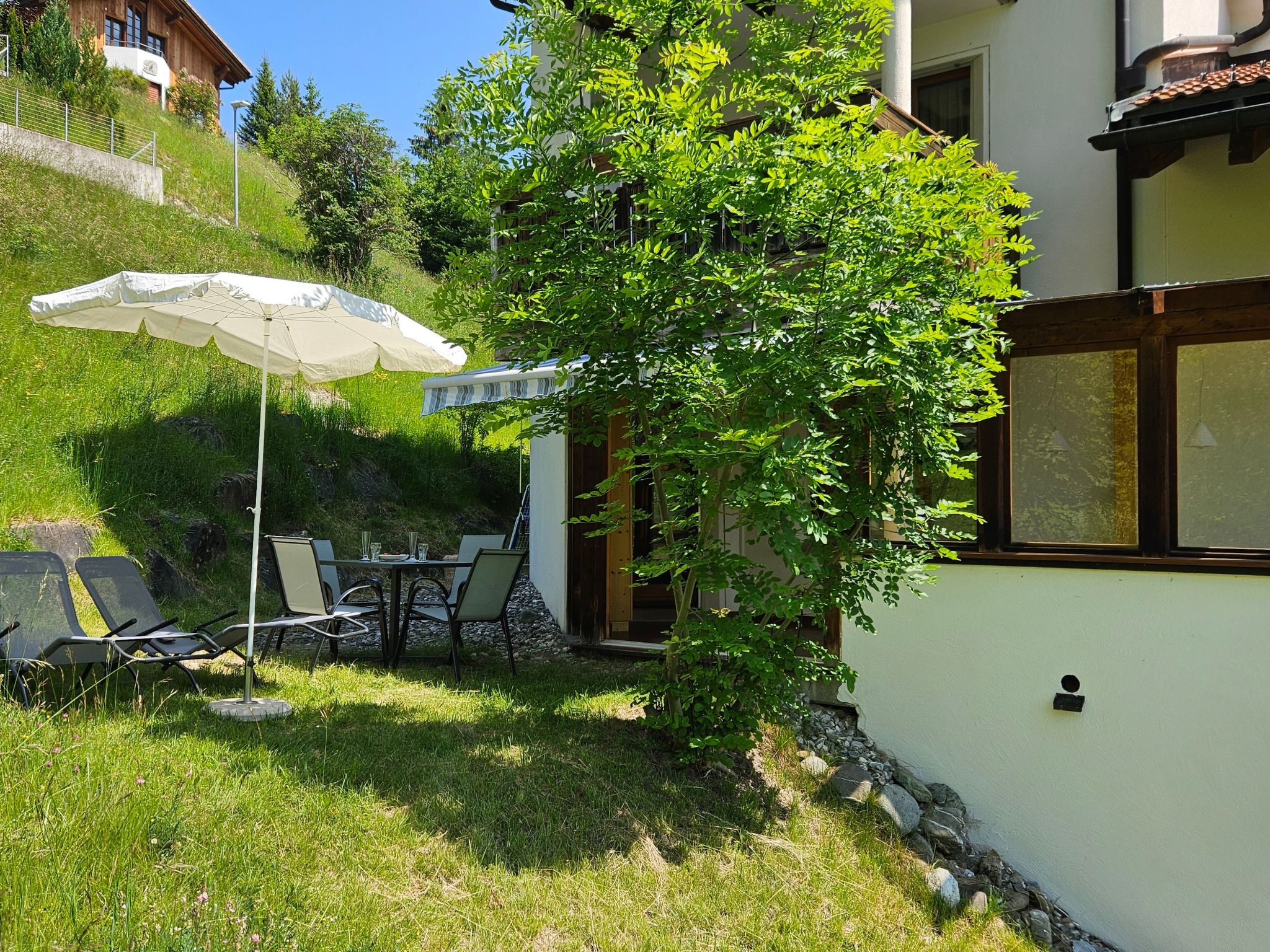 Im Inneren der Wohnung sorgt ein modern eingerichtetes Wohnzimmer mit großem TV, Bettsofa, Polstersessel und Cocktailtisch für Komfort, ergänzt durch den direkten Ausgang zum Wintergarten bzw. zum Gartensitzplatz. Eine gut ausgerüstete Küche mit Glaskeramikherd, Backofen, Geschirrspüler, Fondue Rechaud, Raclette Ofen, Kaffeemaschine und vieles mehr steht zur Nutzung bereit. Ein großer Arvenholz Esstisch und bequeme Holzstühle laden zum gemeinsamen Essen ein. Das Schlafzimmer besticht mit zwei grossen Boxspringbetten (2.2 m x 1.0 m), welche einen erholsamen Schlaf garantieren, und zwei rustikalen Arvenholzschränken. Das moderne WC/Bad mit begehbarer Dusche rundet das Ganze ab.