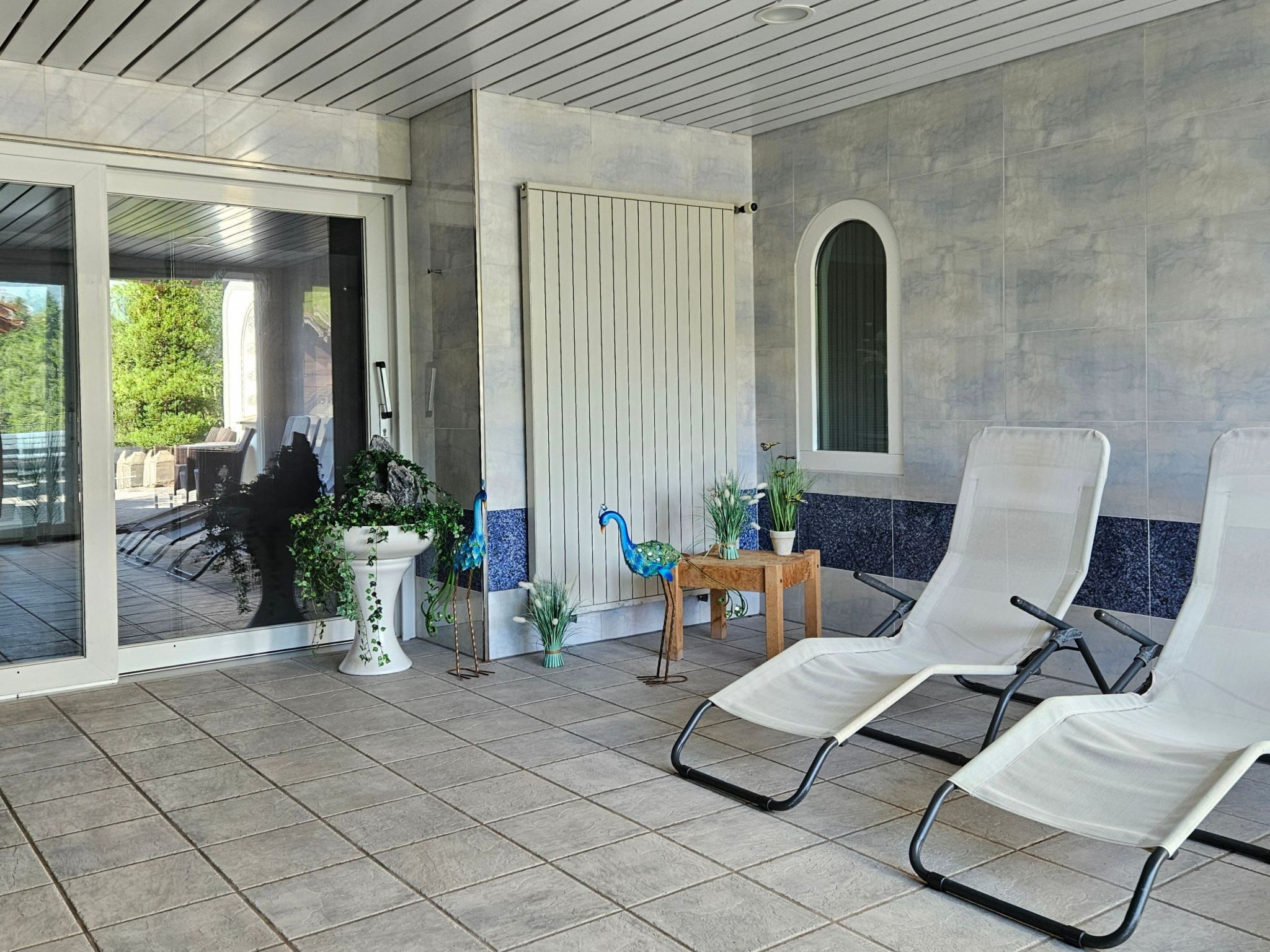 Der Außenbereich bietet mit einem Gartensitzplatz, Gartenstühlen und Liegen sowie einem lichtdurchfluteten Wintergarten mit Esstisch und Stühlen die perfekte Infrastruktur, um die frische Bergluft und die beruhigende Stille der Natur zu genießen. Diese Bereiche laden dazu ein, bei einer Tasse Kaffee am Morgen oder einem entspannenden Drink am Abend die Seele baumeln zu lassen und die umliegende Landschaft zu bewundern.