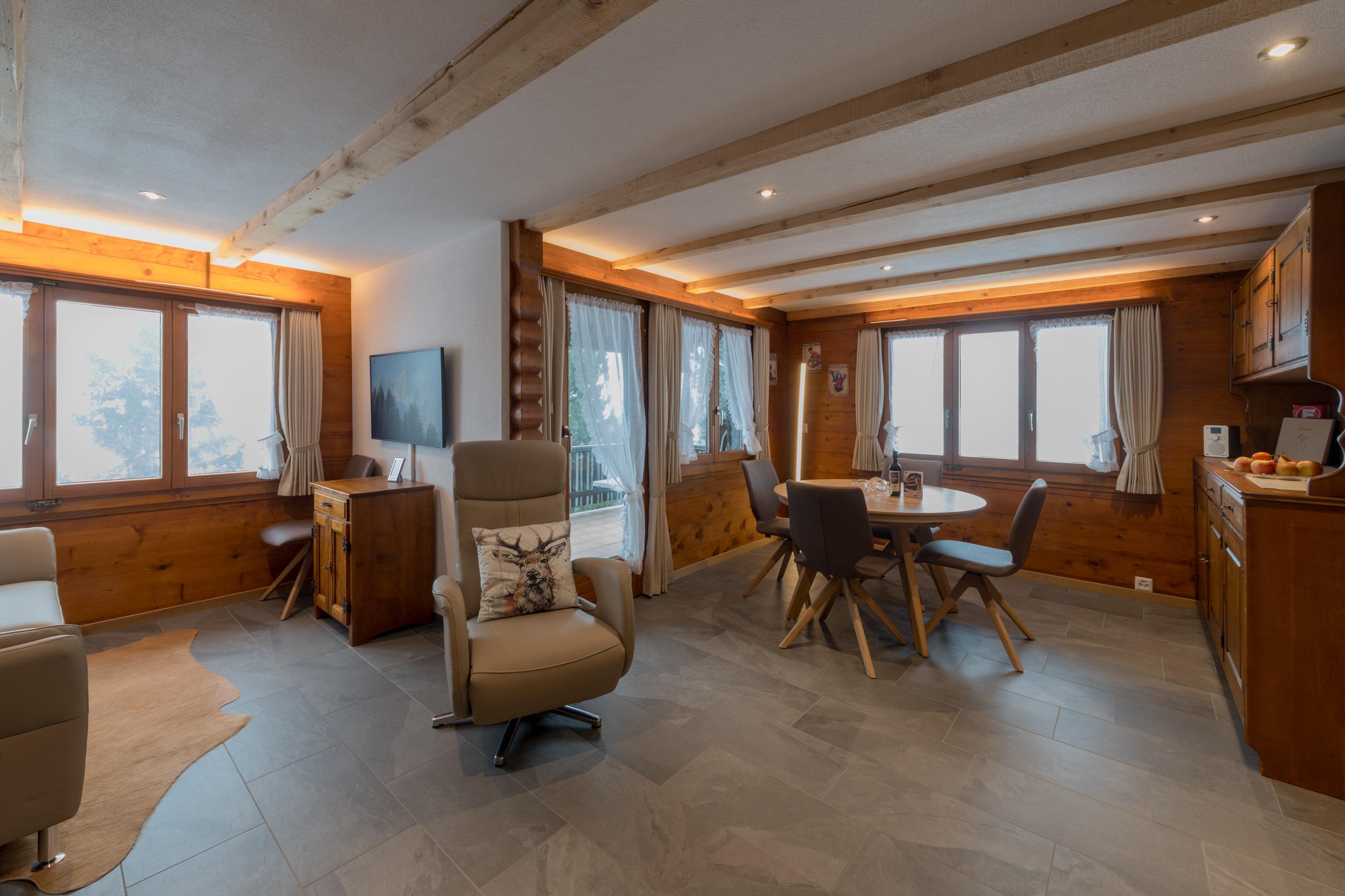 Das Chalet Guardaval OG bietet dir ein gemütliches Zuhause in alpiner Umgebung, ideal für erholsame Tage auf der Bettmeralp. Die Wohnung liegt ruhig und leicht erhöht und eröffnet dir einen eindrucksvollen Blick auf die Walliser Alpen sowie auf die Kapelle Maria zum Schnee. Hier findest du einen Rückzugsort fernab vom Alltag, an dem Ruhe und Natur im Vordergrund stehen. Ob verschneite Winterlandschaft oder sommerliche Bergwelt, das Chalet ist zu jeder Jahreszeit ein passender Ausgangspunkt für entspannte und aktive Ferientage. Nach draussen treten, tief durchatmen und die besondere Atmosphäre der autofreien Bettmeralp geniessen gehört hier ganz selbstverständlich dazu. Die Wohnung eignet sich für Paare, Familien oder Freunde, die Wert auf eine gepflegte Unterkunft mit heimeligem Charakter legen und ihre Ferien in entspannter Umgebung verbringen möchten.