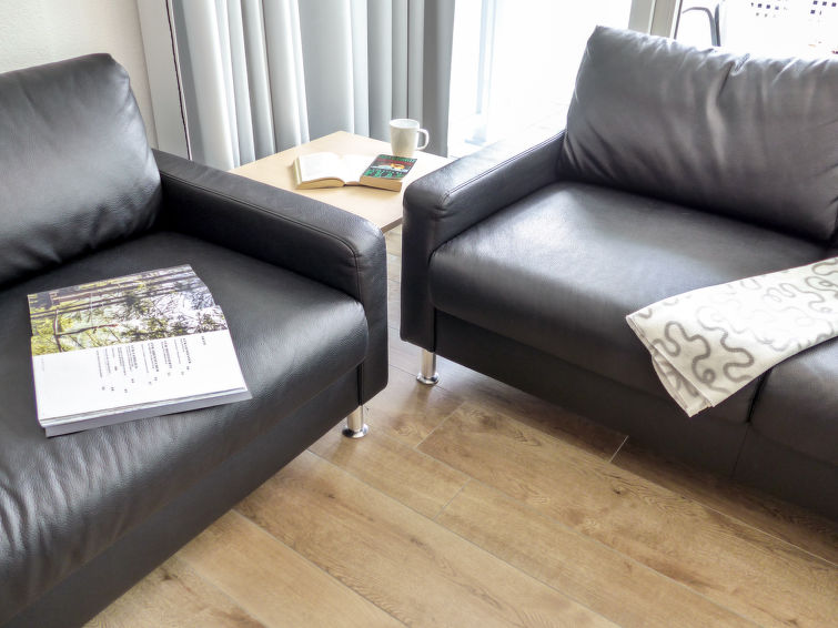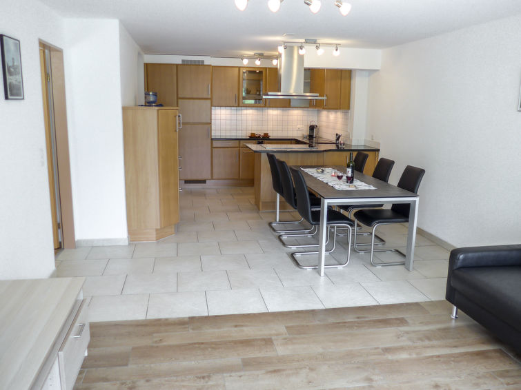 4-Zimmer-Wohnung 105 m2 im 2. Stock. Renoviert im Jahre 2015, modern eingerichtet: Wohn-/Esszimmer mit Sat-TV und Radio. Ausgang zum Balkon, Richtung Süden. 1 Zimmer mit 2 Betten (90 cm, Länge 190 cm). Ausgang zum Balkon, Richtung Westen. 1 Zimmer mit 2 Betten. Ausgang zum Balkon, Richtung Süden. 1 Zimmer mit 2 Betten (90 cm, Länge 190 cm). Offene Küche (Backofen, Geschirrspüler, 4 Glaskeramikplatten, Toaster, Mikrowelle, elektrische Kaffeemaschine, Kapseln für die Kaffeemaschine (Nespresso) extra, Fondue Set (Käse)) mit Esstisch. Bad/WC, Dusche/WC. Bodenheizung. Balkon, Südlage und Westlage. Terrassenmöbel. Sehr schöne Sicht auf die Berge. Zur Verfügung: Babybett, Haartrockner. Internet (Wireless LAN, gratis). Parkplatz (1 Auto). Bitte beachten: Nichtraucher-Unterkunft. Maximal 1 Haustier/Hund erlaubt.