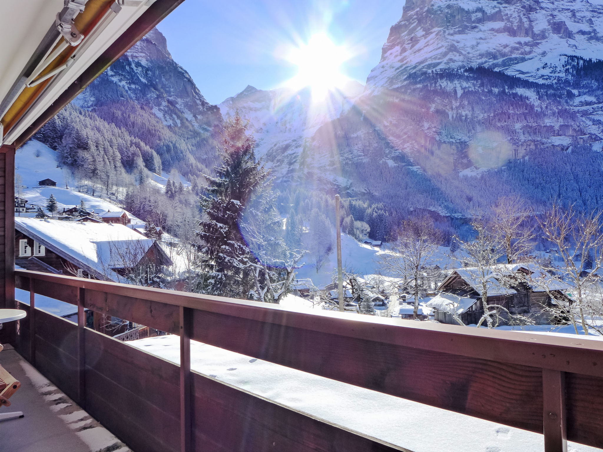 2-Zimmer-Wohnung 40 m2, im erhöhten Erdgeschoss, Südlage. Sehr komfortabel und gemütlich eingerichtet: offenes Wohn-/Esszimmer mit Esstisch, Kabel-TV, Internationale TV-Sender und Radio. Ausgang zum Balkon, Richtung Süden. 1 Zimmer mit 1 Doppelbett (2 x 80 cm, Länge 200 cm). Offene Küche (Backofen, Geschirrspüler, 4 Glaskeramikplatten, Toaster, Wasserkocher, elektrische Kaffeemaschine, Kapseln für die Kaffeemaschine (Nespresso) extra, Racletteofen, Fondue Set (Käse)). Bad/WC. Teppichboden. Balkon, Südlage. Balkonmöbel. Herrliche Sicht auf die Berge, die Landschaft und Eigernordwand. Zur Verfügung: Haartrockner. Internet (Wireless LAN, gratis). Garage (1 Auto) beim Haus, Höhe 195 cm. Bitte beachten: Nichtraucher-Unterkunft.