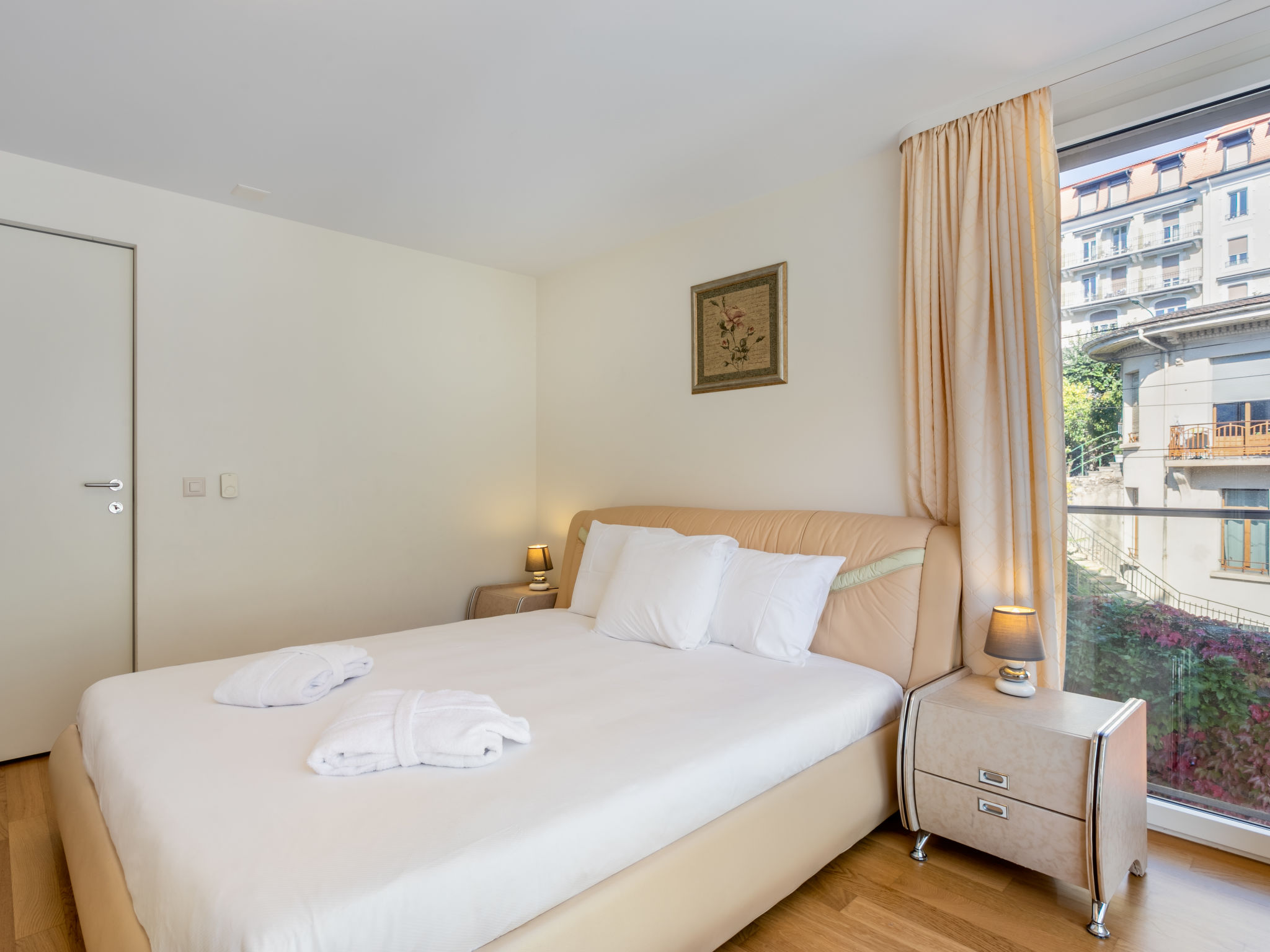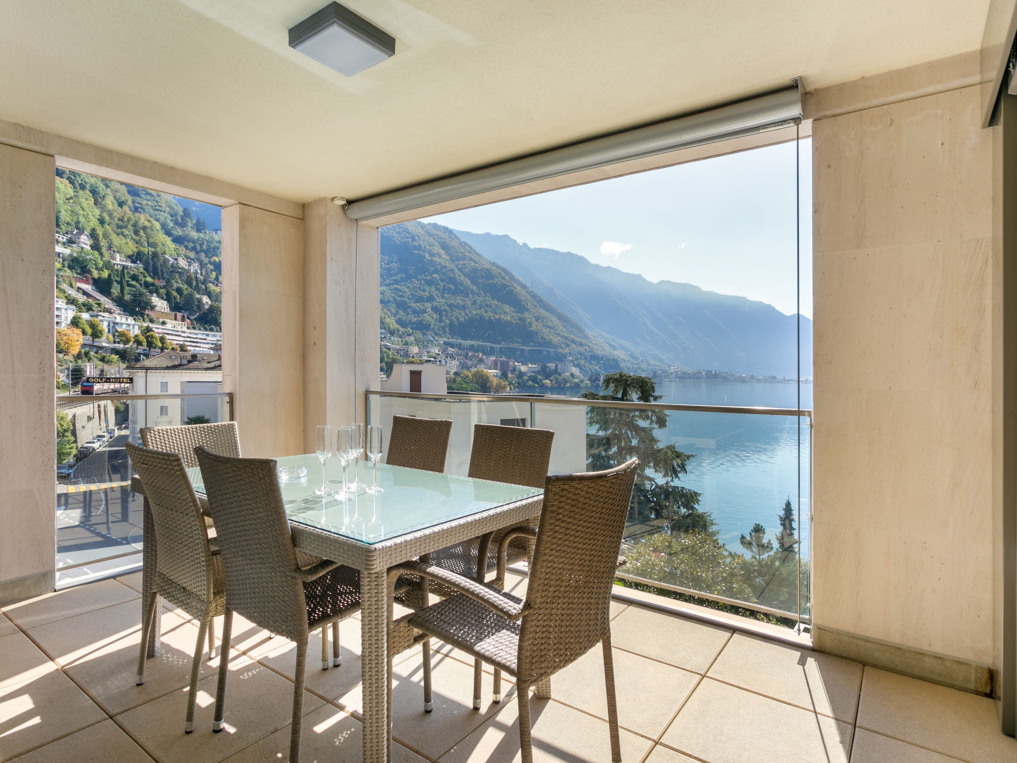 Moderne Residenz "Le National Montreux". Im Ort, im Herzen der Stadt. Zur Mitbenutzung: Schwimmbad beheizt (3 x 10 m, 160 - 160 cm tief, saisonale Verfügbarkeit: 01.Jan. - 31.Dez. Öffnungszeiten Schwimmbad: 07:00-22:00). Dusche/WC im Poolbereich. Im Hause: Sauna, Fitnessraum, Ruheraum Hamam, Fahrstuhl, Zentralheizung. Wäschewechsel 1 mal wöchentlich (zusätzlich extra). Handtuchwechsel 1 mal wöchentlich (zusätzlich extra). Wohnungsreinigung 1 mal wöchentlich möglich (extra). Gemeinschaftsgarage. Maße: Höhe 195 cm. Supermarkt 400 m, Einkaufszentrum 350 m, Restaurant 300 m, Café 350 m, Bushaltestelle "Bon Port" 130 m, Bahnstation "Montreux", Fähre 700 m, Freibad 5 km, See Lac Léman 50 m. Golfplatz (18 Loch) 15 km, Tennis 950 m, Minigolf 1.1 km. Nahe gelegene Sehenswürdigkeiten: Château de Chillon 2.4 km, Montreux Jazz Festival 1.4 km, Musée Olympique Lausanne 27 km, Swissvapeur Parc / Aquaparc Bouveret 16 km, Chaplin's World Vevey 9.3 km. Bekannte Skigebiete sind gut erreichbar: Leysin, Villars, Portes-du-Soleil. Bekannte Seen in der Umgebung sind gut erreichbar: Lac Léman. Wandergebiete: Rochers de Naye. Bitte beachten: Bewachte Residenz. Die Residenz wird durch elektrische Tore geschlossen. Hauptstrasse in der Nähe. Die Nachbarschaft ist sehr lärmempfindlich. Ruhe und gutes Benehmen wird erwartet.