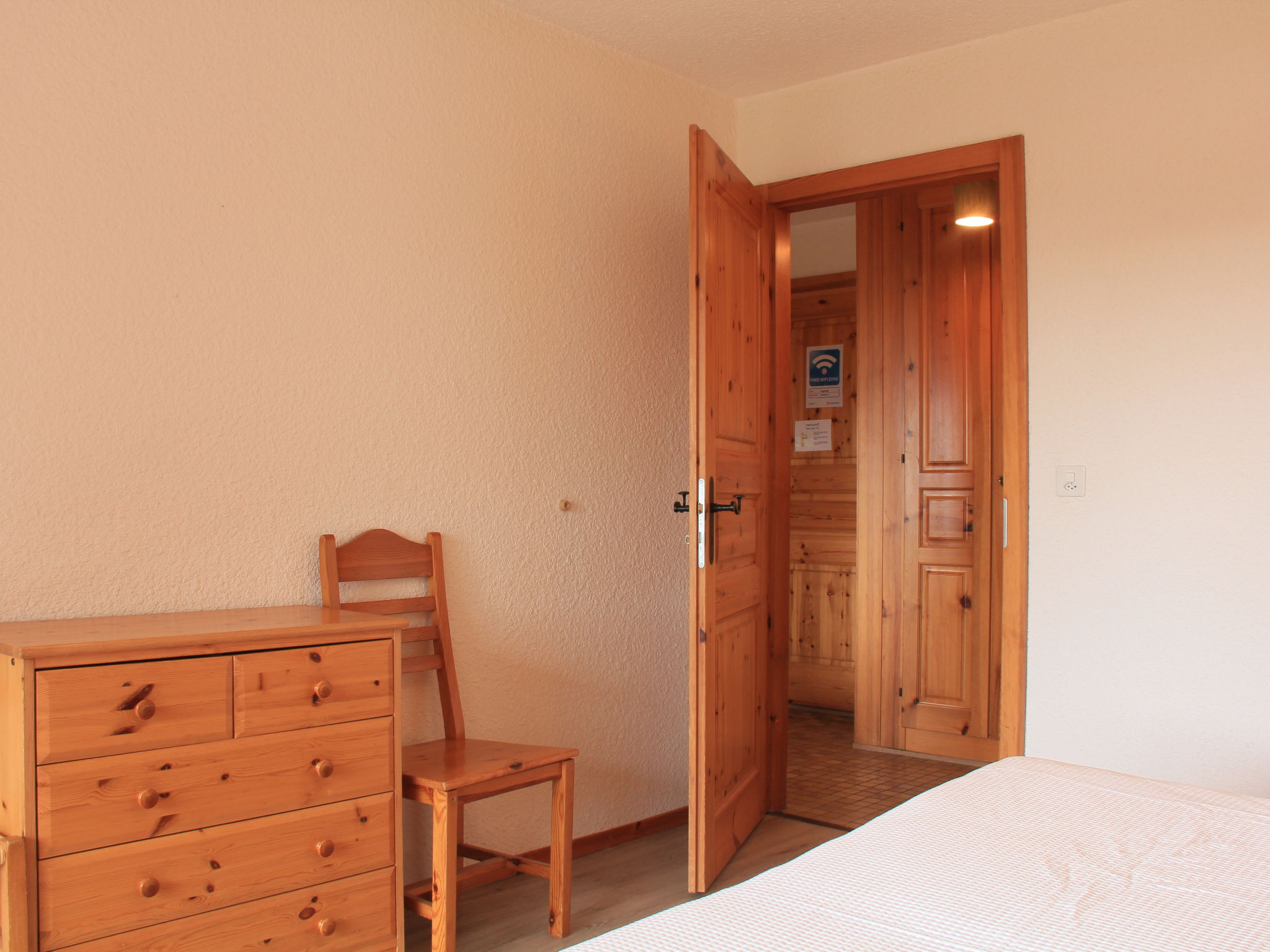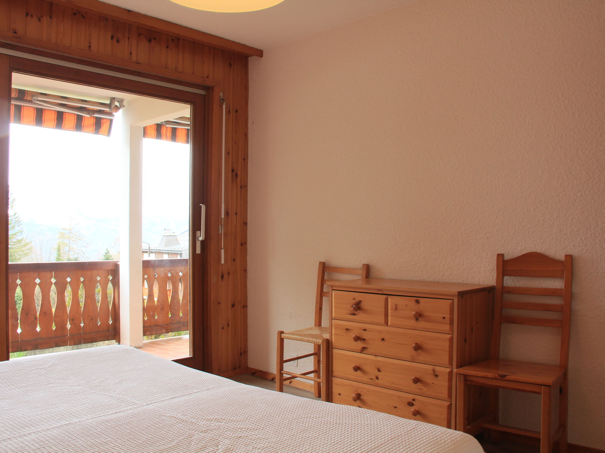 "Topaze 4", 2-Zimmer-Wohnung 40 m2, im Erdgeschoss, Südlage. Komfortabel und schön eingerichtet: Wohn-/Esszimmer mit Essecke und Kabel-TV. Ausgang zum Balkon. 1 Zimmer mit 2 Betten. Ausgang zum Balkon. Kochnische (4 Kochplatten, Backofen, Geschirrspüler, Toaster, Wasserkocher, Mikrowelle, Tiefkühler, elektrische Kaffeemaschine, Racletteofen, Fondue Set (Käse)) mit Durchreiche. Bad/WC. Balkon, Südlage. Terrassenmöbel. Schöne Sicht. Zur Verfügung: Bügeleisen, Haartrockner. Internet (Wireless LAN, gratis). Garage Nr. 11. Bitte beachten: Nichtraucher-Unterkunft. Maximal 1 Haustier/Hund erlaubt.