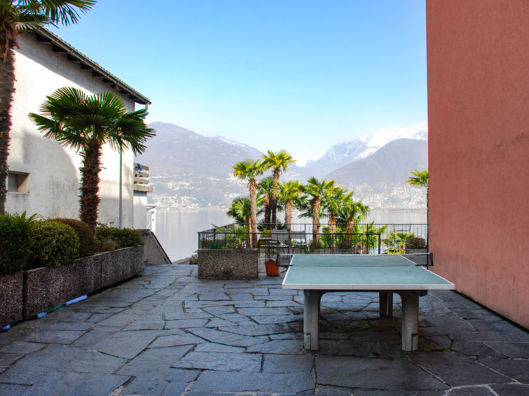 Vira 16 km von Locarno: Grosses, komfortables Appartementhaus "Vira Lago", auf 4 Stockwerken, Baujahr 1960, renoviert im Jahre 1998, umgeben von Bäumen und Wiesen. 38 Wohnungen im Ferienhaus. Im Ort Vira, zentrale, belebte, sonnige Lage, 10 m vom See, direkter Zugang zum Strand, an einer Hauptstrasse. Zur Mitbenutzung: Grundstück, schöner, gepflegter terrassierter Garten, Liegewiese (eingezäunt), Hallenbad eckig (10 x 6 m, 120 - 200 cm tief, saisonale Verfügbarkeit: 15.Apr. - 30.Sep.) mit Innentreppe. Dusche/WC im Poolbereich, Aussendusche, Tischtennis, Sitzplatz, Pergola, Gartenmöbel, Badeplatz. Im Hause: Fitnessraum, Solarium (extra). Zentralheizung, Waschmaschine (extra), Wäschetrockner (zur Mitbenutzung, extra). Zufahrt bis zum Haus. Öffentliche Parkplätze 10 m extra. Restaurant 20 m, Bushaltestelle "Vira paese" 25 m, Bahnstation "Vira" 1 km, Kieselstrand 100 m, See Lago Maggiore (Privatstrand) 70 m. Tennis 50 m, Minigolf 4.1 km, Wanderwege ab Haus 10 m. Nahe gelegene Sehenswürdigkeiten: Monte Verità, Ascona, Madonna del Sasso, Locarno-Orselina, Castelli di Bellinzona, Falconeria Locarno, Ronco sopra Ascona, Isole di Brissago, Mercato Luino (IT). Bekannte Seen in der Umgebung sind gut erreichbar: Lago Maggiore, Lago di Lugano, Lago di Como. Wandergebiete: Alpe di Neggia, Indemini, Monti di Vira und Fosano, Monte Tamaro, Magadinoebene, Naturreservat.