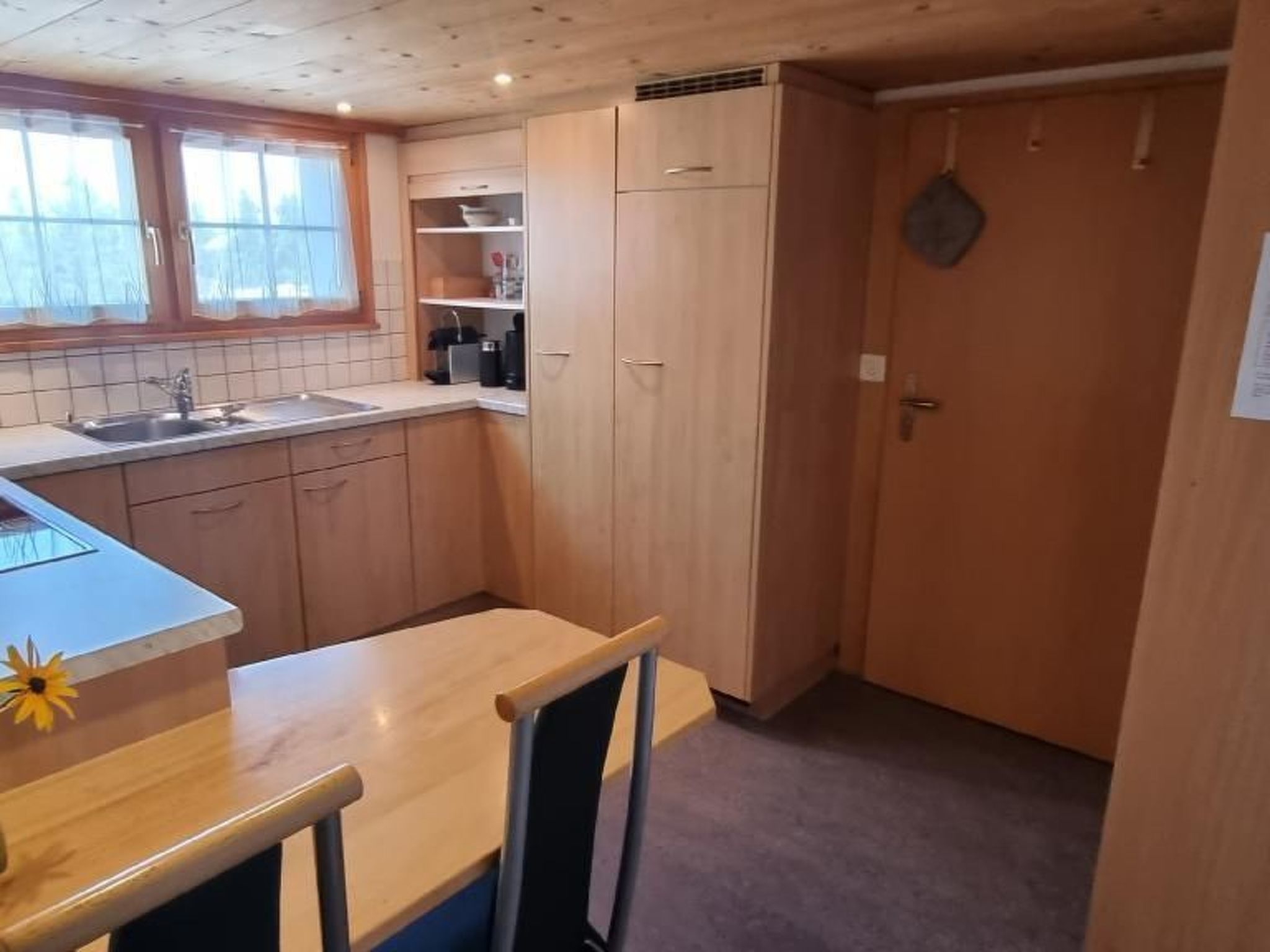 Kücheneinrichtung: Herdplatten , Backofen, Kühlschrank, Gefrierfach, Nespresso Kaffeemaschine, Milchschäumer, div. Pfannen, Kochlöffel, Mixer, Putzschrank, Toaster, Wasserkocher, Feuerlöscher