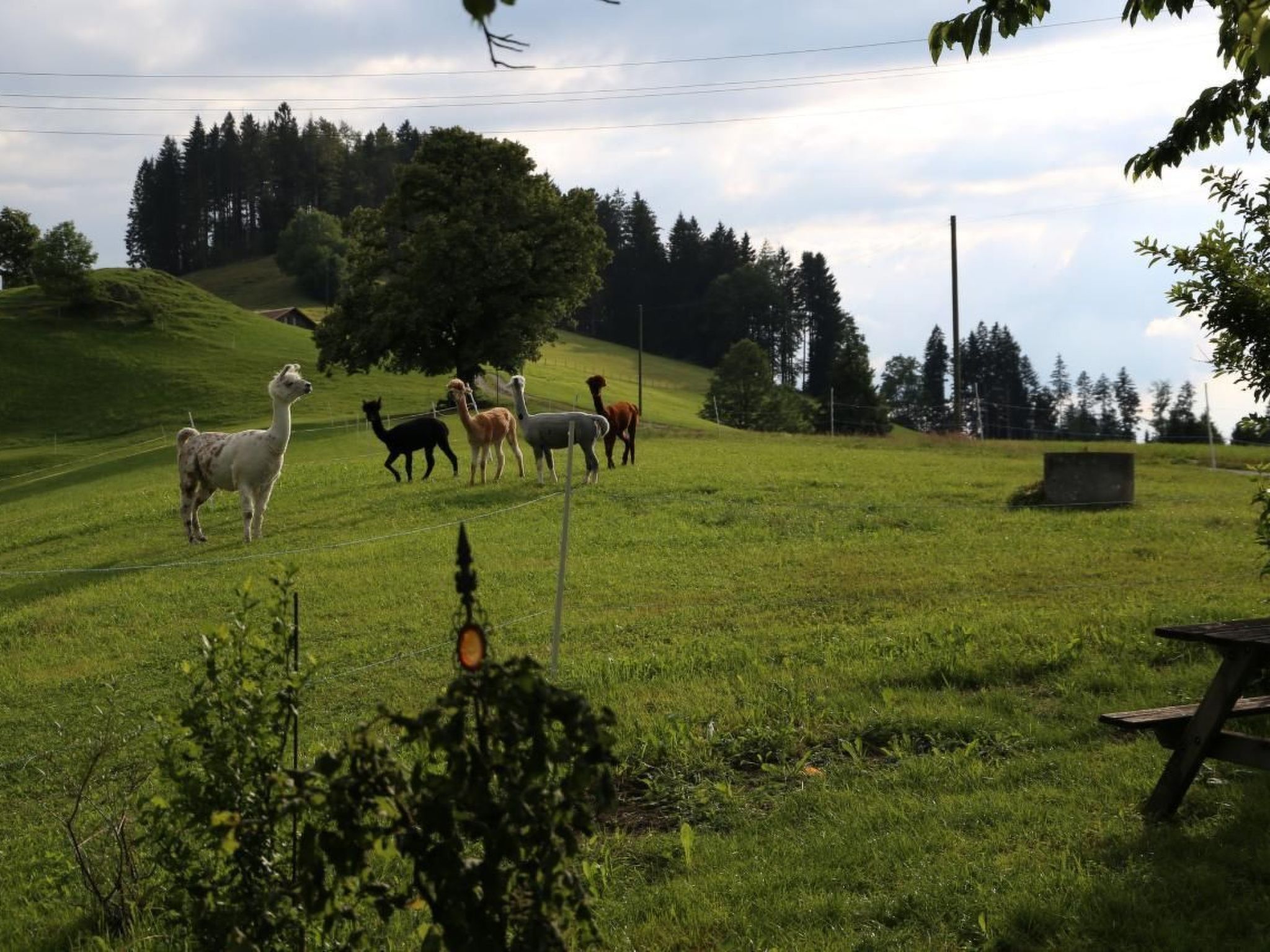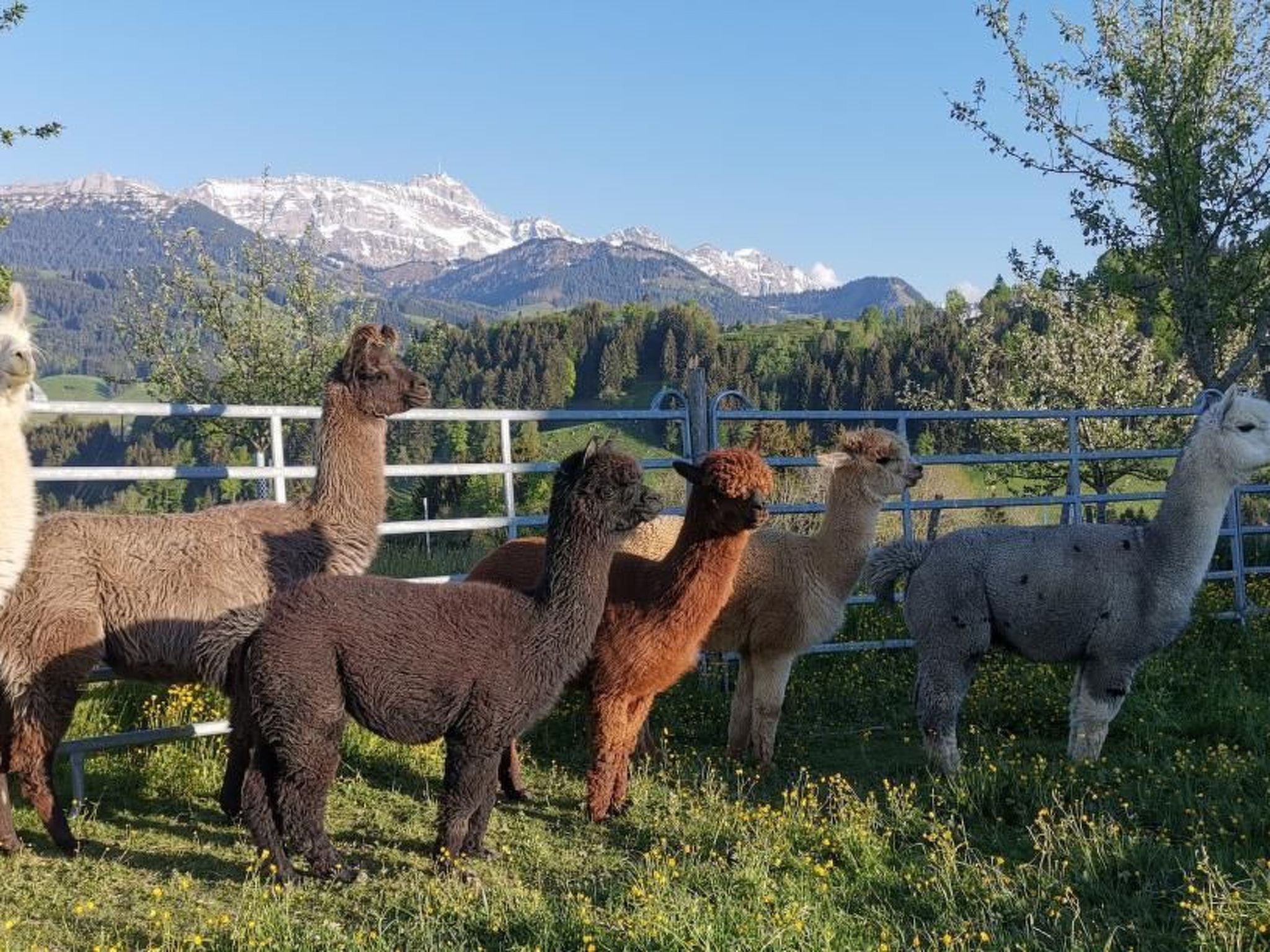 Falls sich jemand von den warmen Augen meiner Alpakas und Lamas berühren lassen möchte, wohnen diese zauberhaften Tiere nur ein paar Schritte von der Ferienwohnungstür entfernt und können jederzeit beim Fressen, Summen und Geniessen beobachtet werden