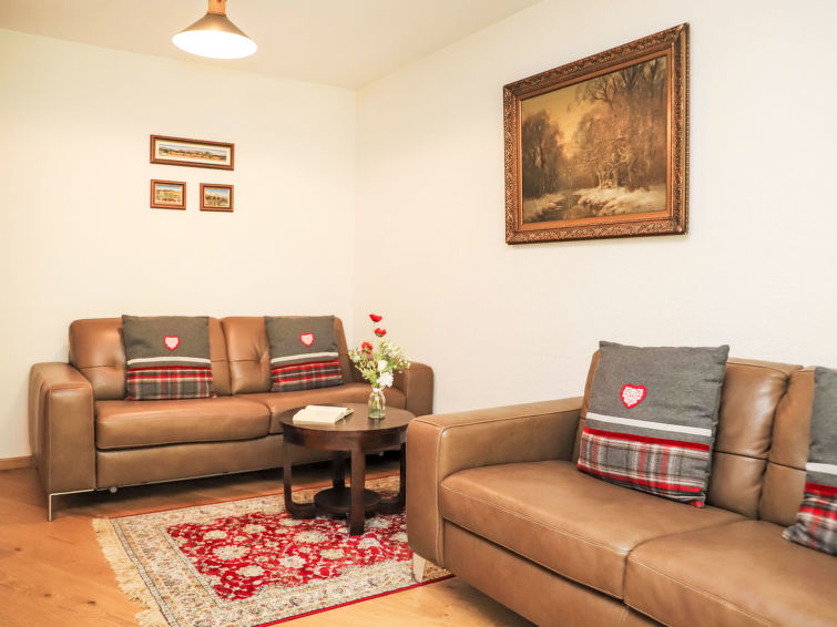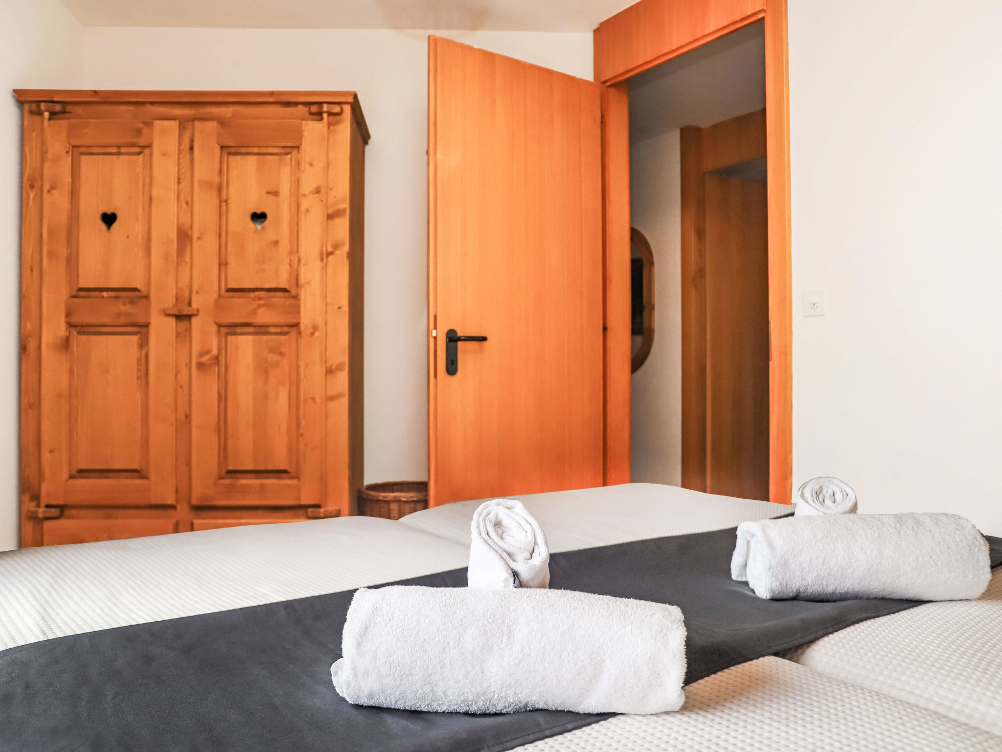 "Mont Fort 16", 2-Zimmer-Wohnung 45 m2 im 1. Stock. Teilweise renoviert im Jahre 2018, komfortabel und schön eingerichtet: Wohn-/Esszimmer mit 1 Doppeldiwanbett (140 cm, Länge 190 cm), Kabel-TV, Radio und CD. 1 Zimmer mit 1 Doppelbett (2 x 90 cm, Länge 200 cm). Ausgang zum Balkon, Richtung Osten. Offene Küche (Geschirrspüler, 4 Glaskeramikplatten, Toaster, Wasserkocher, Mikrowelle, Fondue Set (Käse)). Bad/WC. 2 Balkone, Nordlage und Ostlage. Sicht auf die Berge. Zur Verfügung: Internet (Wireless LAN, gratis). Parkplatz Nr. 9 in 400 m. Bitte beachten: Nichtraucher-Haus.