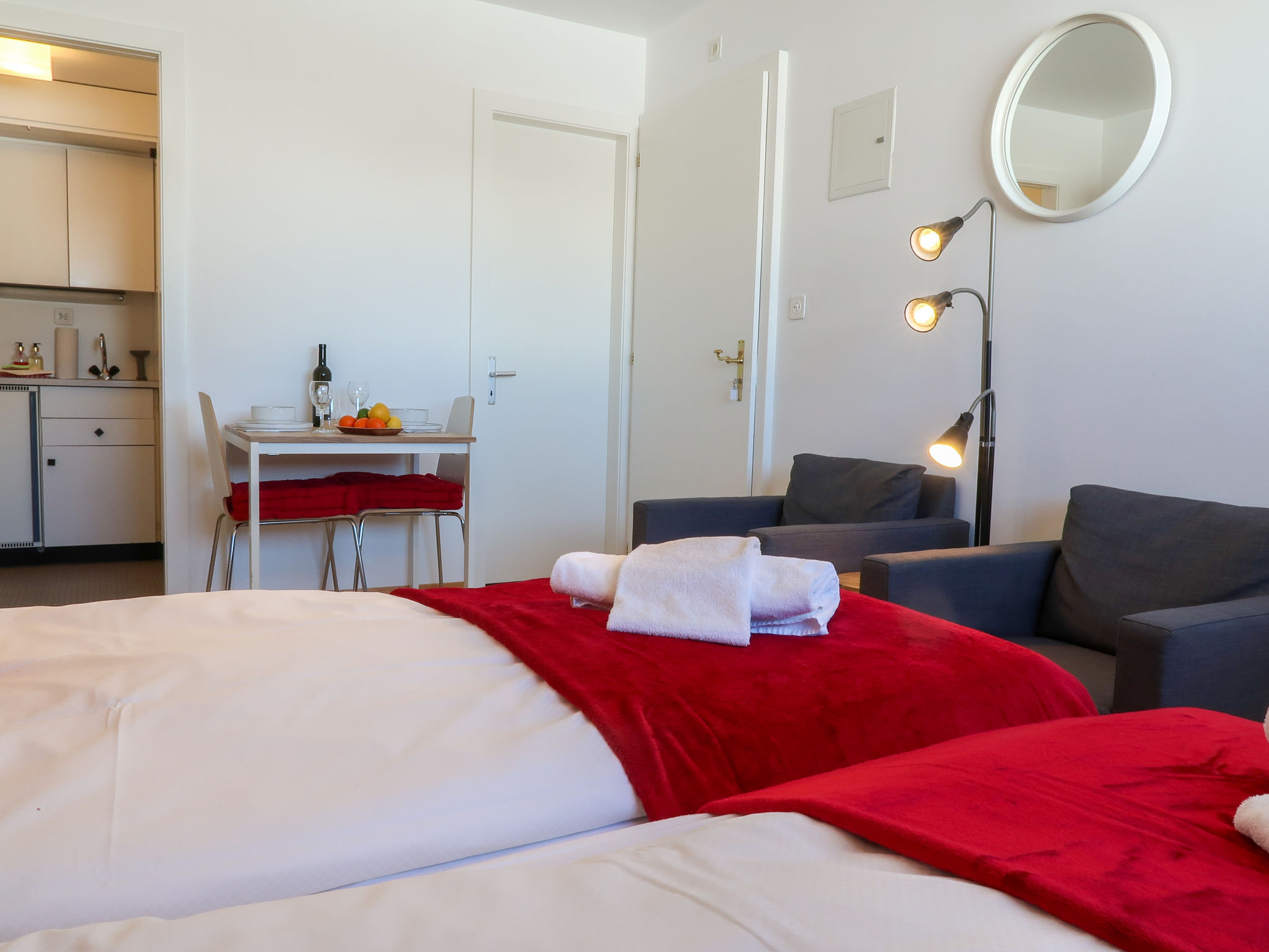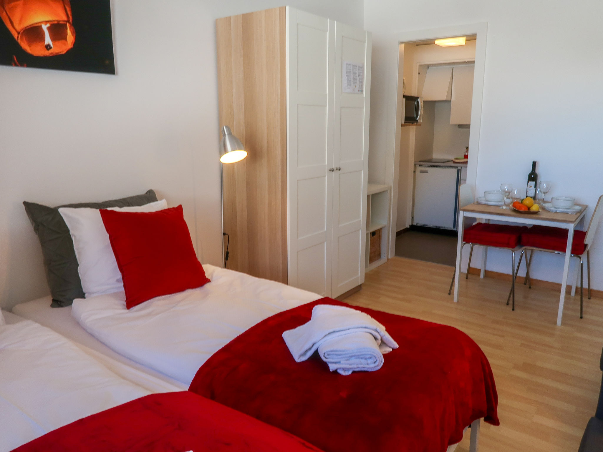 "Rosablanche C65", 1-Zimmer-Wohnung 20 m2 im 6. Stock, Nordlage. Zweckmässig eingerichtet: Wohn-/Esszimmer mit 1 Ausziehbett (2 Pers. 2 x 90 cm, Länge 190 cm), Kabel-TV und DVD. Kochnische (2 Glaskeramikplatten, Wasserkocher, Mikrowelle, elektrische Kaffeemaschine, Fondue Set (Käse)). Dusche/WC. Sicht auf die Berge. Zur Verfügung: Internet (WLAN). Bitte beachten: Nichtraucher-Haus. Aufzug C.