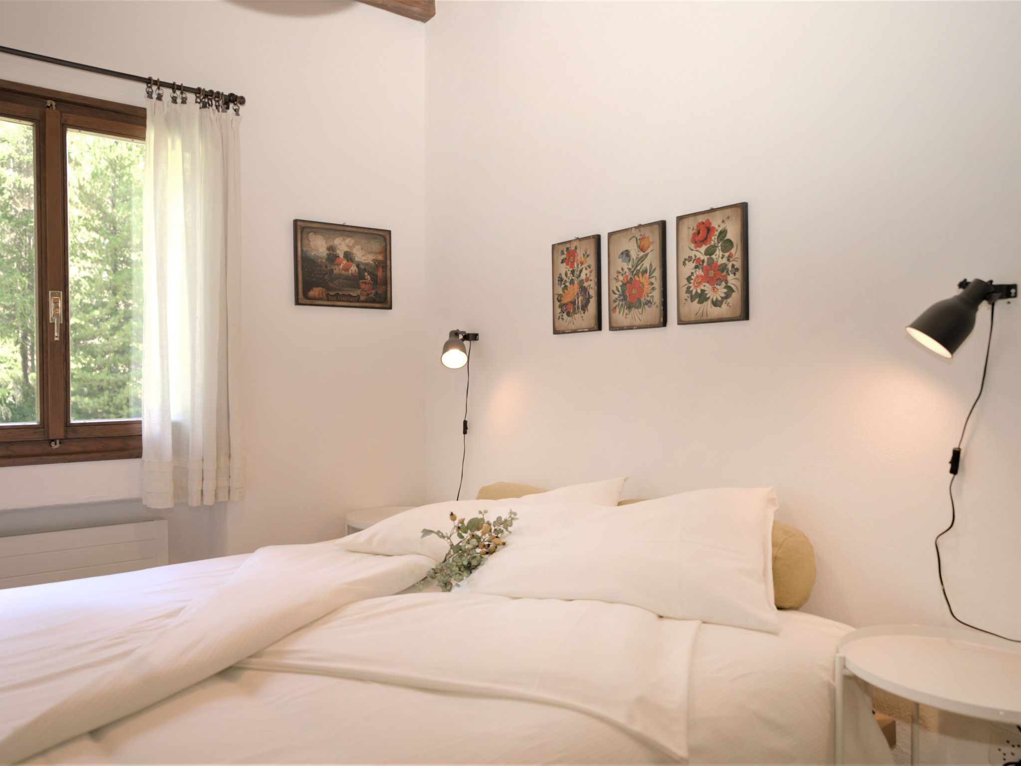 "Chesa Seglias 6", 3-Zimmer-Wohnung 100 m2 im 2. Stock. Teilweise renoviert im Jahre 2013, komfortabel und gemütlich eingerichtet: offenes Wohn-/Esszimmer mit offenem Kamin und TV (Flachbildschirm). Ausgang zum Balkon. 1 Zimmer mit 1 franz. Bett (1 x 155 cm, Länge 185 cm). 1 grosses Doppelzimmer mit 1 Doppelbett (1 x 160 cm, Länge 190 cm). Offene Küche (Backofen, Geschirrspüler, 4 Glaskeramikplatten, Toaster, Wasserkocher, elektrische Kaffeemaschine, Kapseln für die Kaffeemaschine (Nespresso) extra, Fondue Set (Chinoise, Käse)). 2 Duschen/Bidet/WC. Obergeschoss: kleine Galerie. Holzdielenboden. Kleiner Balkon 5 m2. Balkonmöbel. Schöne Sicht auf die Berge und die Landschaft. Zur Verfügung: Bügeleisen, Haartrockner. Internet (Wireless LAN, gratis). Garage Nr. 6 (Sella Seglias), Höhe 205 cm, Breite 240 cm. Bitte beachten: Nichtraucher-Unterkunft, Nichtraucher-Haus, Parkplatz nur für kleine Wagen. Maximal 2 Haustiere/Hunde erlaubt. Kein Fahrstuhl.