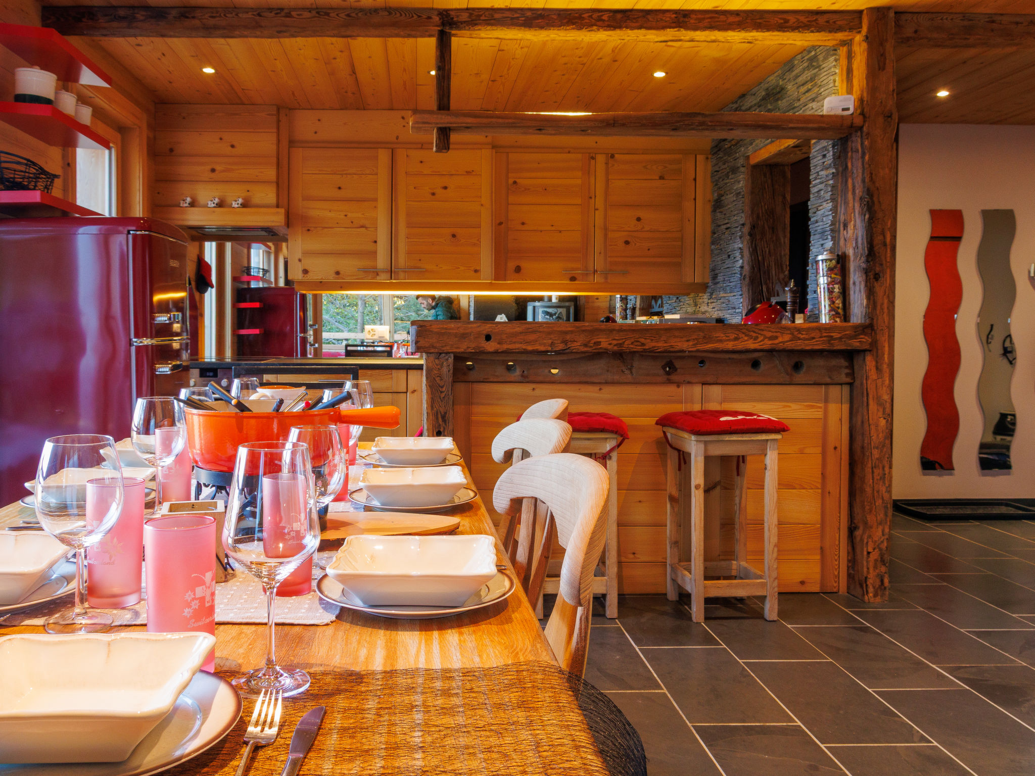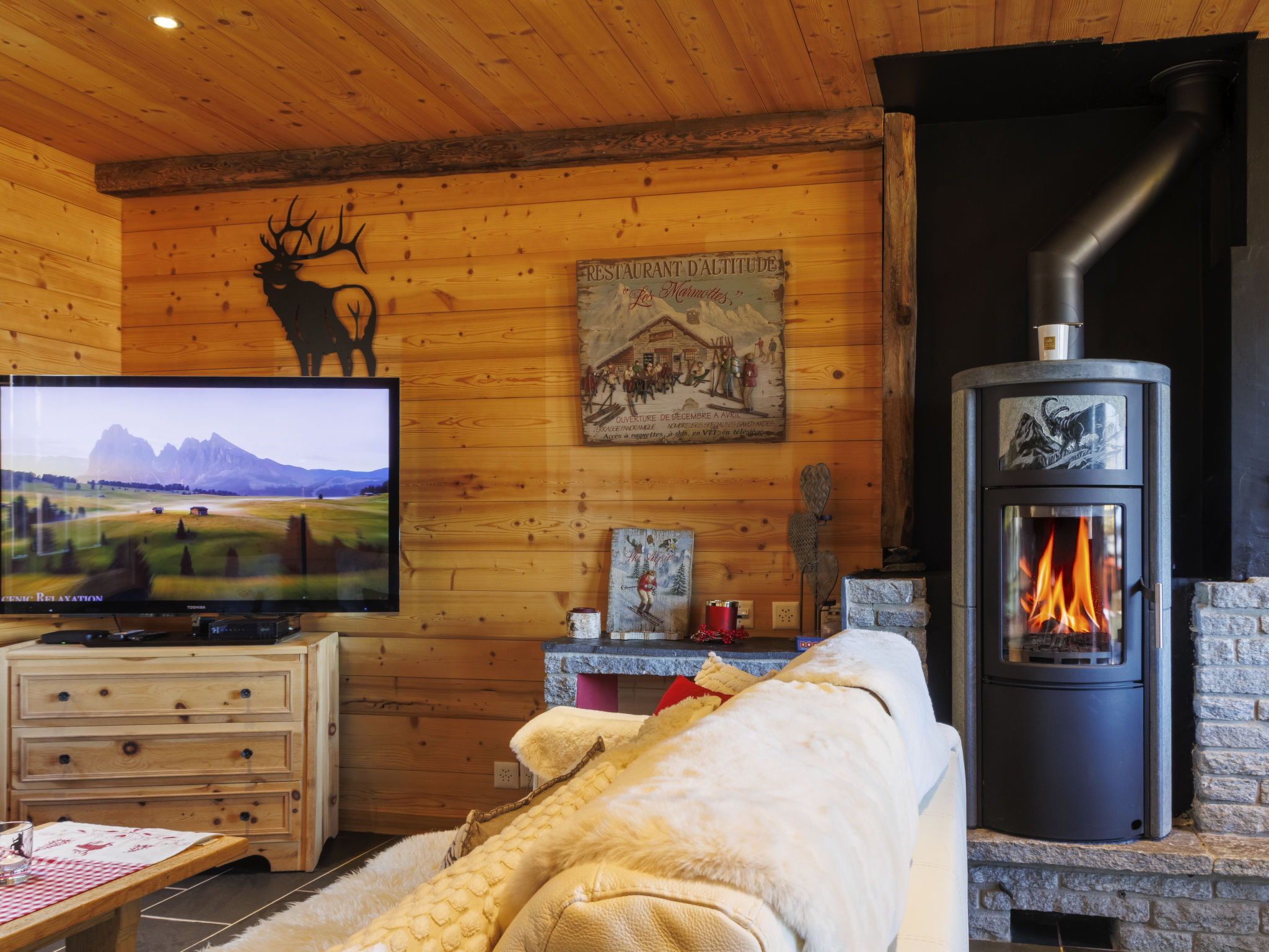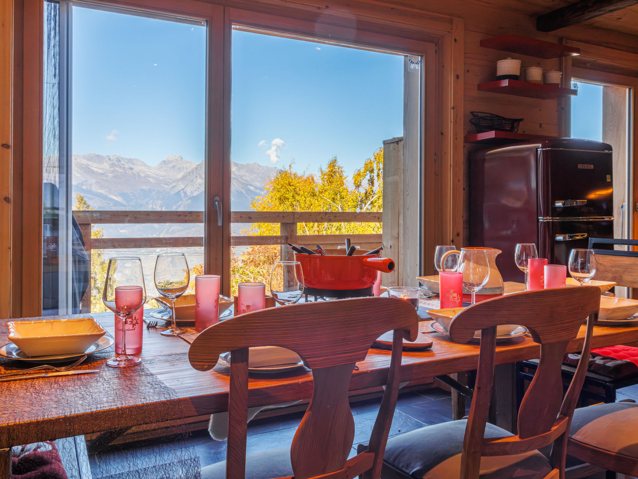"Le Bouquetin", 6-Zimmer-Chalet 195 m2 auf 3 Stockwerken. Teilweise abgeschrägt, geschmackvoll und mit viel Holz eingerichtet: Wohn-/Esszimmer mit Schwedenofen und Kabel-TV. 1 kleines Zimmer mit 1 Bett (120 cm, Länge 190 cm). 1 Zimmer mit 1 franz. Bett (160 cm, Länge 200 cm). (Backofen, Geschirrspüler, 4 Glaskeramikplatten, Toaster, Mikrowelle, elektrische Kaffeemaschine, Kapseln für die Kaffeemaschine (Dolce Gusto), Fondue Set (Käse)). Bad, sep. WC. Unteres Geschoss: 1 Zimmer mit 1 franz. Bett. Ausgang zur Terrasse, Richtung Norden. Dusche/WC. Dachgeschoss: (Leiter) 1 abgeschrägtes, offenes Zimmer, Deckenhöhe 110 - 130 cm mit 2 Betten (90 cm, Länge 190 cm). 1 abgeschrägtes Zimmer, Deckenhöhe 110 - 230 cm mit 1 franz. Bett (140 cm, Länge 190 cm). Terrasse, Nordlage und Westlage. Terrassenmöbel, Gartengrill. Schöne Sicht auf das Tal. Zur Verfügung: Waschmaschine, Wäschetrockner. Internet (WLAN). Parkplatz. Bitte beachten: für Kleinkinder nicht geeignet. Nichtraucher-Unterkunft.