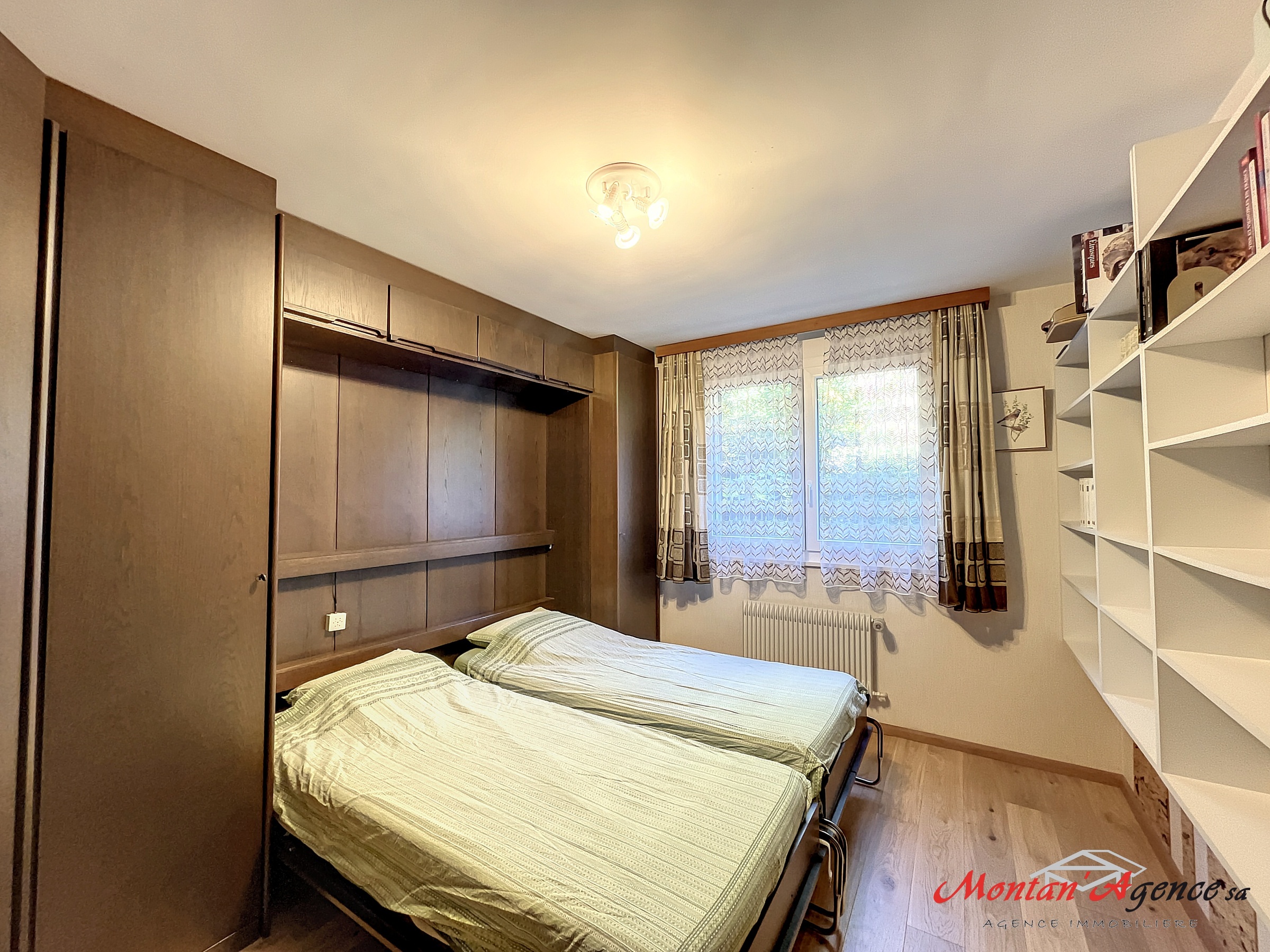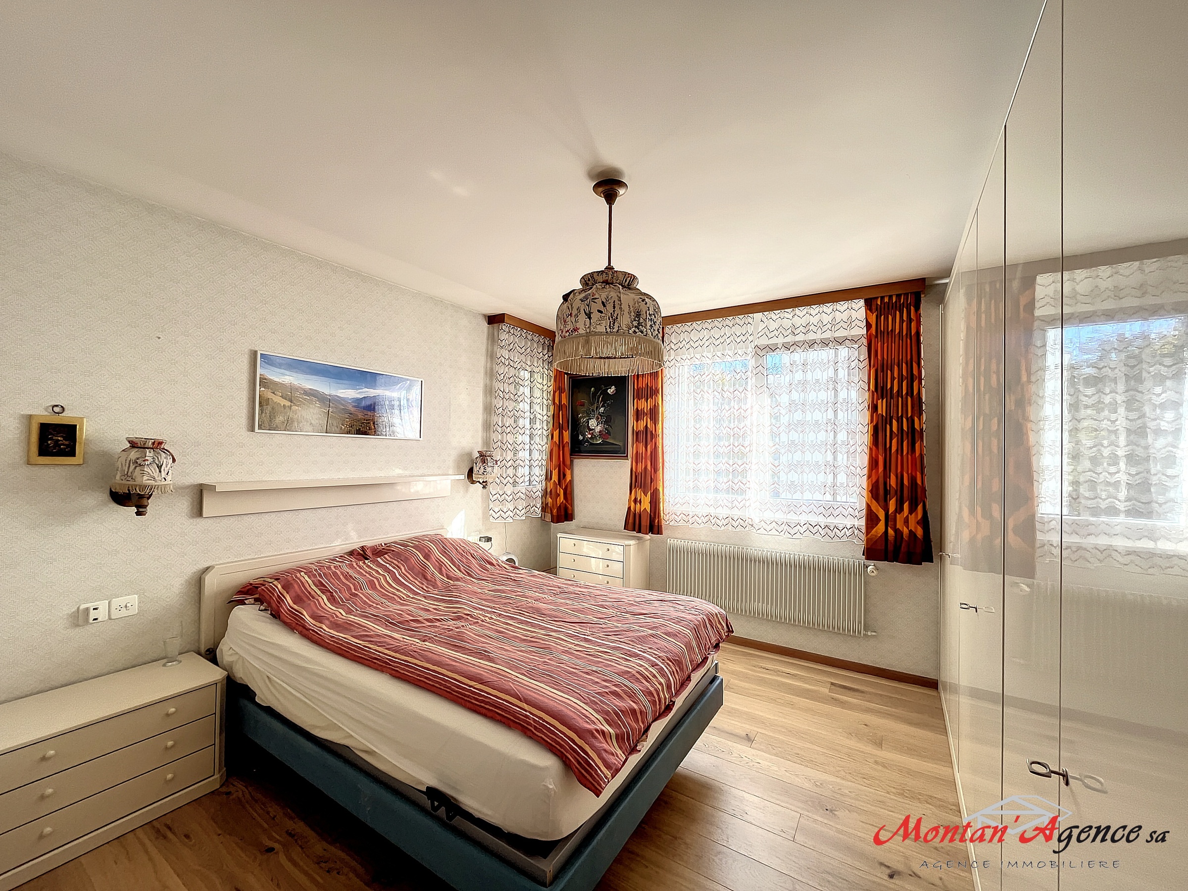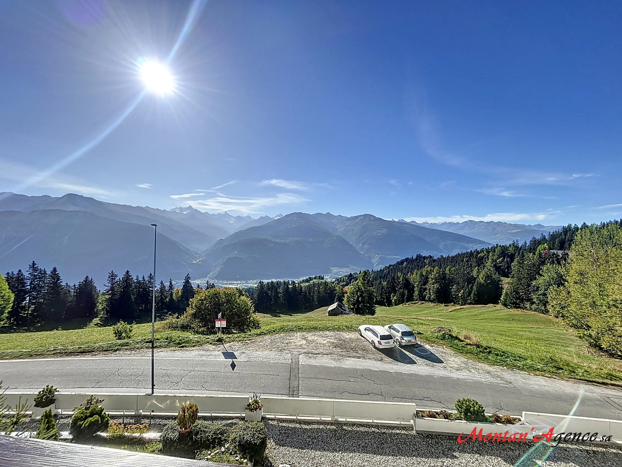 Geräumige 3-Zimmer-Wohnung für 4/6 Personen in einem Gebäude zwischen Les Violettes und Aminona. 2. Stock. Wunderschöner Blick auf die Alpenkette, ruhige und sonnige Lage. Schönes Wohnzimmer mit dekorativem Kamin, Fernseher, Essecke, 1 Dusche /WC/ Waschbecken, 1 Badezimmer/WC/ Waschbecken, 1 Schlafzimmer für 2 Personen, 1 Schlafzimmer mit 2 Schlafschränken, ausgestattete und separate Küche. Balkon nach Süden. Garage box. Haustiere sind nicht erlaubt. WIFI. Nichtraucher-Wohnung.