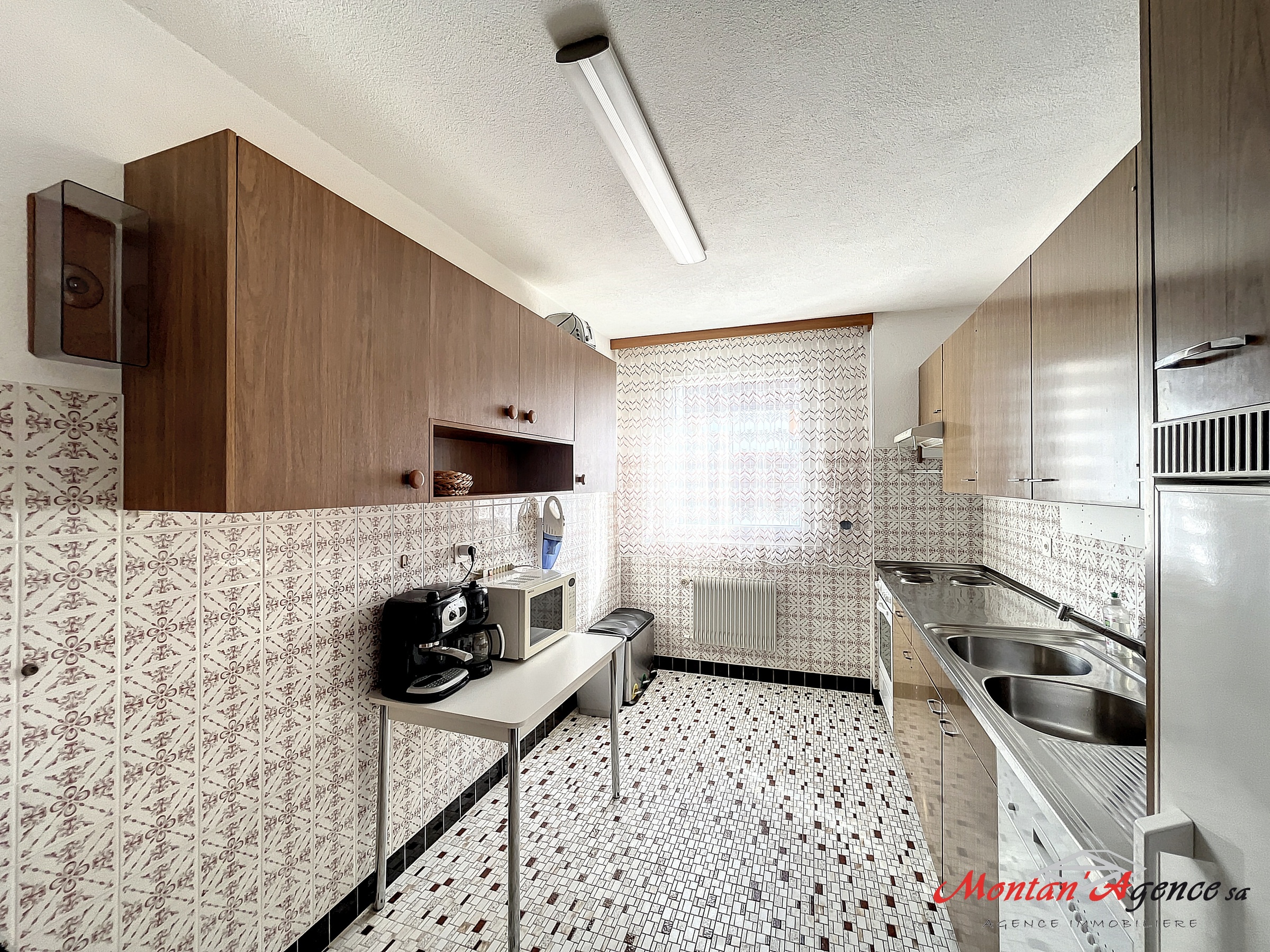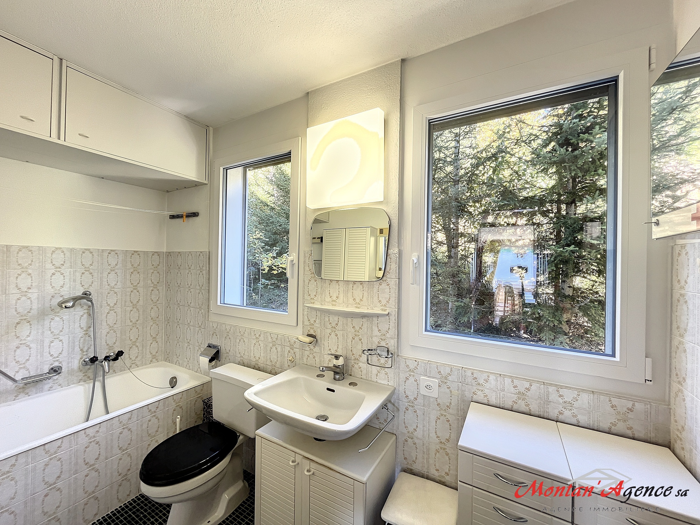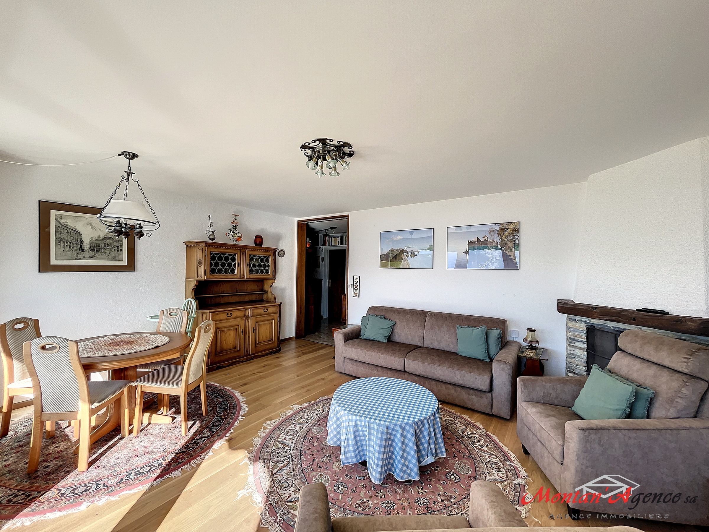 Geräumige 3-Zimmer-Wohnung für 4/6 Personen in einem Gebäude zwischen Les Violettes und Aminona. 2. Stock. Wunderschöner Blick auf die Alpenkette, ruhige und sonnige Lage. Schönes Wohnzimmer mit dekorativem Kamin, Fernseher, Essecke, 1 Dusche /WC/ Waschbecken, 1 Badezimmer/WC/ Waschbecken, 1 Schlafzimmer für 2 Personen, 1 Schlafzimmer mit 2 Schlafschränken, ausgestattete und separate Küche. Balkon nach Süden. Garage box. Haustiere sind nicht erlaubt. WIFI. Nichtraucher-Wohnung.