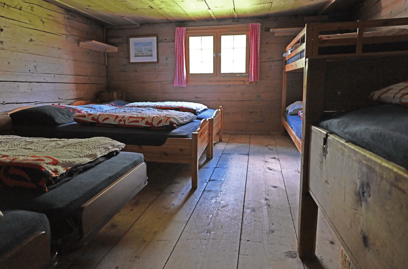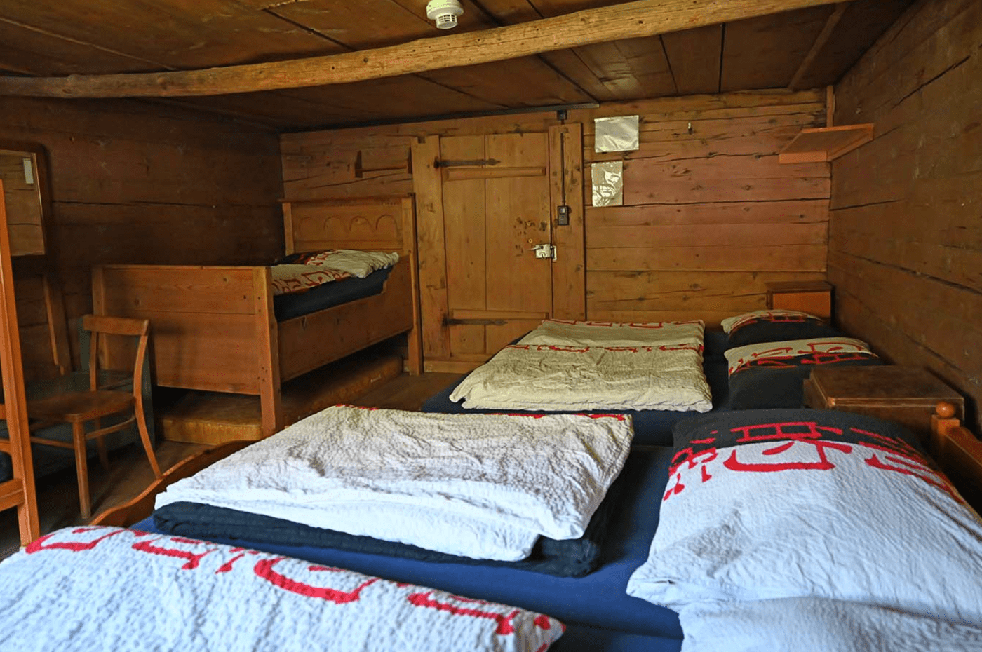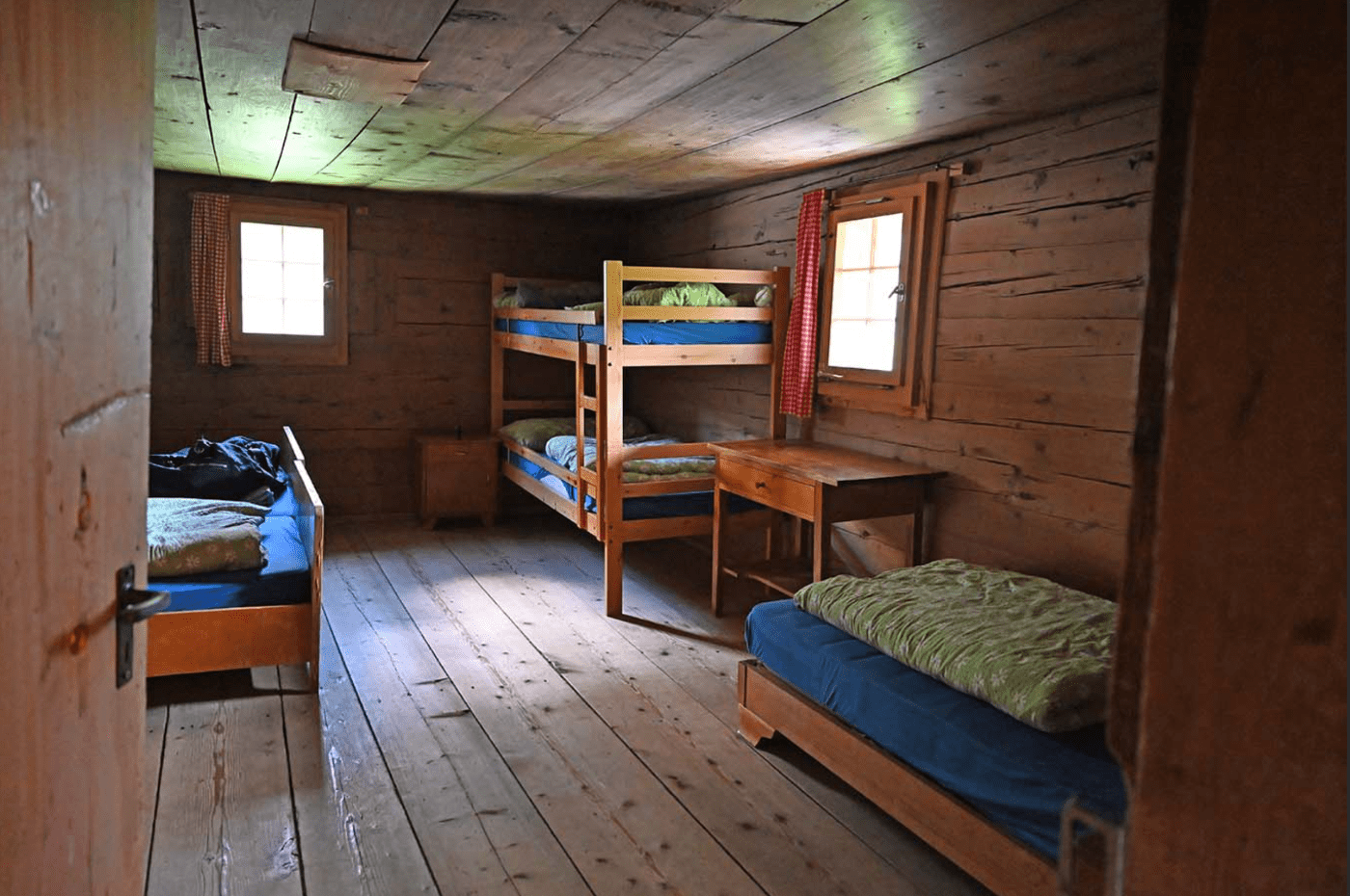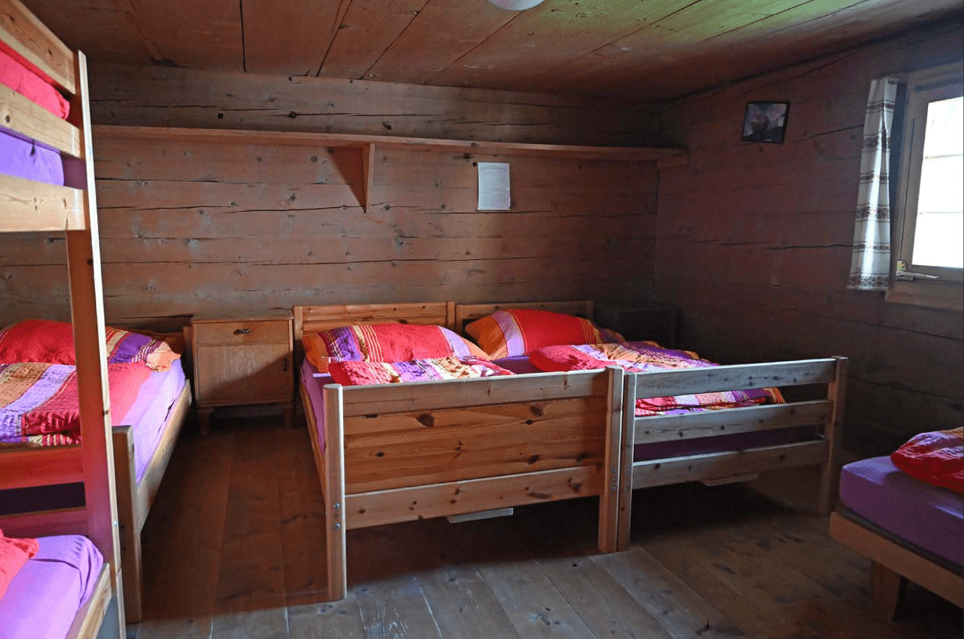 Die Thalerlotsch liegt in Thalkirch auf 1717 m ü. M., nur fünf Gehminuten von der Postauto-Haltestelle „Alte Post“ entfernt. Im Sommer erreichst du das Haus bequem mit dem Auto, im Winter je nach Schneeräumung. Drinnen erwartet dich eine gut eingerichtete Küche zum selber Kochen, zwei heimelige Aufenthaltsräume mit Steinofen sowie Mehrbettzimmer (4er- und 7er-Zimmer) im traditionellen Stil. Luxus gibt es keinen – dafür echte Ursprünglichkeit, viel Holz und eine gemütliche Atmosphäre.