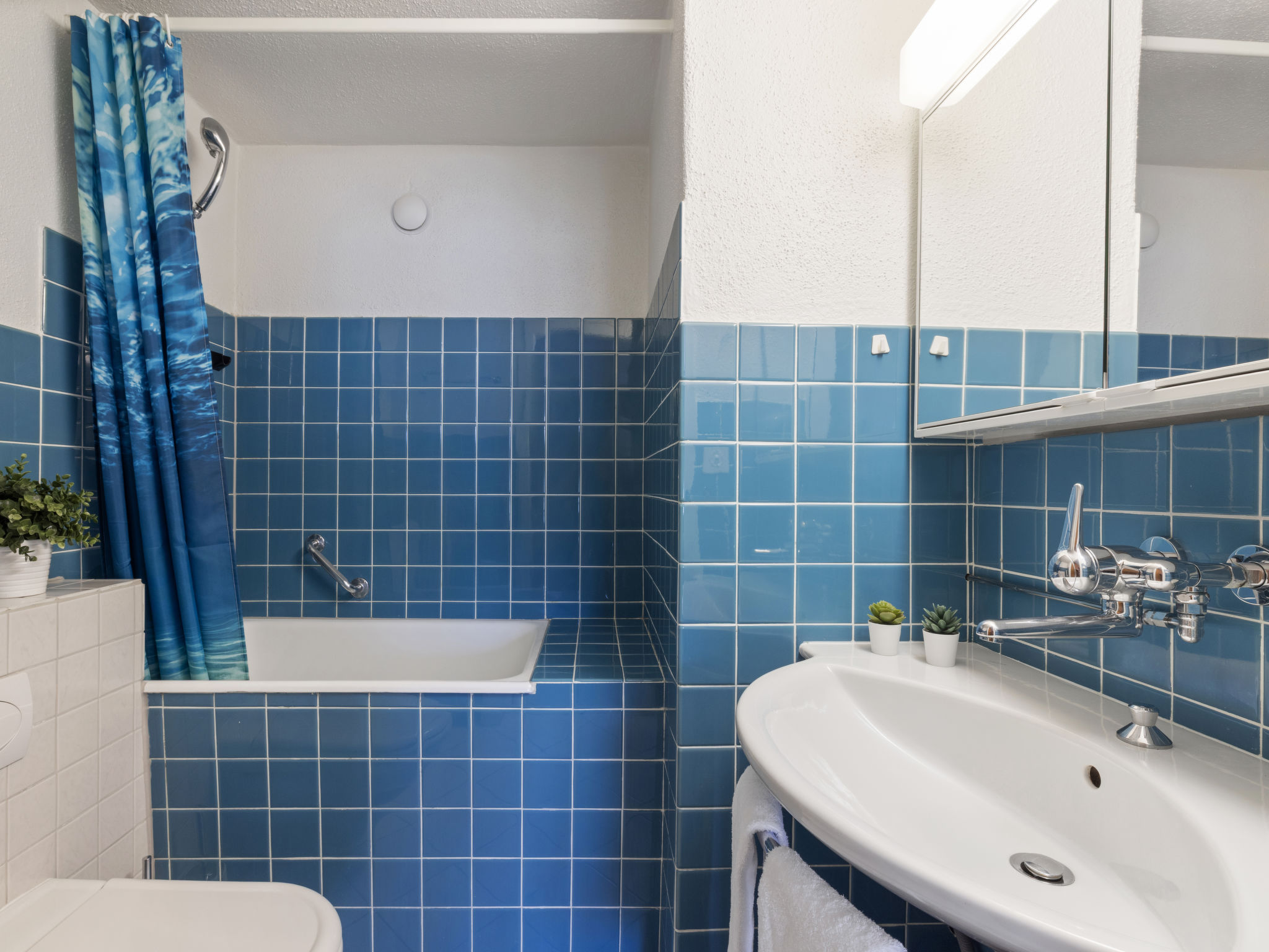 "Promenade Apt 409", 1-Zimmer-Wohnung 28 m2 im 4. Stock. Gemütlich eingerichtet: Wohn-/Esszimmer mit 2 Wandschrankbetten und Sat-TV (Flachbildschirm), Radio. Ausgang zum Balkon. Kochnische (3 Kochplatten, Backofen, Geschirrspüler). Sitzbad/WC. Balkon, Ostlage. Balkonmöbel. Schöne Sicht auf die Berge, die Landschaft und die Ortschaft. Zur Verfügung: Internet (WLAN, gratis). Bitte beachten: Nichtraucher-Unterkunft.