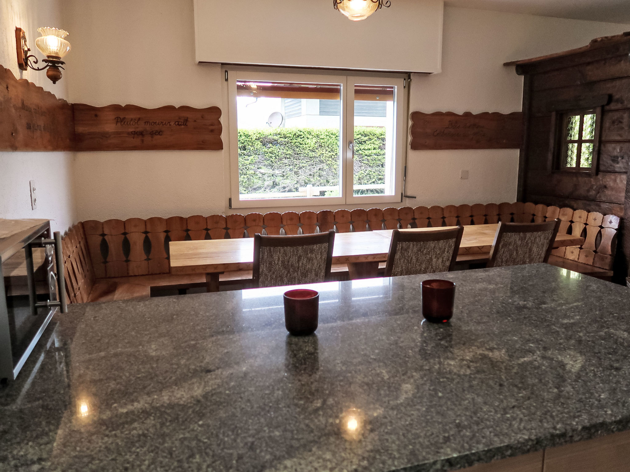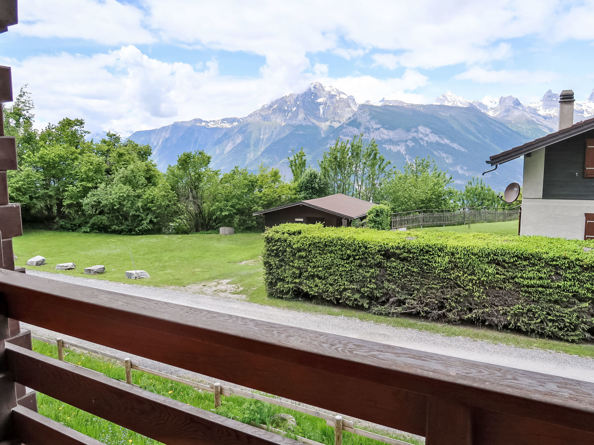 "Chalet L'Etape", 6-Zimmer-Chalet auf 3 Stockwerken. Zweckmässig und komfortabel eingerichtet: Wohn-/Esszimmer mit Kabel-TV. Ausgang zum Garten. Offene Küche (Backofen, Geschirrspüler, 4 Glaskeramikplatten, Toaster, Wasserkocher, Mikrowelle, elektrische Kaffeemaschine, Kapseln für die Kaffeemaschine (Saeco), Racletteofen, Fondue Set (Käse)). 2 Duschen, 2 sep. WC's. Obergeschoss: 1 Zimmer mit 2 Betten (90 cm, Länge 200 cm), Waschbecken. Ausgang zum Balkon. 1 Zimmer mit 2 Betten (90 cm, Länge 200 cm), Waschbecken. 2 Zimmer, jedes Zimmer mit 2 Betten (90 cm, Länge 200 cm), Waschbecken. Bad/WC. Dachgeschoss: 1 abgeschrägtes, offenes Zimmer mit 2 Betten (90 cm, Länge 200 cm). 1 Zimmer mit 9 Betten. Balkon, grosser Garten. Schöne Sicht auf die Berge und die Landschaft. Zur Verfügung: Internet (WLAN, gratis). Parkplatz (6 Autos) beim Haus. Bitte beachten: Nichtraucher-Unterkunft. Maximal 1 Haustier/Hund erlaubt.