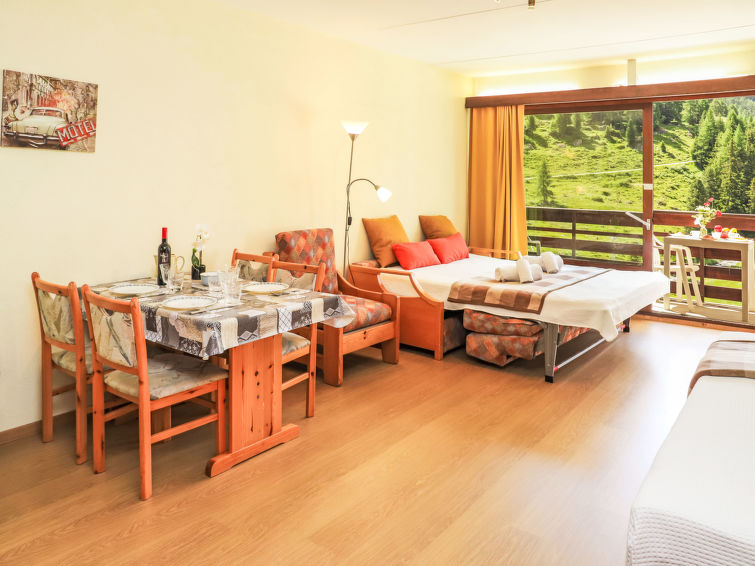 "Rosablanche C53", 1-Zimmer-Wohnung 30 m2 im 5. Stock. Einfach eingerichtet: Wohn-/Esszimmer mit 1 Diwanbett und 1 Ausziehbett (2 Pers.), Kabel-TV. Kochnische (2 Kochplatten, Wasserkocher, Mikrowelle, elektrische Kaffeemaschine). Bad/WC. Balkon, Südlage. Sicht auf die Skipiste. Zur Verfügung: Internet (Wireless LAN, gratis). Bitte beachten: Nichtraucher-Haus. Aufzug C.