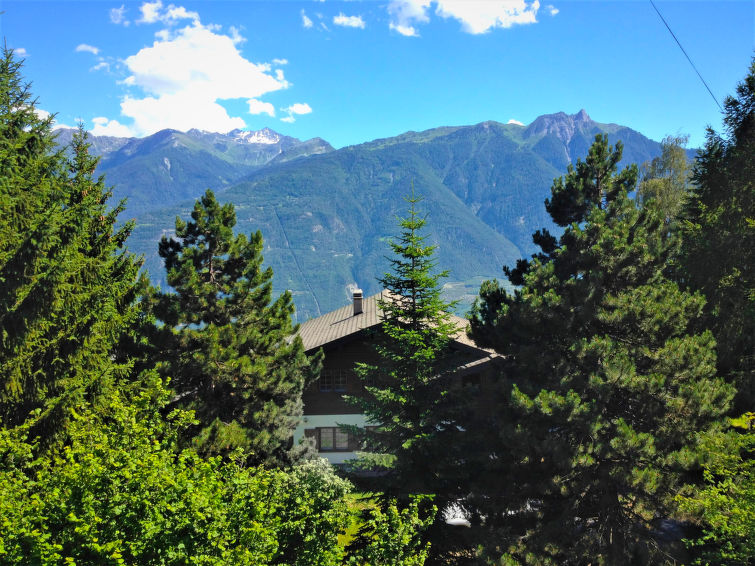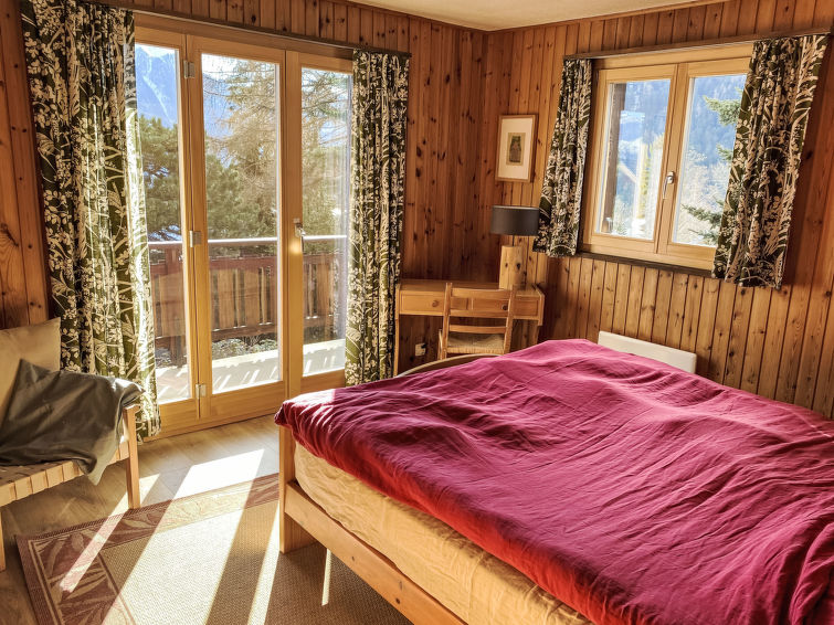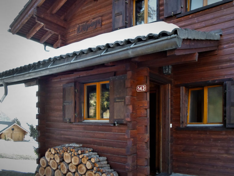 "L'Alpage", 4-Zimmer-Chalet 110 m2 auf 2 Stockwerken, Südlage. Zweckmässig und komfortabel eingerichtet: unteres Geschoss: 1 Zimmer mit 1 Doppelbett (2 x 80 cm). 1 Kinderzimmer mit 1 x 2 Etagenbetten (90 cm). 1 Zimmer mit 2 Betten (90 cm). Bad/WC. Obergeschoss: Wohn-/Esszimmer mit offenem Kamin und Sat-TV (Flachbildschirm), Stereoanlage und DVD. Ausgang zum Balkon. Küche (Backofen, Geschirrspüler, Tiefkühler). Dusche/WC. Balkon. Terrassenmöbel, Gartengrill. Sehr schöne Sicht auf die Berge und das Tal. Zur Verfügung: Waschmaschine, Bügeleisen, Haartrockner. Internet (Wireless LAN, gratis). Garage. Bitte beachten: Nichtraucher-Unterkunft.