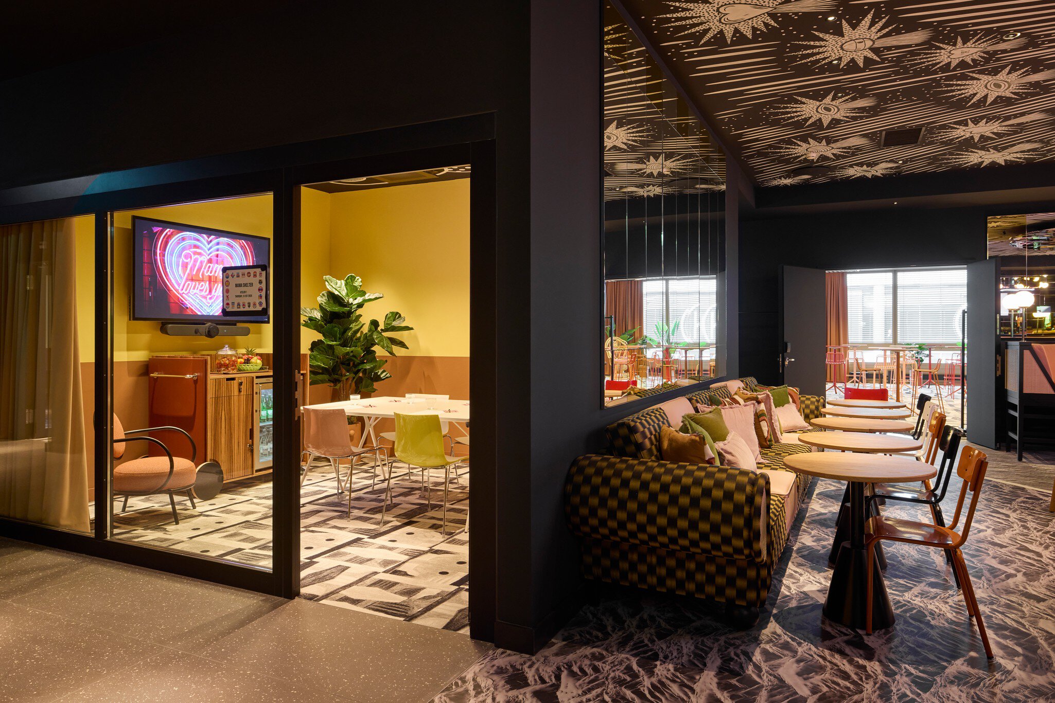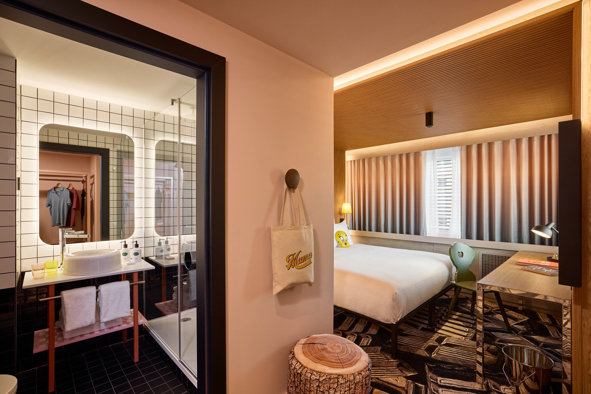 Das Hotel bietet insgesamt 178 individuell gestaltete Zimmer mit hohem Komfort – darunter auch barrierefreie Familienzimmer mit 5-Sterne-Betten, kostenfreiem WLAN, Unterhaltungsangeboten und Bio-Amenities. Mama Shelter Zurich ist das erste Haus der globalen Lifestyle-Marke in der Schweiz – zentral gelegen in Zürich-Oerlikon, nahe Bahnhof und Tramanschluss. Das Design verbindet spielerische Elemente mit Schweizer Inspiration: von alpinen Farbtönen und Uhrenmotiven bis zu kubistischen Fresken. Ein hauseigenes Restaurant mit offener Küche, eine grosse Outdoor-Terrasse im 1. Stock mit Ausblick sowie Meetingräume für Workshops oder Events machen das Haus zum vielseitigen Treffpunkt. Freizeitangebote wie Tischtennis, Flipper oder Boule unterstreichen den verspielten Charakter.