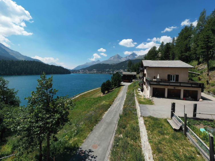 St. Moritz: Altes Mehrfamilienhaus "Chesa Anemona al Lej", auf 3 Stockwerken, Baujahr 1964, renoviert im Jahre 1989. Am Ortsrand, ruhige, sonnige Lage am Hang, 2.5 km vom Skigebiet, in einer Sackgasse. Im Hause: Skiraum, Waschmaschine (extra) (zur Mitbenutzung), Trockenraum. Steile Zufahrt bis zum Haus. Im Winter bitte Schneeketten mitbringen, im Winter 4x4 empfohlen. Steiler Fussweg bis zum Haus. Parkplatz beim Haus. Supermarkt 1.9 km, Restaurant 500 m, Bäckerei 2 km, Bushaltestelle 700 m, Bahnstation, Hallenbad 2 km. Golfplatz (18 Loch) 13 km, Tennis 2.2 km, Reitstall 2 km, Wanderwege ab Haus 200 m, Bergeisenbahn 3.3 km, Langlaufloipe 2.5 km, Eisfeld 2.2 km, Kinderspielplatz 3 km. Bekannte Skigebiete sind gut erreichbar: Corviglia St. Moritz 2.1 km, Corvatsch Surlej 8.5 km. Bekannte Seen in der Umgebung sind gut erreichbar: St. Moritz See 1.5 km, Silvaplanasee 8 km, Stazer See 1.9 km. Bitte beachten: Fahrzeug empfohlen, kein Fahrstuhl vorhanden. Die Schlüsselübergabe findet bei der Agentur Interhome in St. Moritz statt.