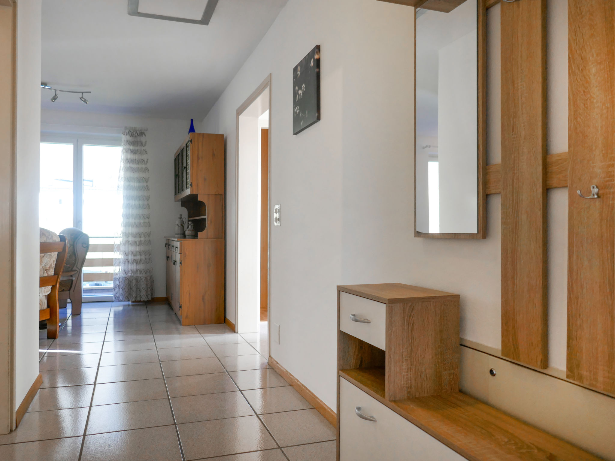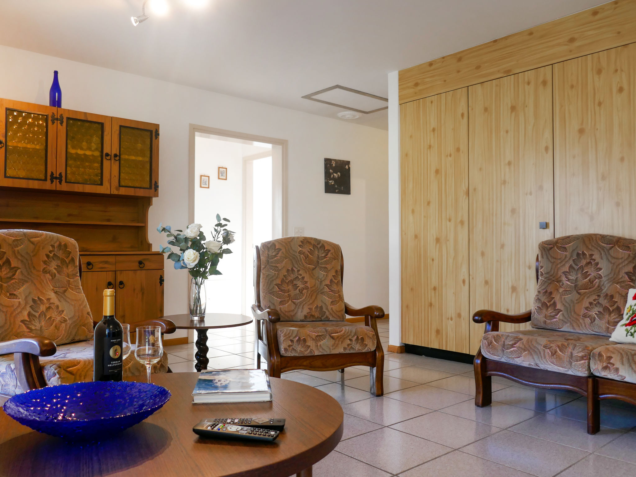"Terry", 4-Zimmer-Wohnung 90 m2 im 1. Stock. Geräumig und hell, zweckmässig und komfortabel eingerichtet: offenes Wohnzimmer mit Sat-TV. Ausgang zum Balkon. 1 Doppelzimmer mit 1 Doppelbett (1 x 160 cm, Länge 200 cm), Dusche/WC. 1 Zimmer mit 2 Betten (90 cm, Länge 200 cm). 1 Zimmer mit 1 Bett (90 cm, Länge 200 cm). Küche (4 Glaskeramikplatten, Toaster, Wasserkocher, Tiefkühler, elektrische Kaffeemaschine, Kapseln für die Kaffeemaschine (Nespresso) extra, Racletteofen). Ausgang zur Terrasse. Bad/WC. E-Heizung. Terrasse. Terrassenmöbel, Gartengrill (mobil), Liegestühle (2). Schöne Sicht auf die Berge und die Landschaft. Zur Verfügung: Kinderhochstuhl, Babybett bis 2 Jahre (extra), Haartrockner. Internet (Wireless LAN, gratis). Bitte beachten: Nichtraucher-Unterkunft. Maximal 1 Haustier/Hund erlaubt. NL-00006981